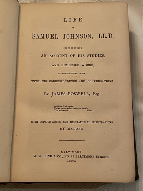 Life of Samuel Johnson by James Boswell (1856 ~ J.W. Bond & Co)