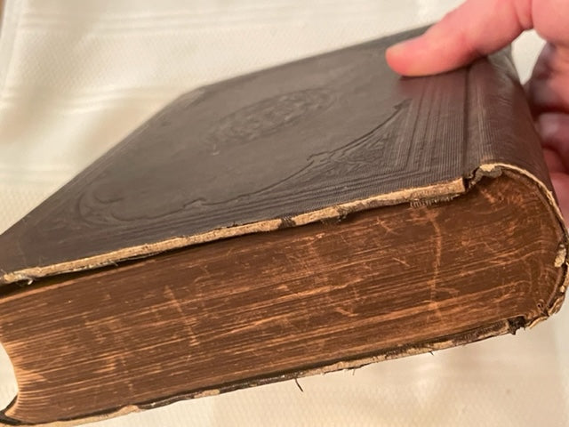 Antique hardcover in Good (G) condition. Embossed cover, with some light spots, and significant bumping on corners and edges wit fraying. Gilt title on spine. Darkening on outside edge of pages. Endpapers intact. Pages clean and straight. Binding wobbly. See pictures for more details.