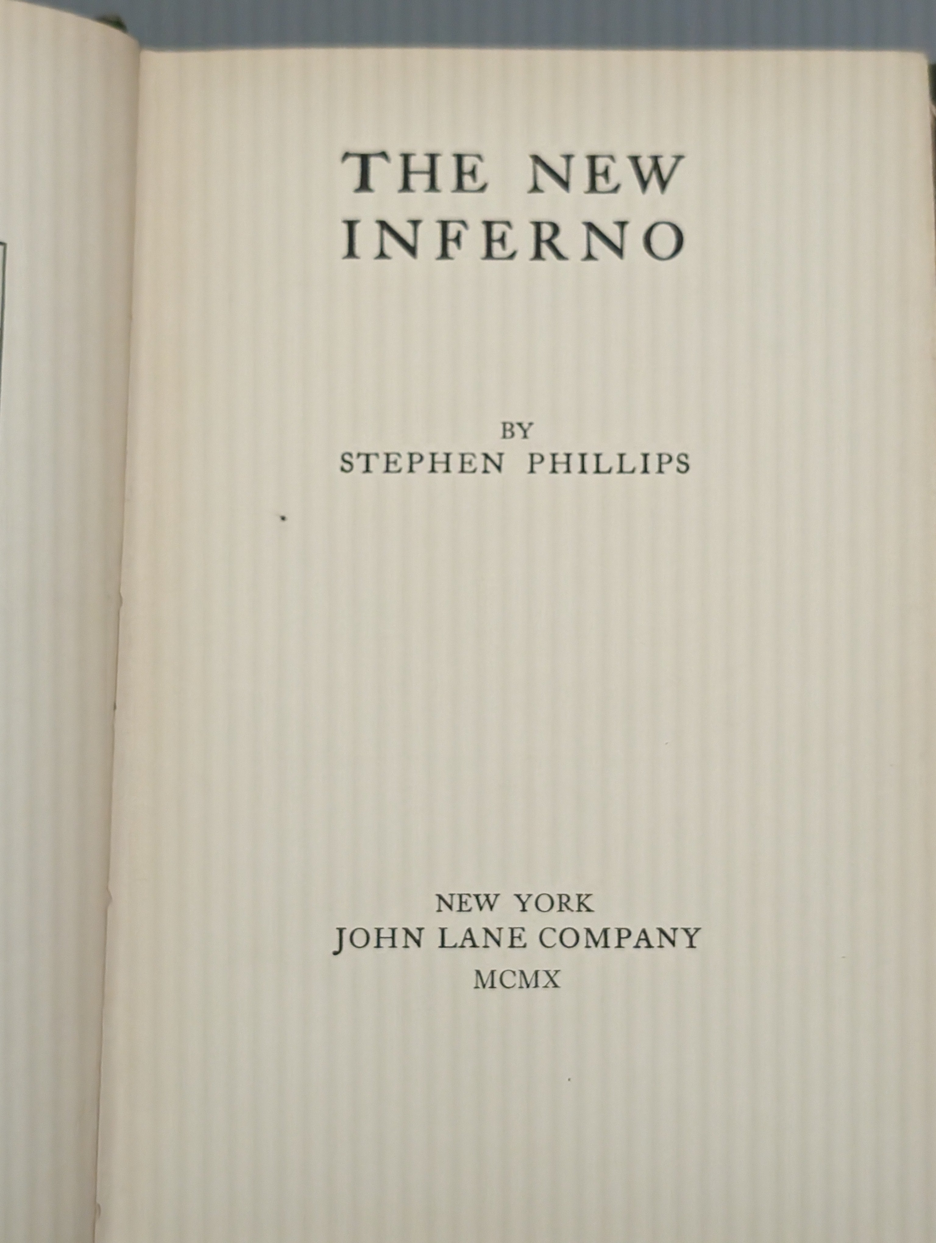 THE NEW INFERNO by Stephen Phillips (1910) First Edition SEE PICS is backordered and will ship as soon as it is back in stock.