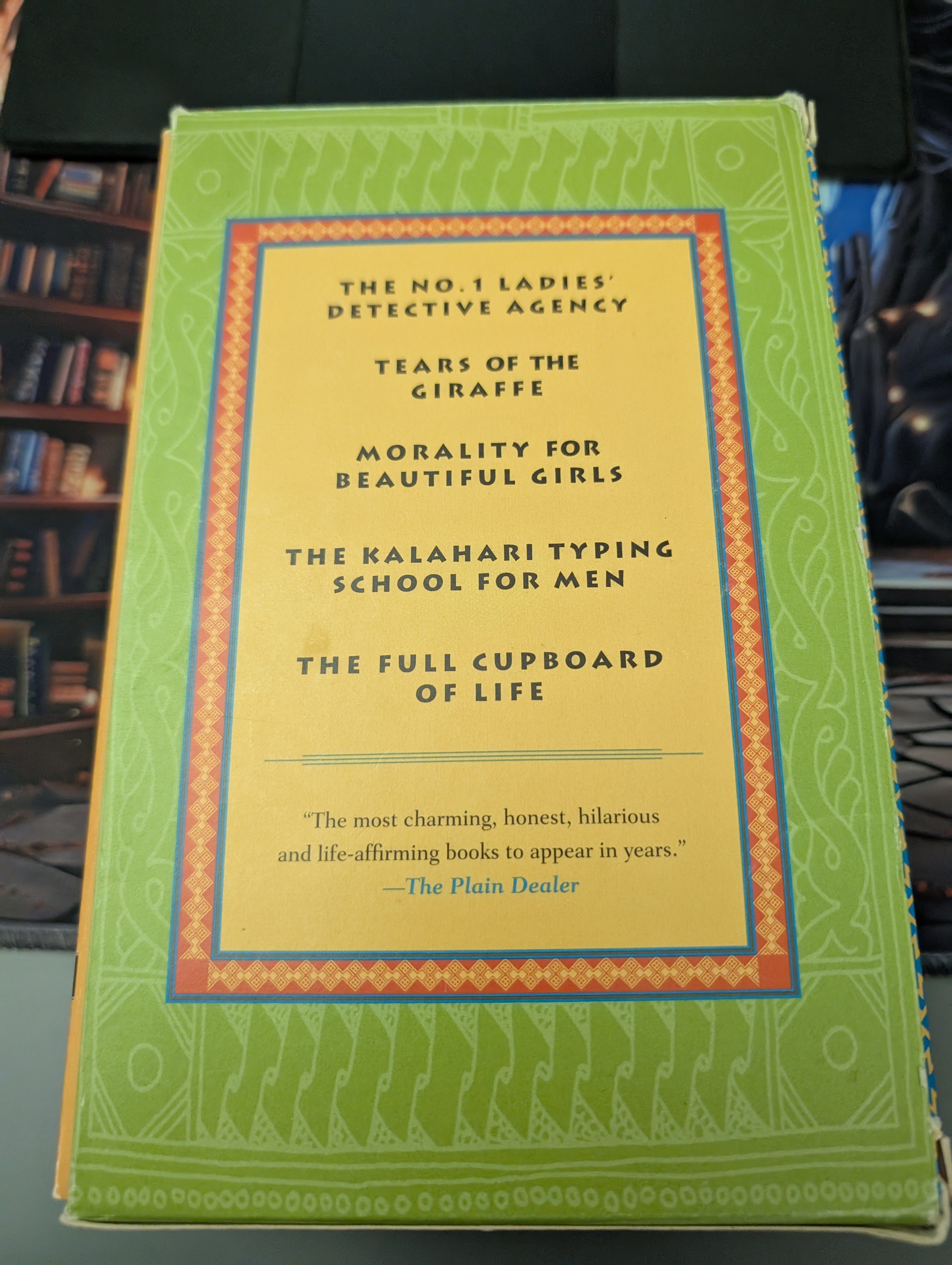 Boxed set of first five. Botswana Mma Precious Ramotwse solves mysteries, caring for reputations of all involved.