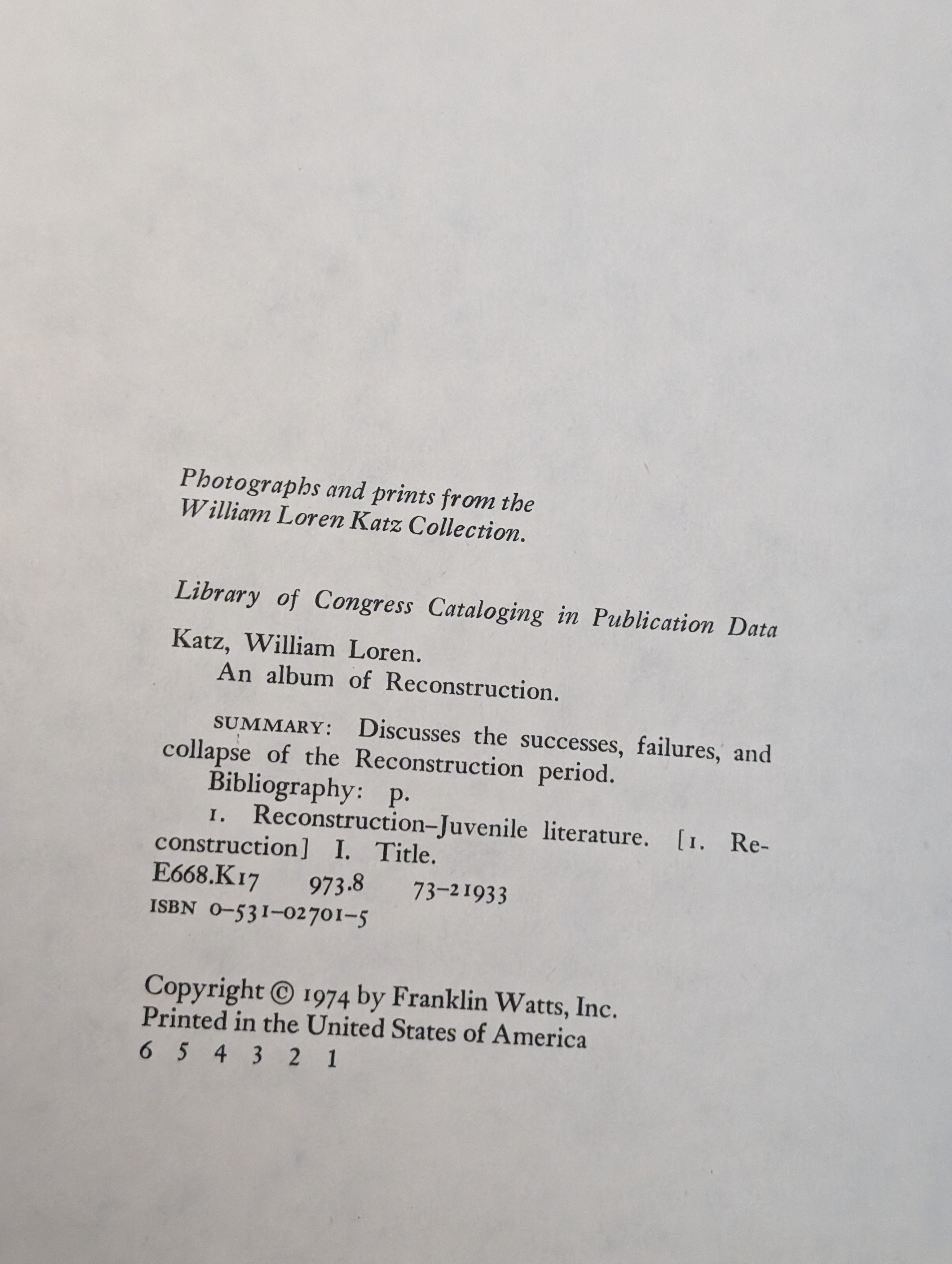 An Album of Reconstruction by Katz, William Loren (1974) SEE PICS is backordered and will ship as soon as it is back in stock.