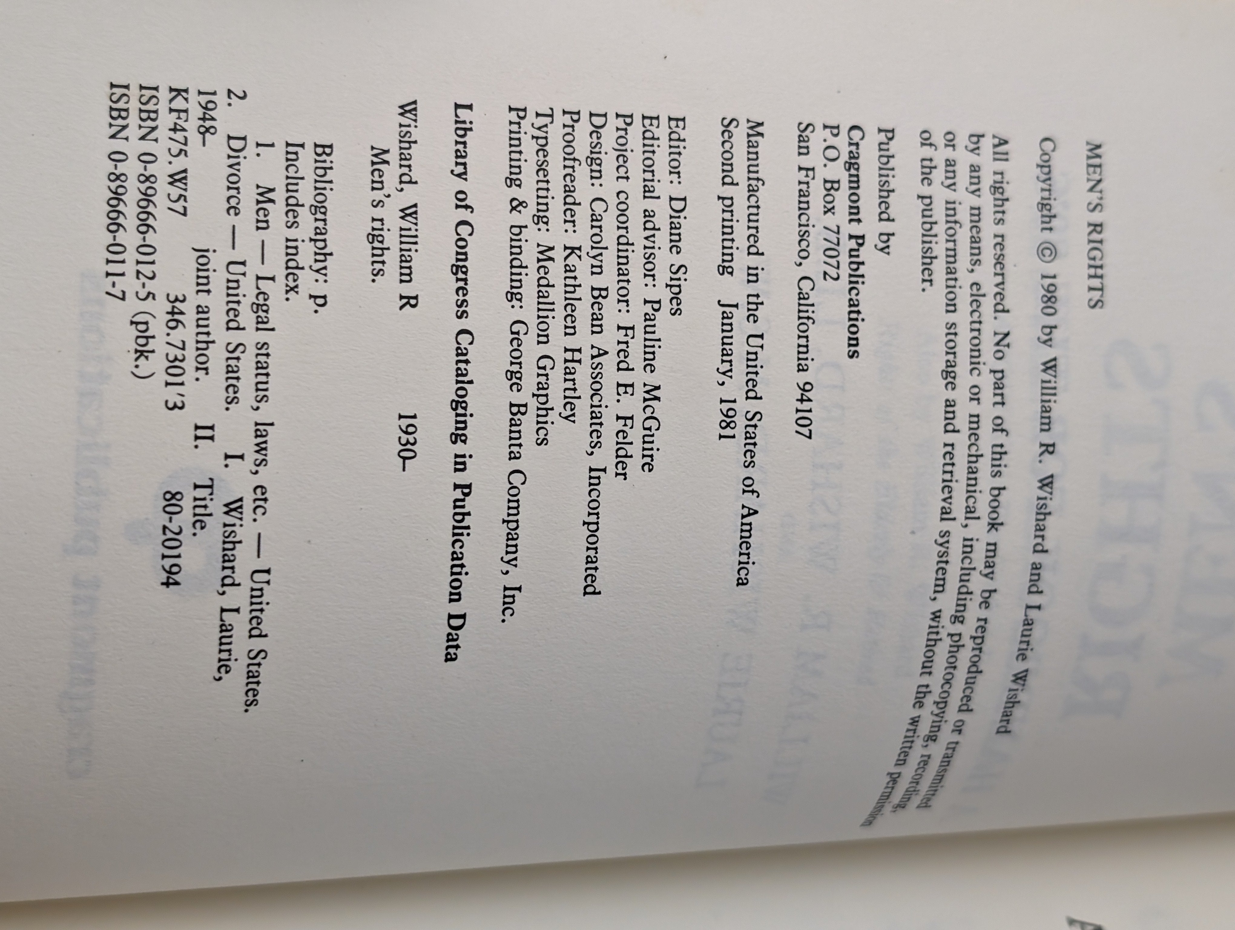 Men's Rights: A Handbook for the Eighties by Wishard, William 1980 PAPERBACK SEE PICS is backordered and will ship as soon as it is back in stock.