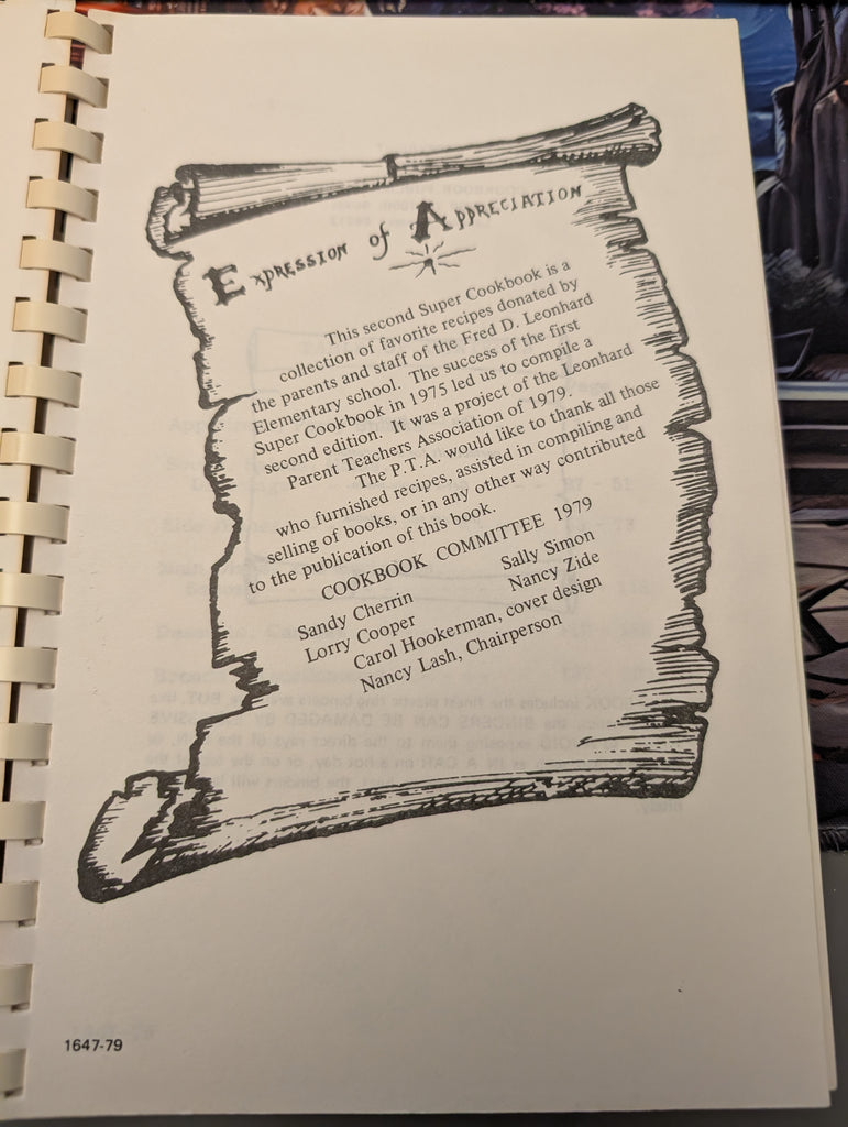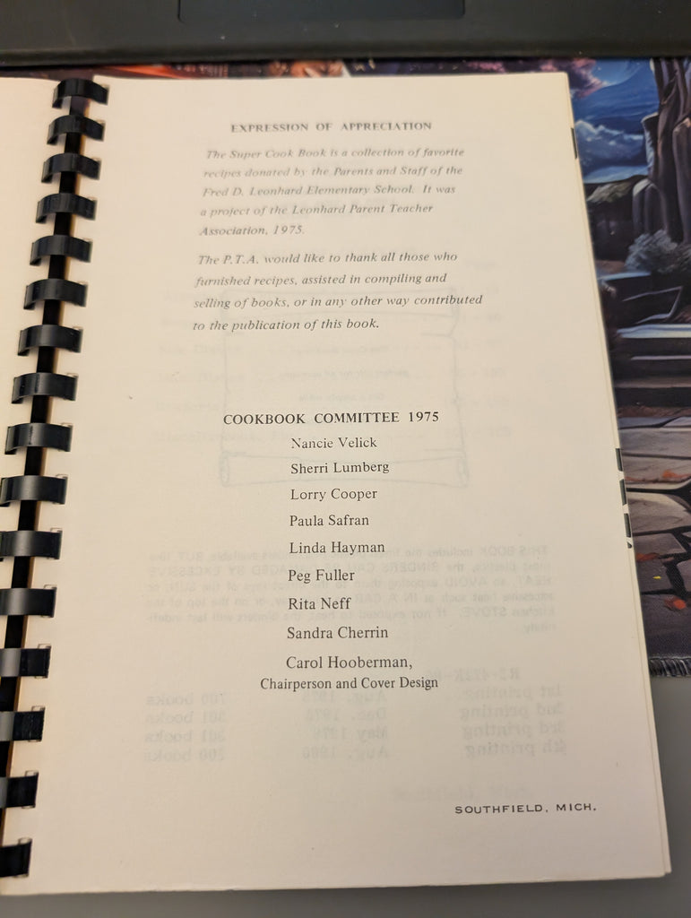 Leonhard P.T.A. PTA Second Super Cookbook, Southfield, Michigan (1979) VERY GOOD