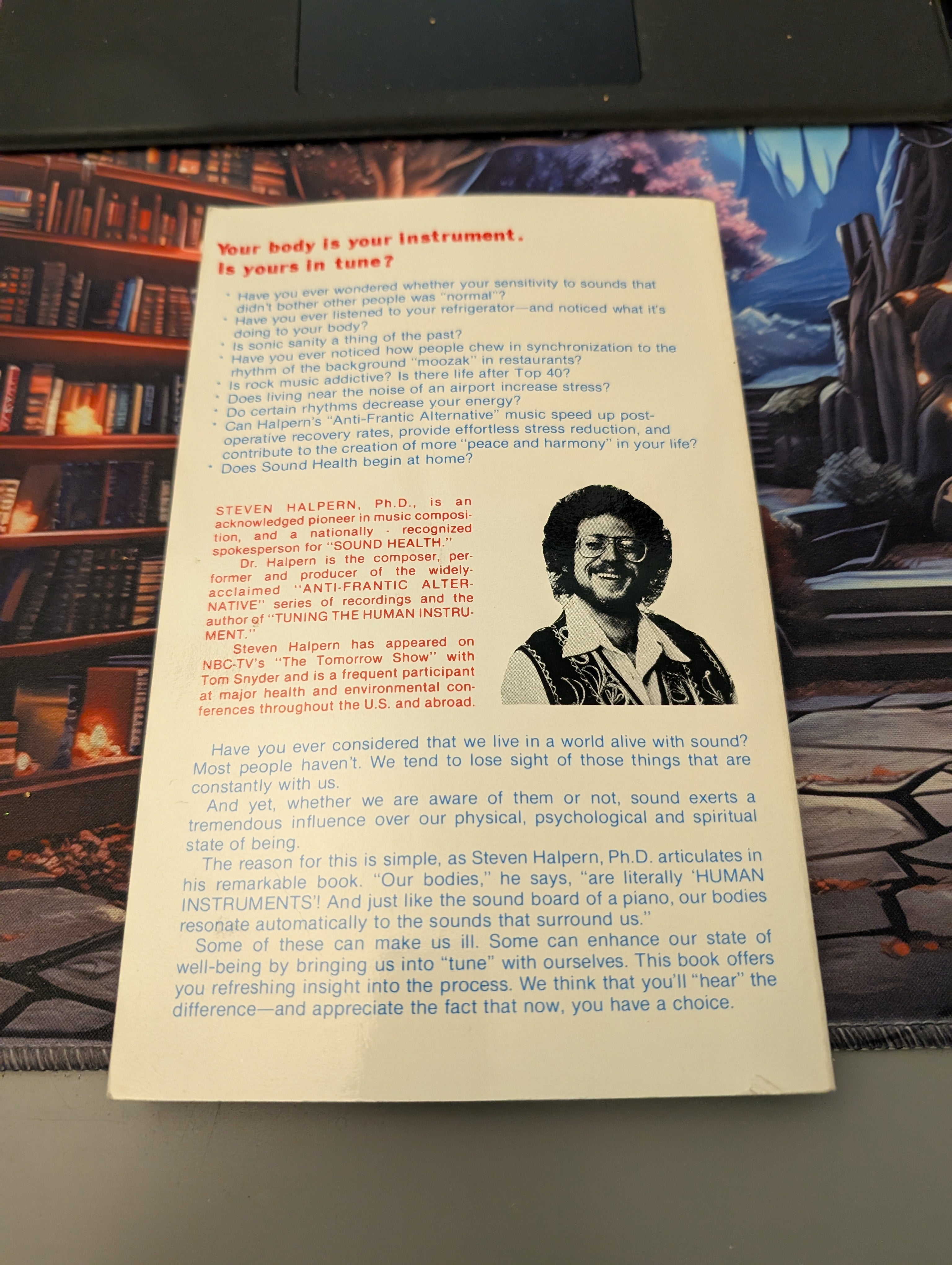 The reason for this is simple, as Steven Halpern, Ph.D. articulates in his remarkable book. "Our bodies," he says, "are literally 'HUMAN INSTRUMENTS'! And just like the sound board of a piano, our bodies resonate automatically to the sounds that surround us."