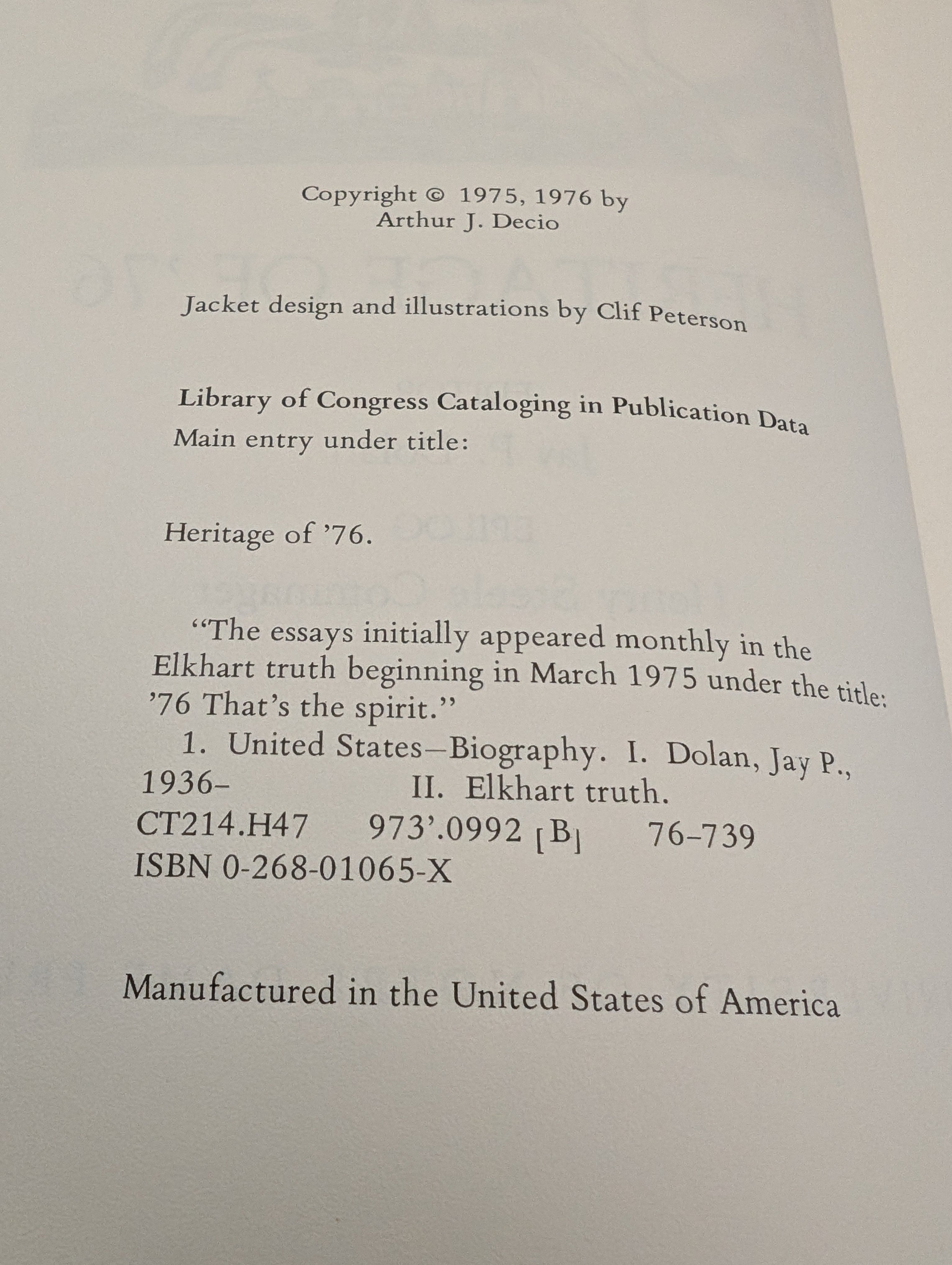 Heritage of '76 Published by University of Notre Dame Press, 1976 SEE PICS HCDJ is backordered and will ship as soon as it is back in stock.