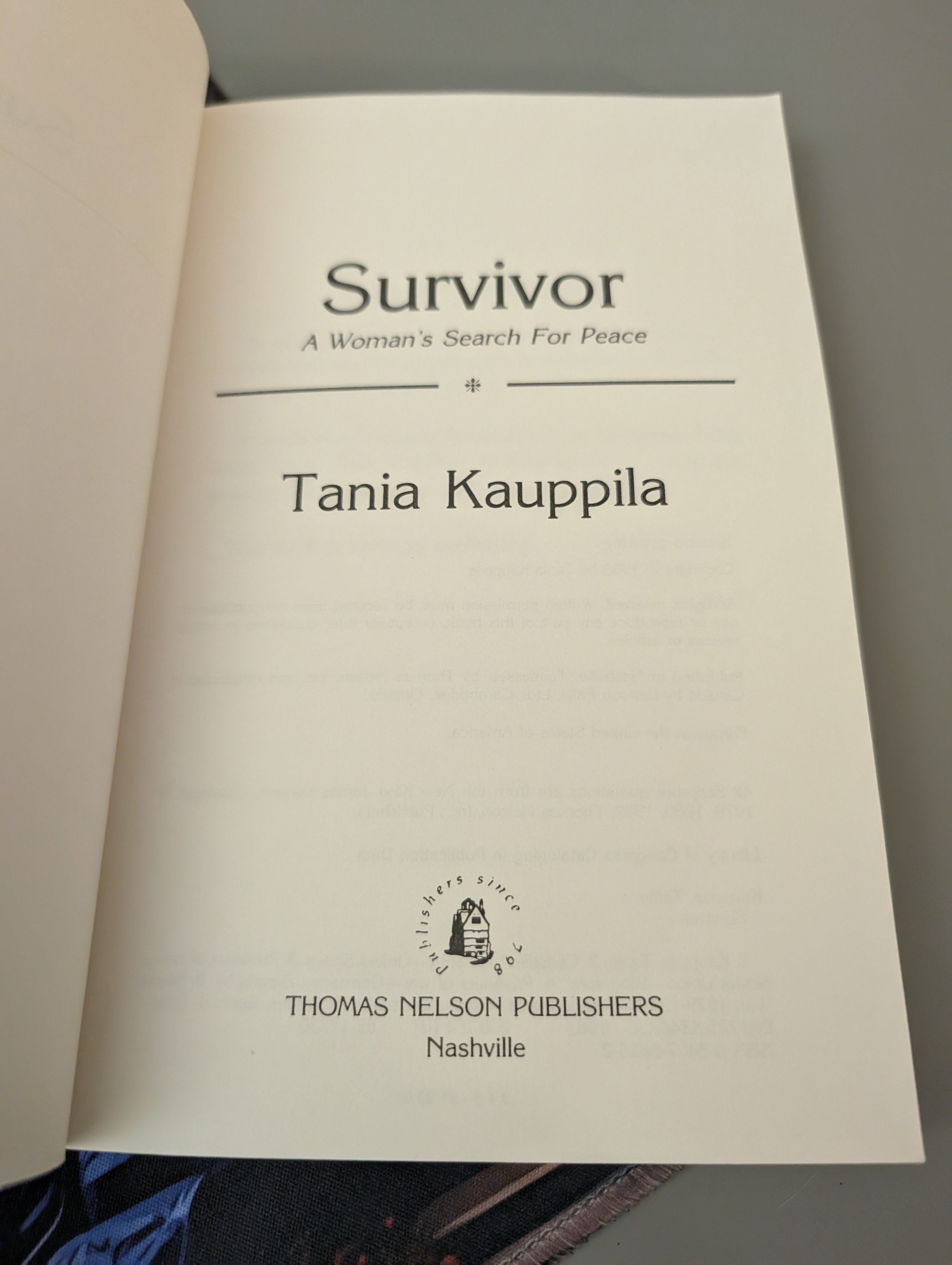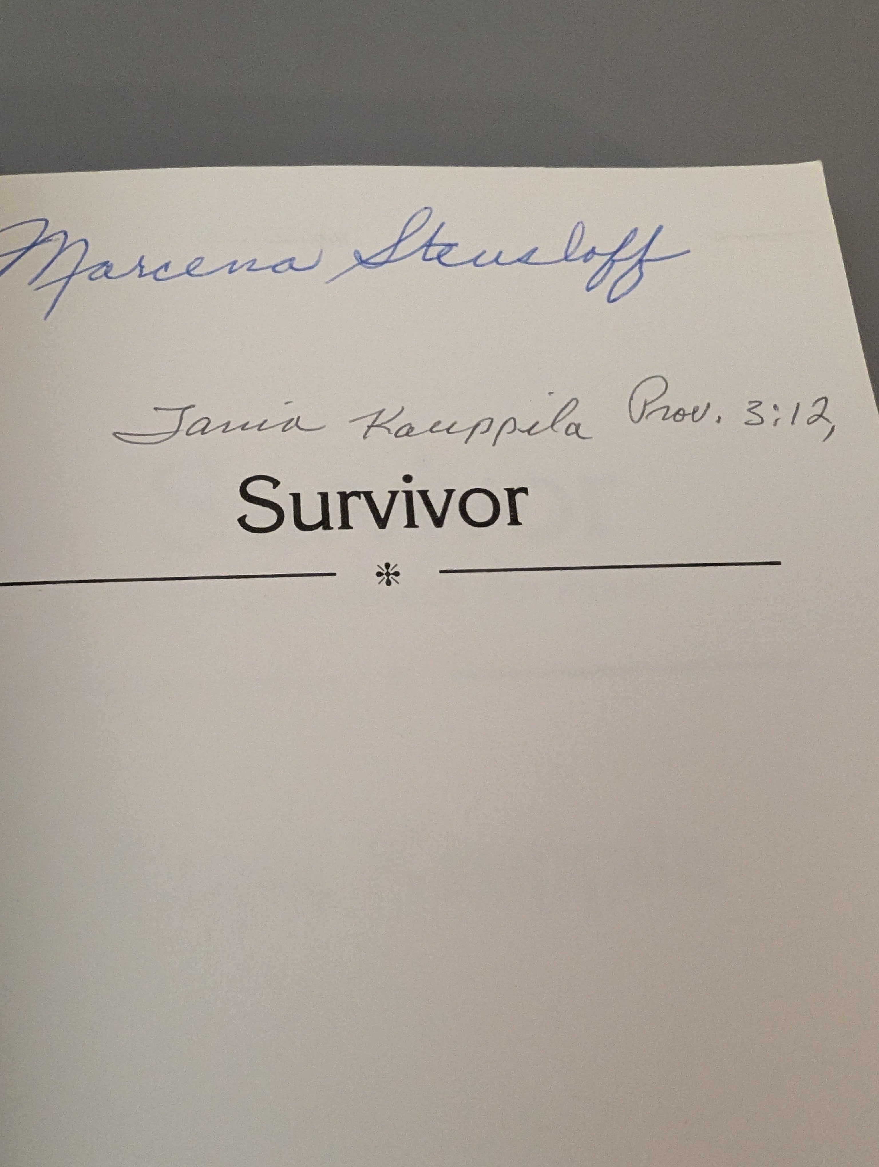 SIGNED!! Survivor: A Woman's Search for Peace by Kauppila, Tania VERY GOOD SEE PICS is backordered and will ship as soon as it is back in stock.
