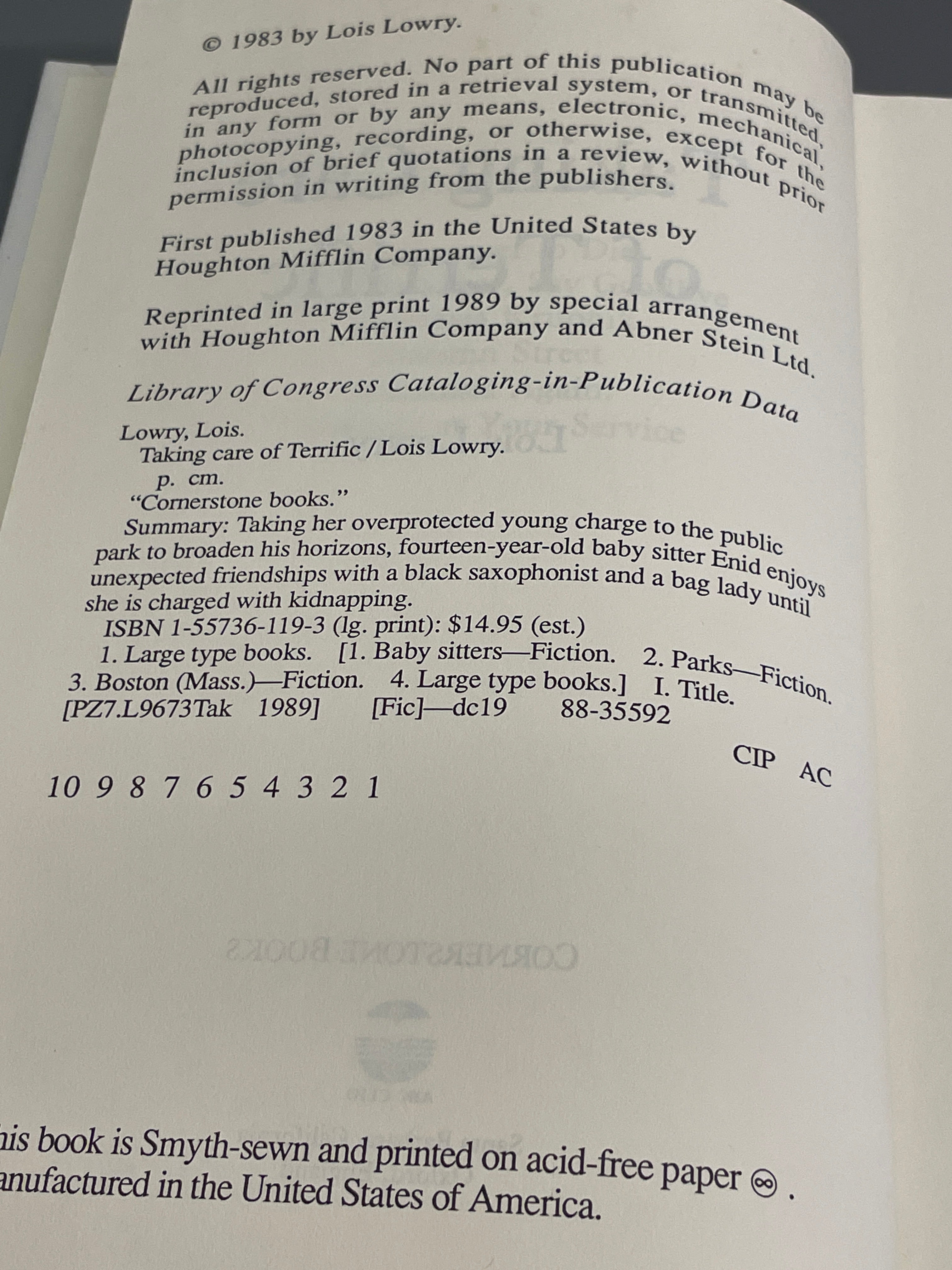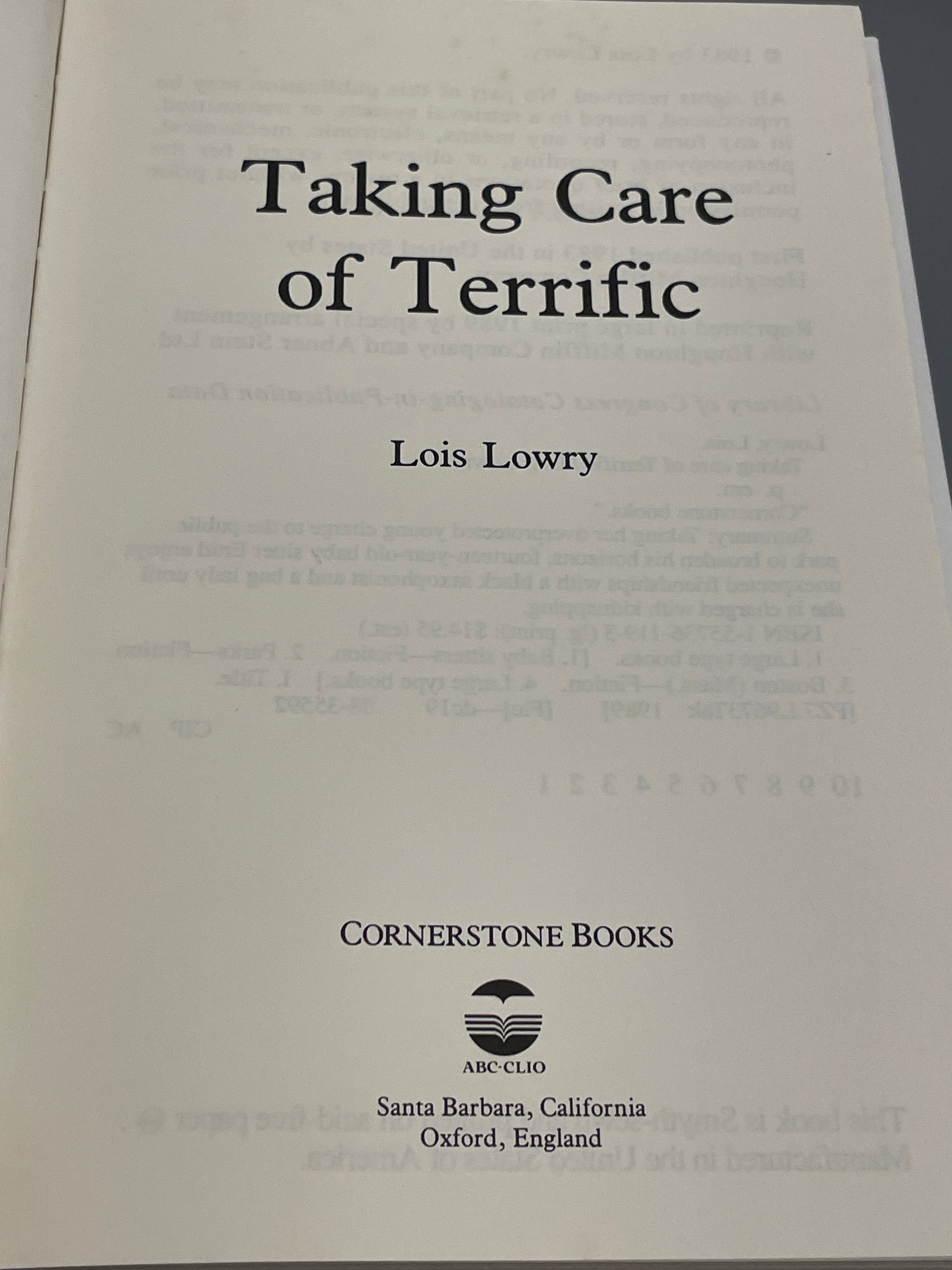 Taking Care of Terrific by Lois Lowry (1989) LARGE PRINT Hardcover HTF Braun-Brumfield is backordered and will ship as soon as it is back in stock.