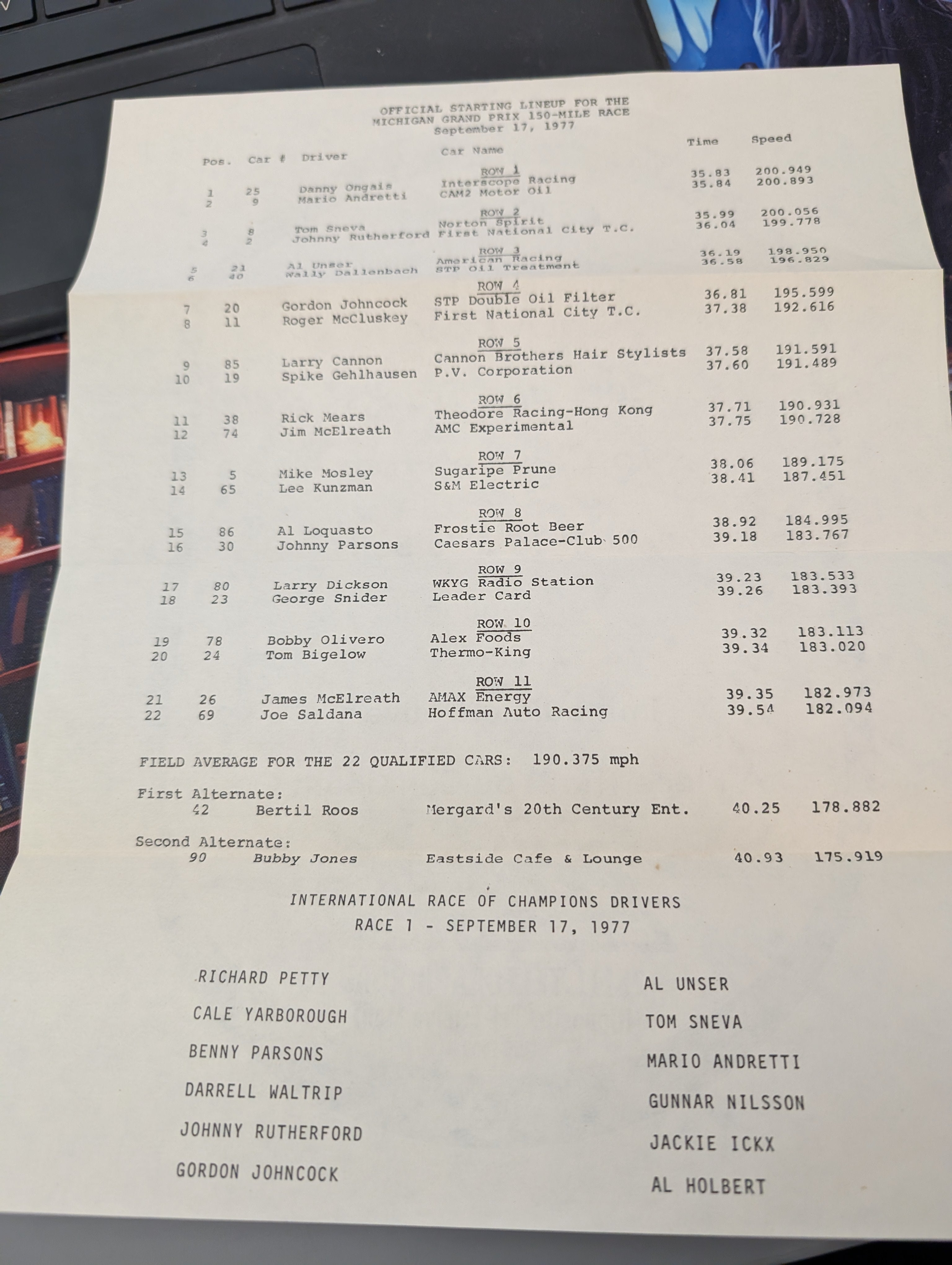 1977 Michigan Grand Prix Indy Car Race Program w/ Lineup See Pics is backordered and will ship as soon as it is back in stock.