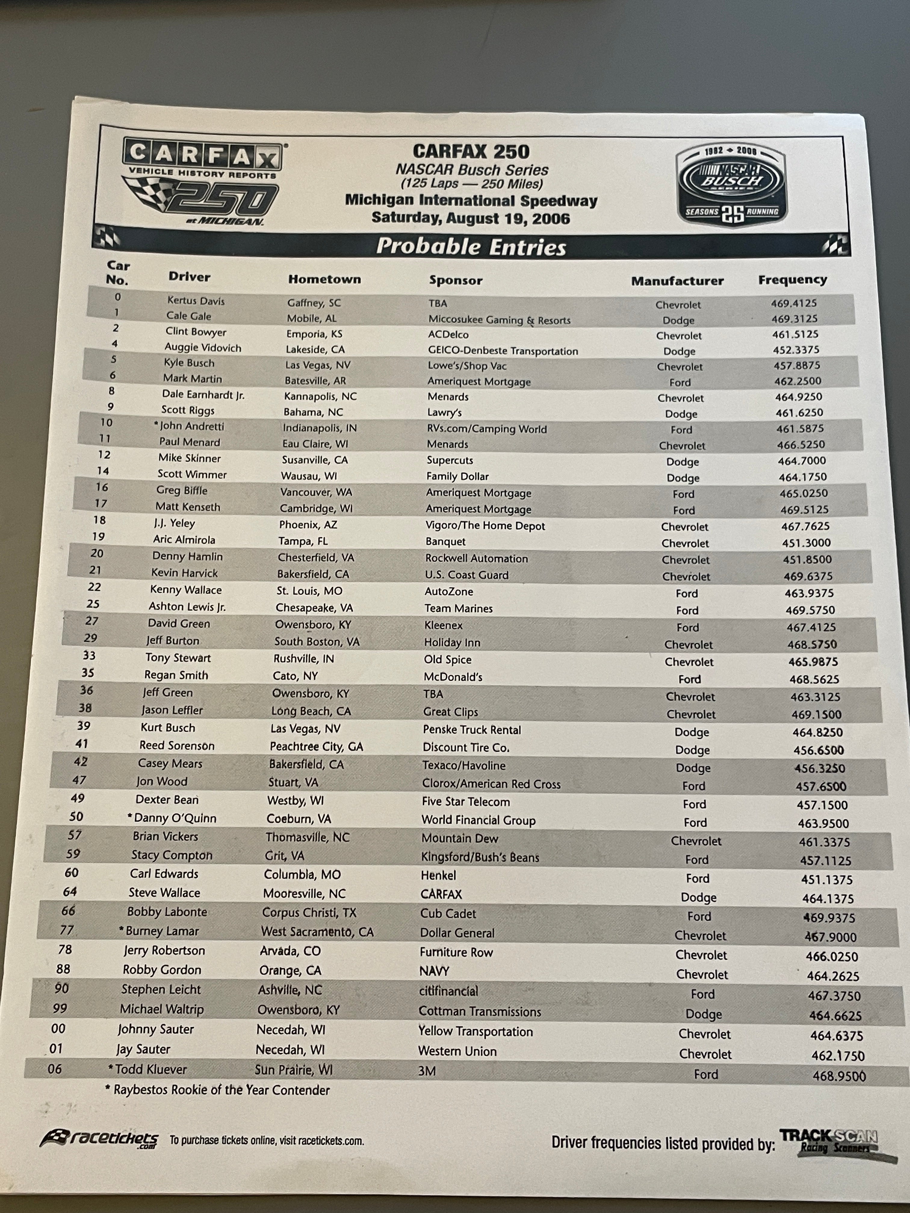 2006 GFS MARKETPLACE 400 PROGRAM MICHIGAN INTL SPEEDWAY FAN KIT NASCAR is backordered and will ship as soon as it is back in stock.