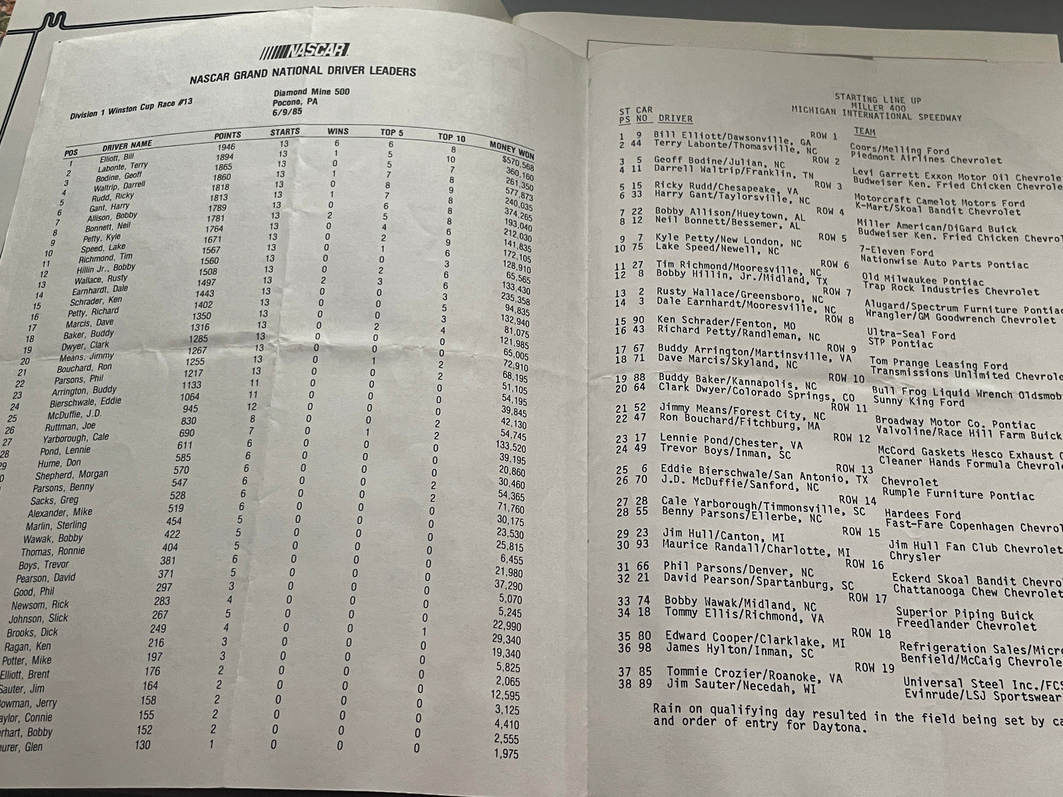 Michigan International Speedway Miller NASCAR Race Program 6/16/1985 is backordered and will ship as soon as it is back in stock.