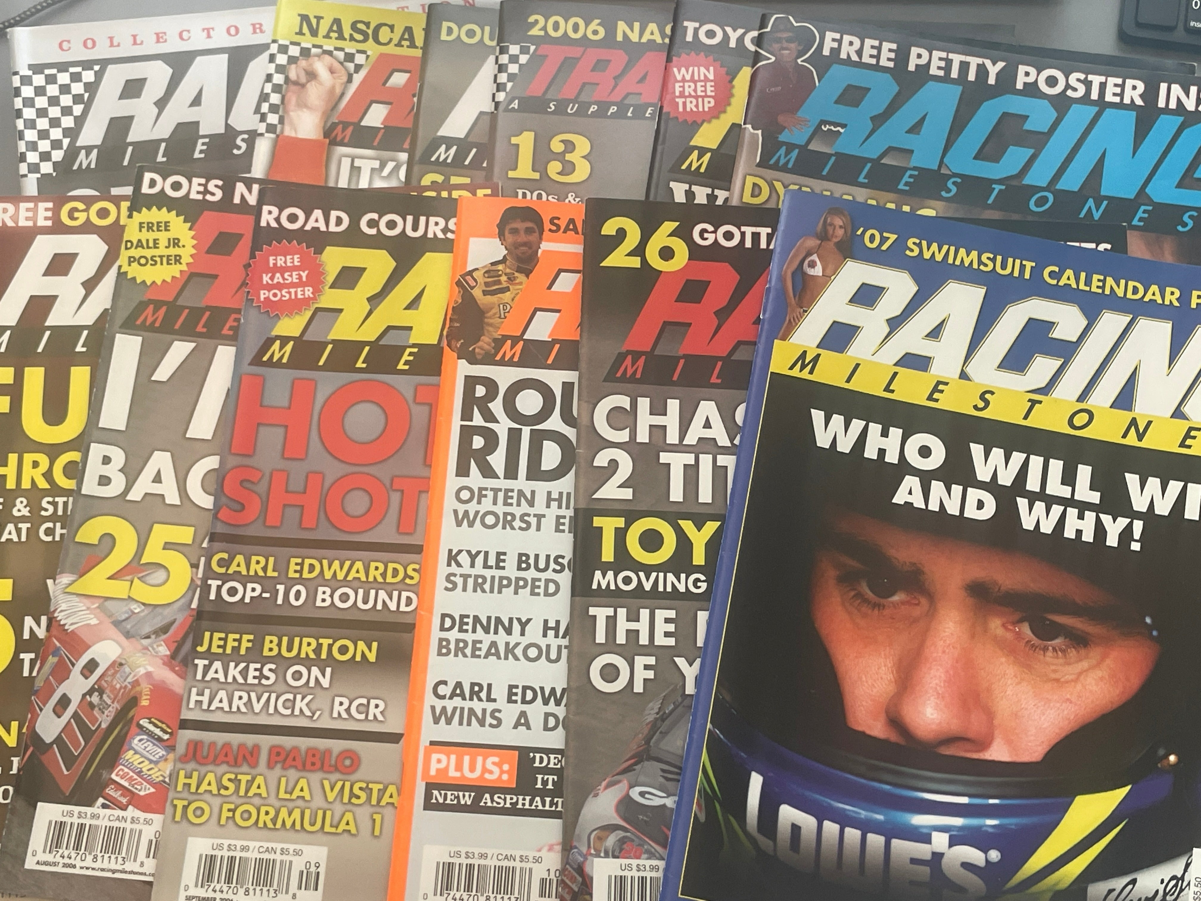 Magazine lot in Very Good (VG) condition. Light wear. Includes 15 issues. See ALL pictures! March and April are a combined issue. Also includes May 2005 issue; Racing Milestones 2007 Season Preview, 2009 Season Preview + BONUS, Track Guide Nascar supplement to Racing Milestones.
