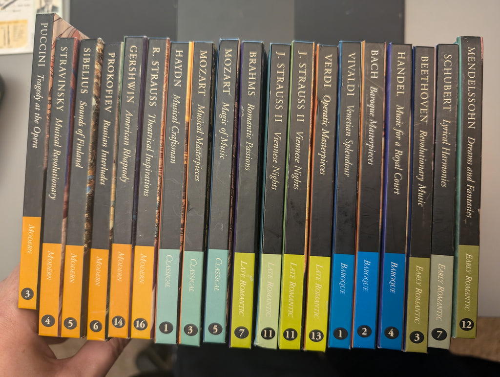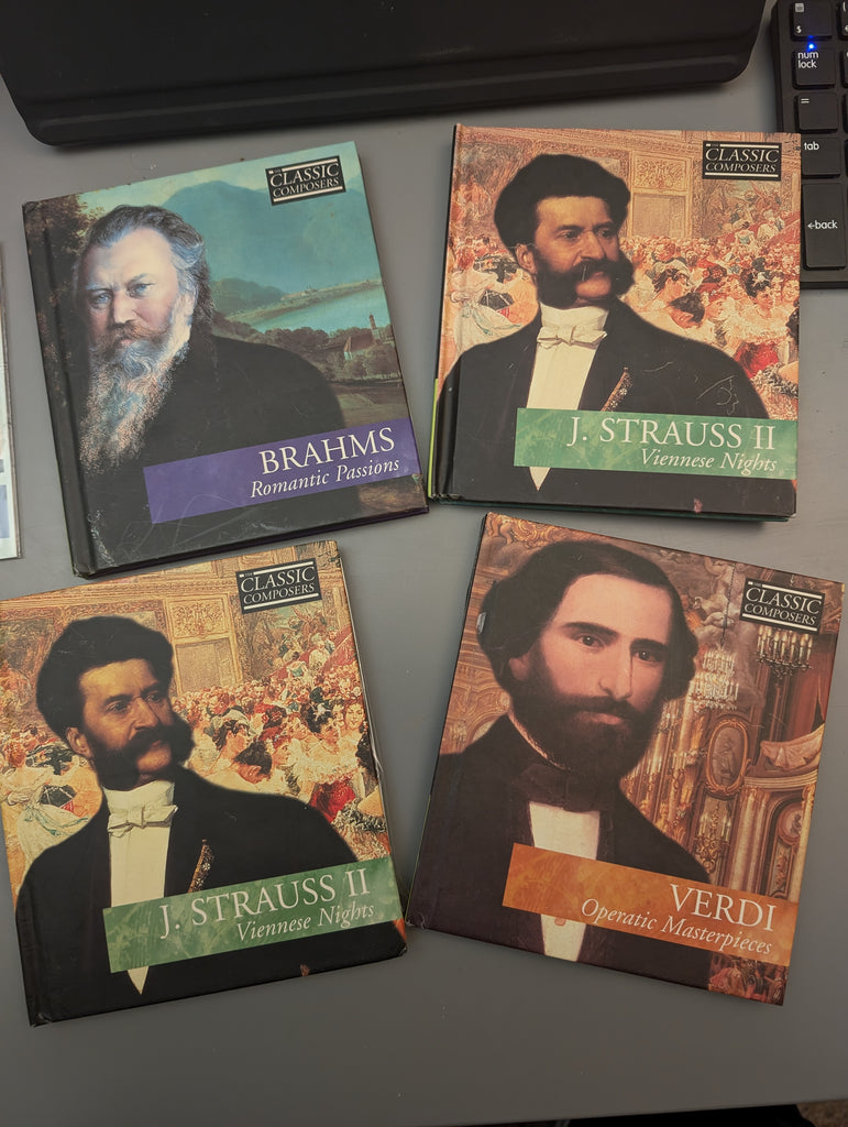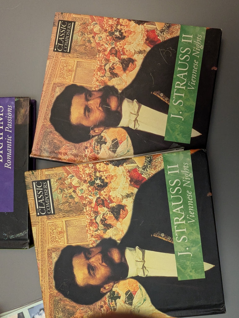 19 CDS, ONE DOUBLE (Strauss). All in the original cases, I think only one "card" is missing for one of the Strauss sets. Two "cards" have come loose, and I am not sure which cases they belong in. All in Very Good condition. See pictures for more details.