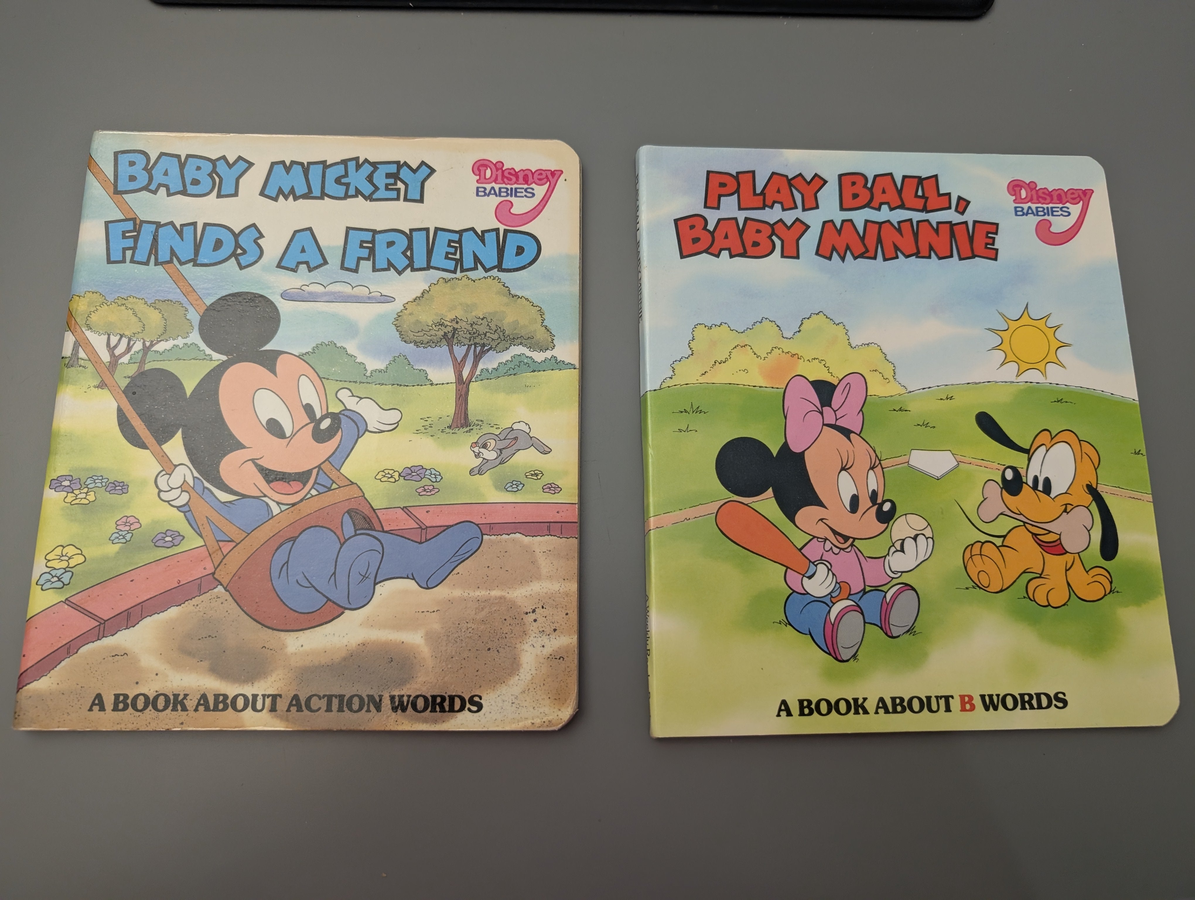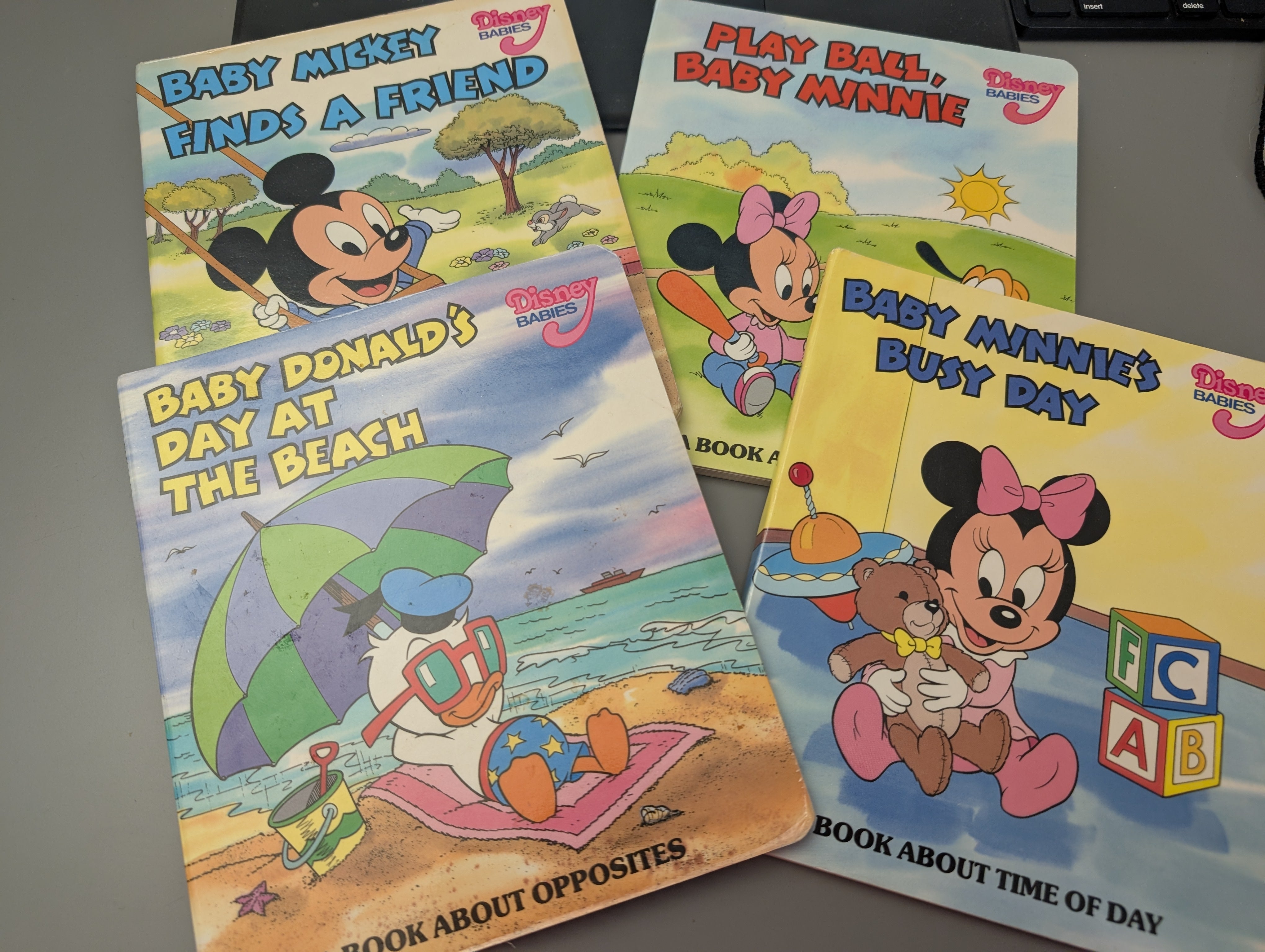Condition Details: Board Book lot in Very Good condition, Baby Mickey Finds a friend is in Good condition. Faint stain on edge of covers, spine cracked/rubbed at first page. See pics.