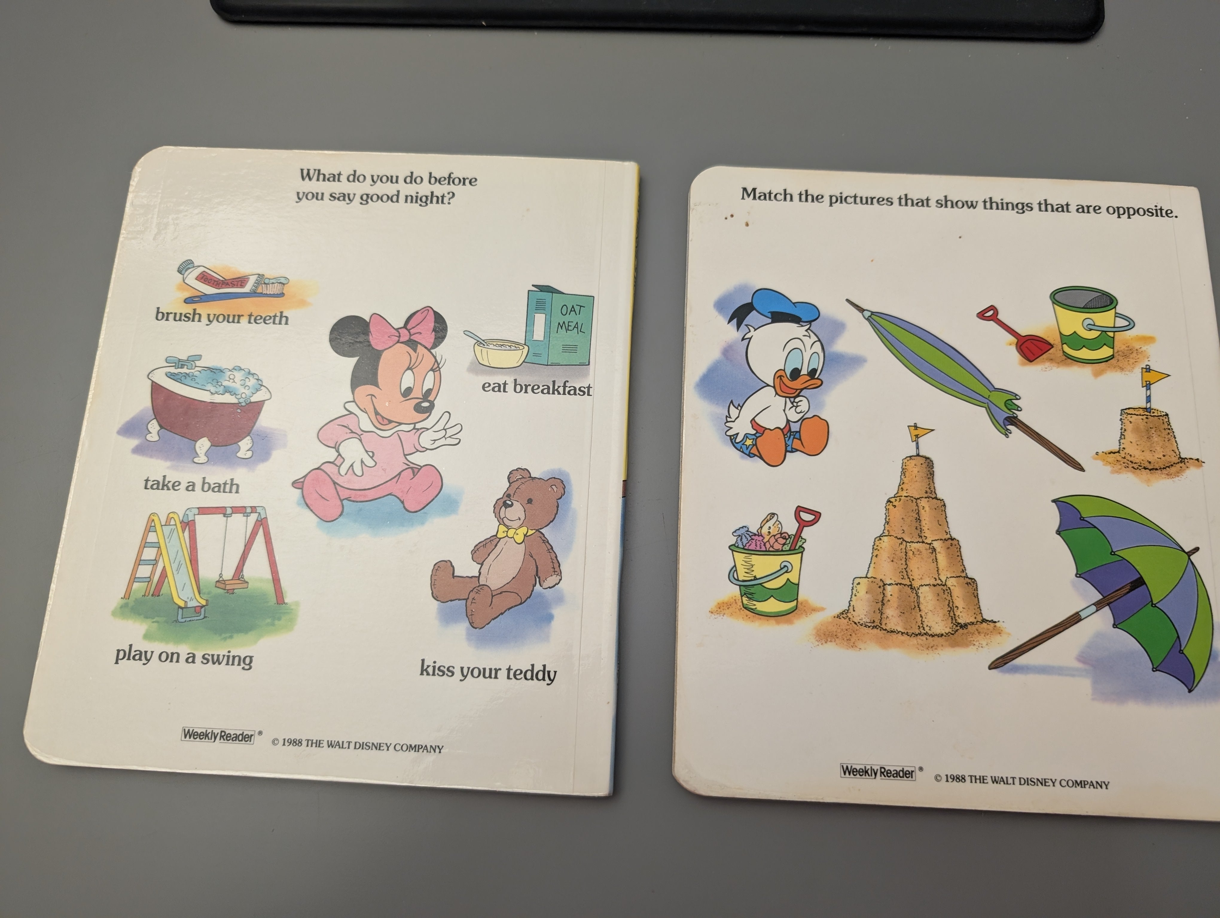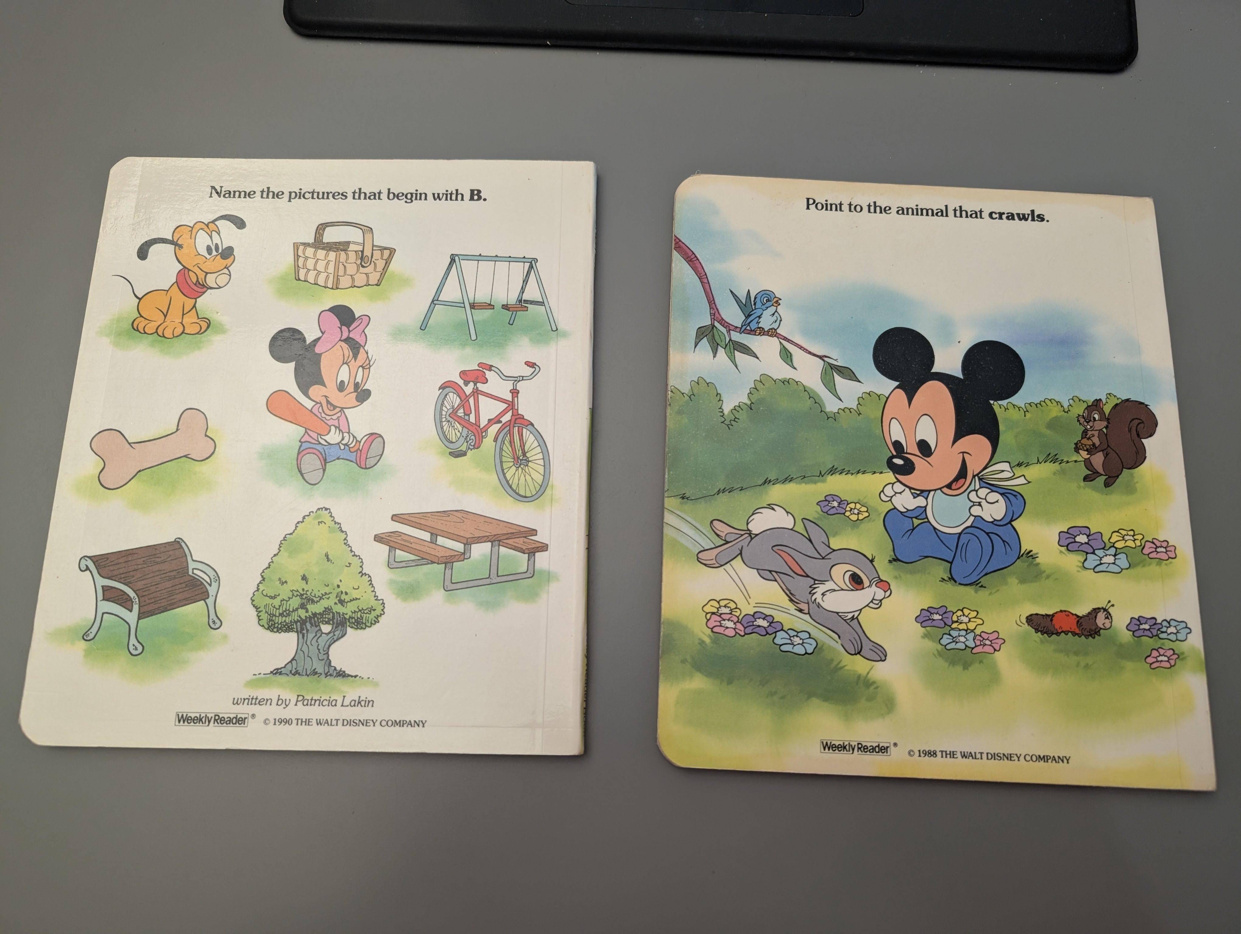 Board Book lot in Very Good condition, Baby Mickey Finds a friend is in Good condition. Faint stain on edge of covers, spine cracked/rubbed at first page. See pics.