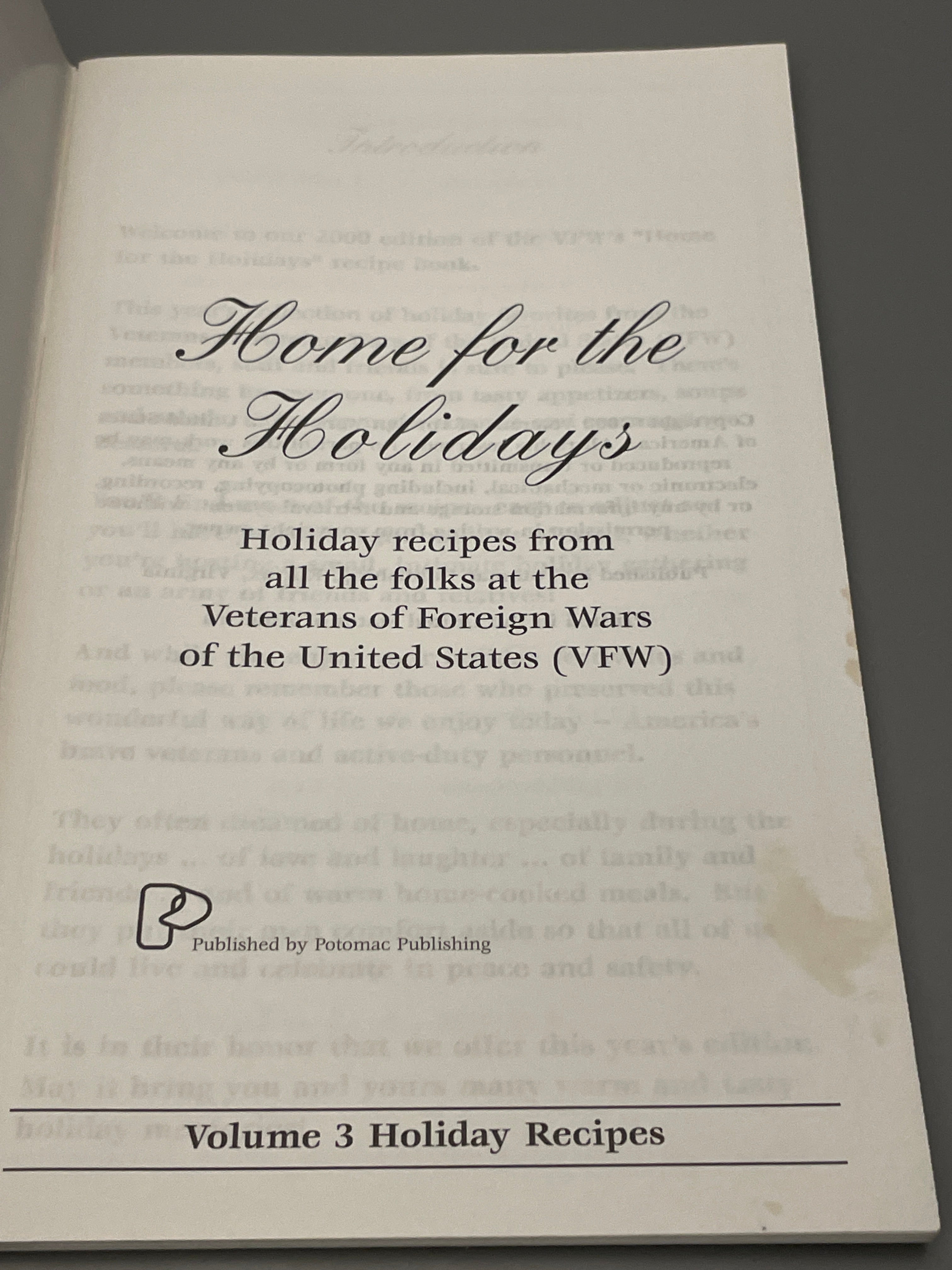 Home for the Holidays ~ Volume 3 Holiday Recipes [Pamphlet] VFW Supporters 2000