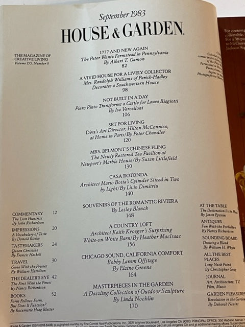 House & Garden September 1983 Magazine Napa Valley Peter Wentz Farmstead Tea Pavillion is backordered and will ship as soon as it is back in stock.