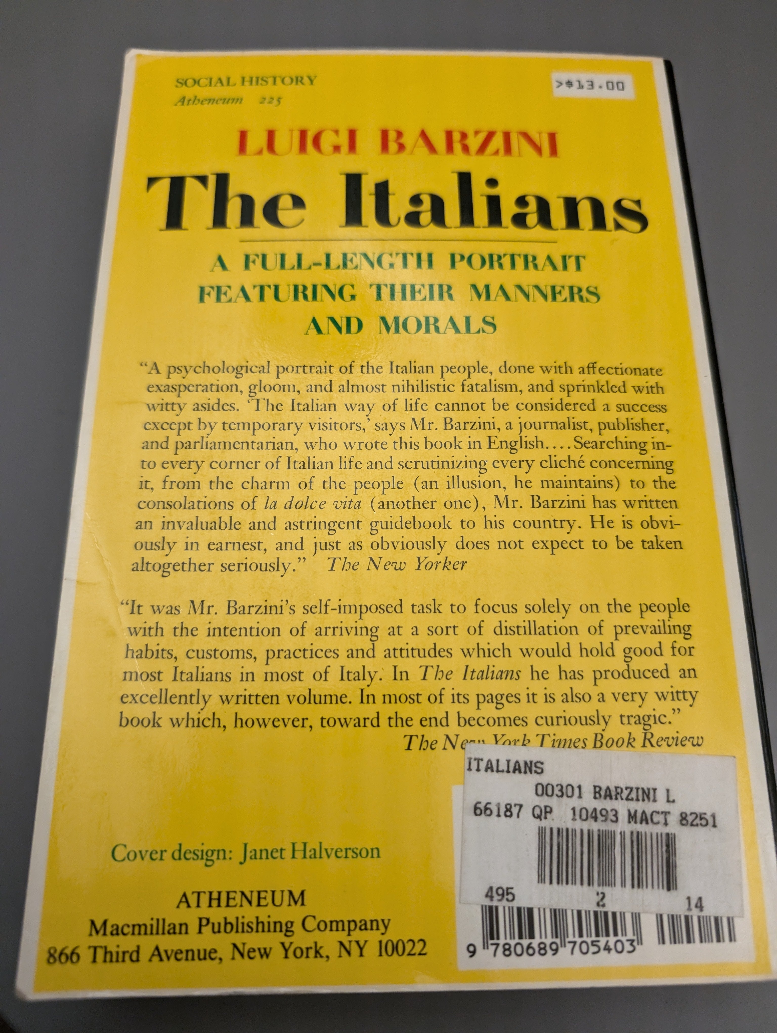 The 'fatal charm of Italy' has held Lord Byron - and millions of tourists ever since - in its spell. Yet, beneath 'the brilliant and vivacious surface', what are the realities of Italian life? Few writers have ever painted a portrait of their compatriots as crisp, frank and fearless as Luigi Barzini's. Cutting through the familiar cliches, he instructs us with a cascade of anecdotes and provides a marvelous guided tour through centuries of history. He examines Machiavelli and Mussolini, popes, pilgrims and prostitutes, cliques and conspiracies, Casanova and the crippling power of the Church. Yet alongside the Baroque exuberance and spectacular display, the love of life and the life of love, he also shows us a divided nation, injustice, ignorance, poverty and fear. All this is Italy, a country of dazzling achievement and an uncanny aptitude for getting round problems; both its virtues and its vices are celebrated in this sparkling book.
