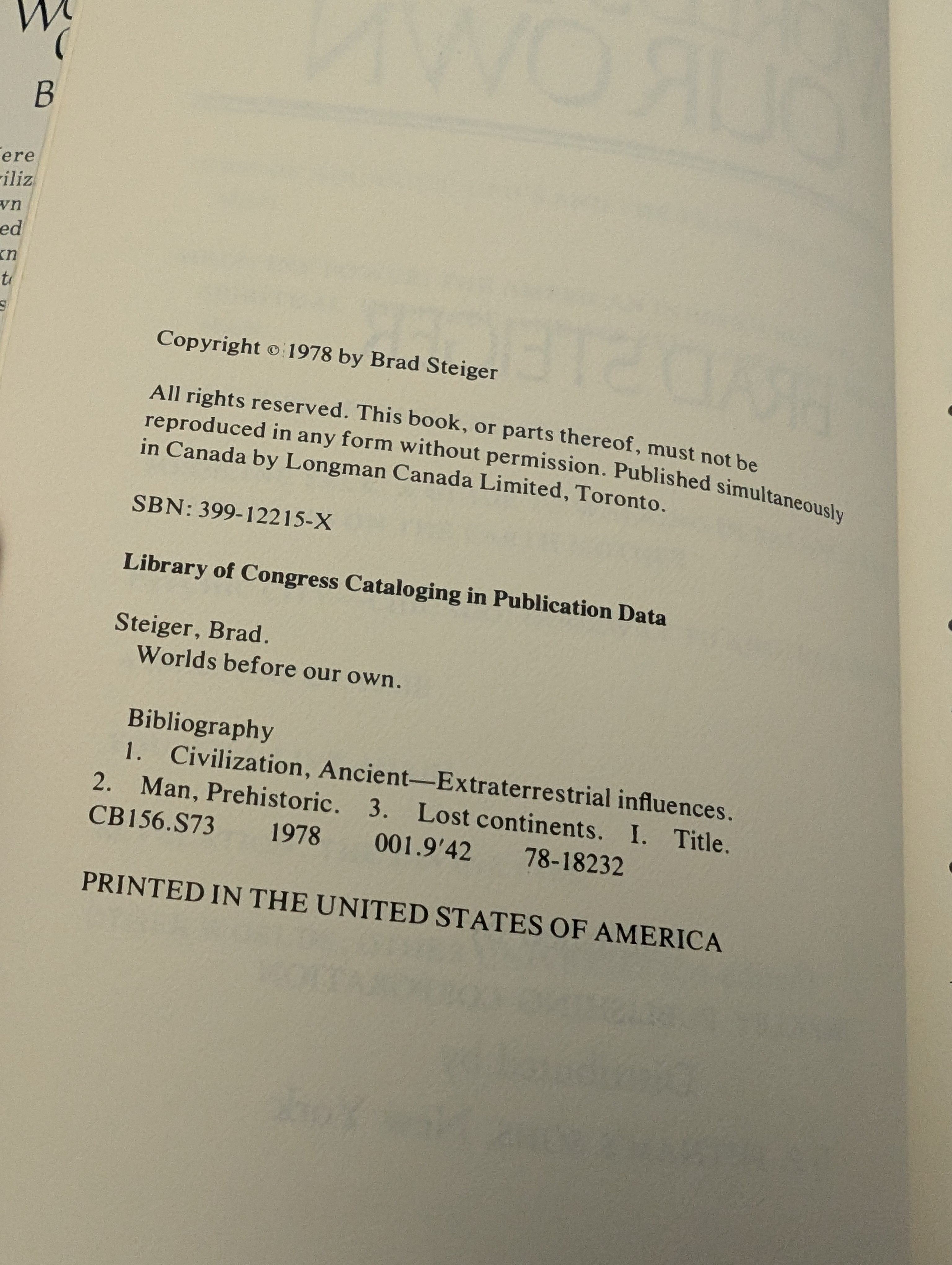 Worlds Before Our Own by Steiger, Brad (1978) HCDJ GOOD