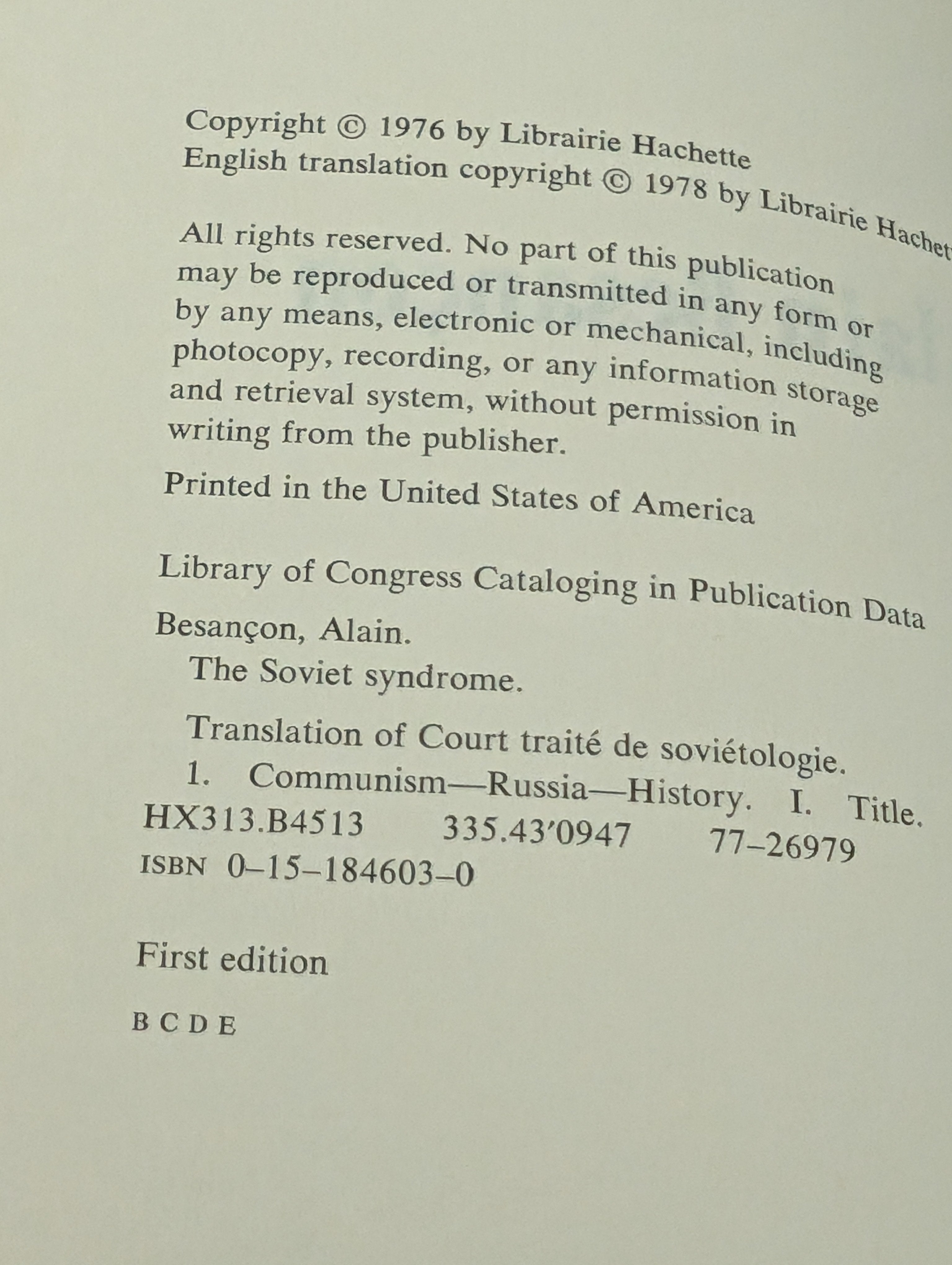 Soviet Syndrome by Besancon, Alain 1976 STATED FIRST EDITION HCDJ SEE PICS is backordered and will ship as soon as it is back in stock.
