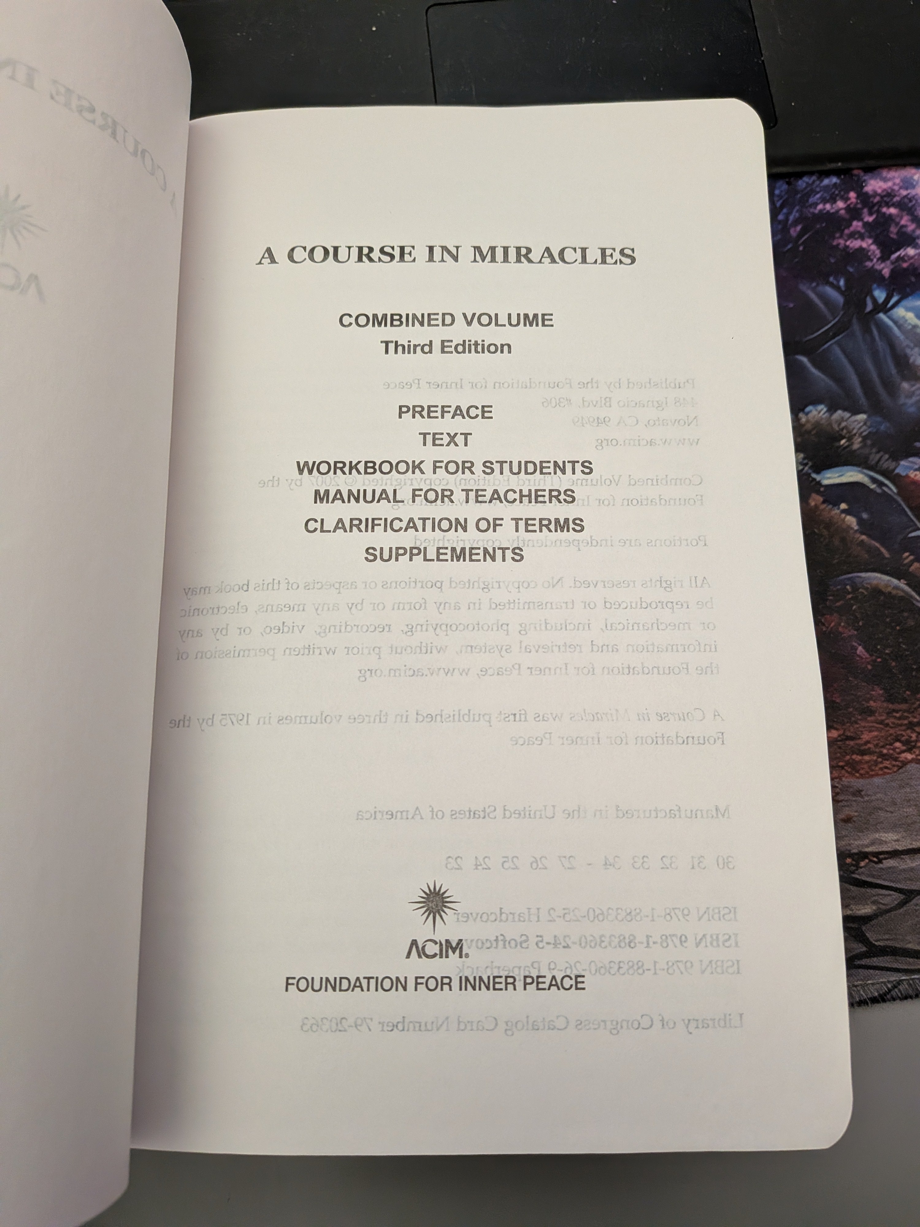 This is the edition of A Course in Miracles that its two scribes, Drs. Helen Schucman and Bill Thetford, authorized for publication by the Foundation for Inner Peace in 1975. It is now available in translation in 27 languages and is widely used by students in thousands of Course study groups around the world. A Course in Miracles is a unique spiritual self-study program—a course in mind-training—designed to undo the illusion that you are separate in any way from God or your fellow humans. At the level of the mind we are all united as one. When we learn to live this truth consistently, fear, anger and guilt give way to a profound sense of inner peace. The Course systematically leads you to experience God’s Love in all your relationships through the practice of forgiveness (releasing the past), the willingness to receive and follow higher guidance, and the cultivation of miracle-mindedness. Happiness, peace, joy, and love are the natural outcomes of the Course’s teaching. A Course in Miracles consists of three separate Text, Workbook for Students and Manual for Teachers. The Text presents the theory of the Course, laying out its central ideas in a holistic, symphonic-like progression. The Workbook for Students provides 365 lessons, one for each day of the year. It begins the process of changing the student’s mind and perception. The Manual for Teachers is written in question-and-answer form to address many of the most important and practical Course topics. Also included in this Combined edition only are two valuable Supplements to the Purpose, Process and Practice and the beautiful and inspiring Song of Prayer.