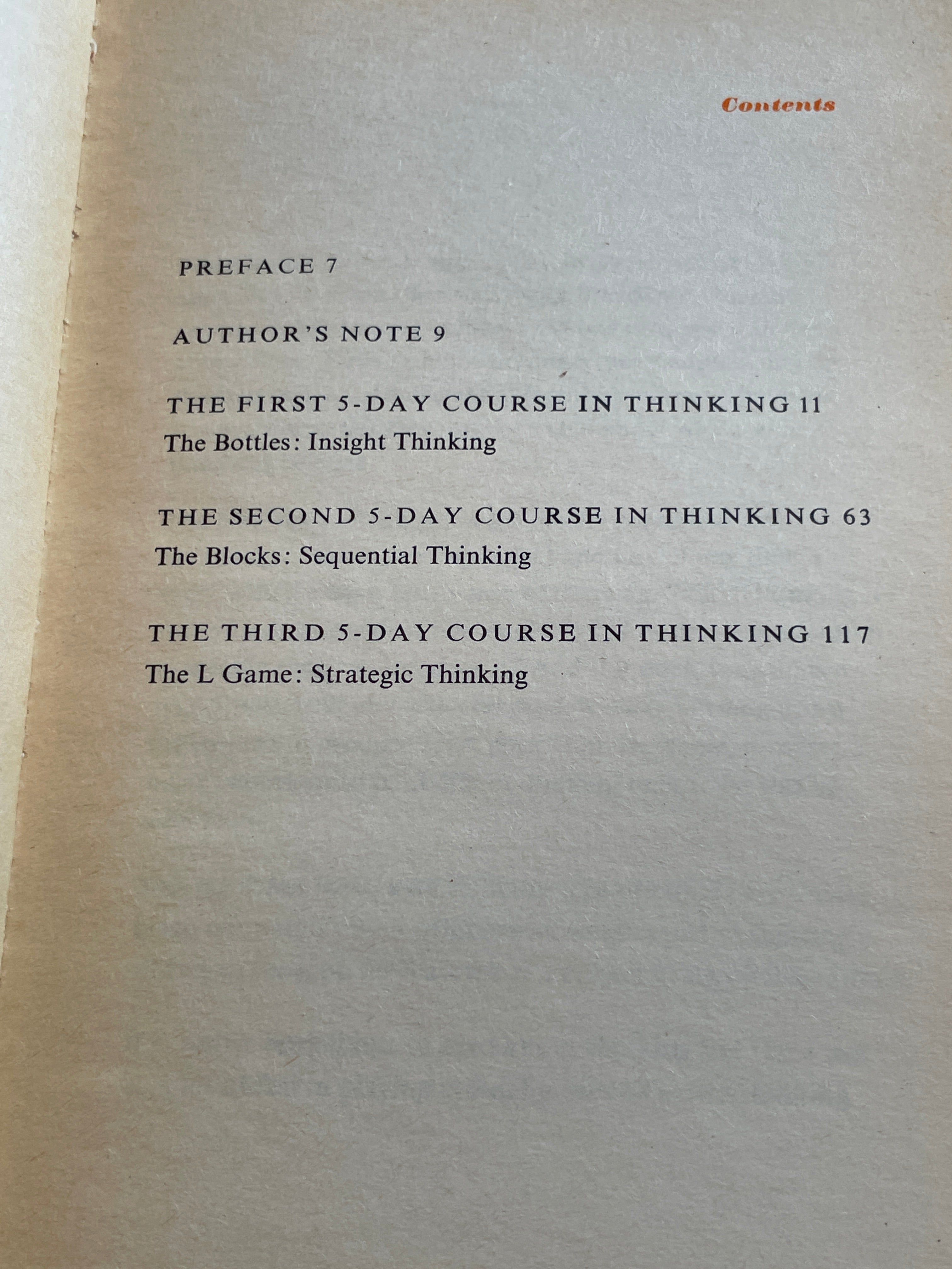The 5-Day Course in Thinking by Edward de Bono (1985) is backordered and will ship as soon as it is back in stock.