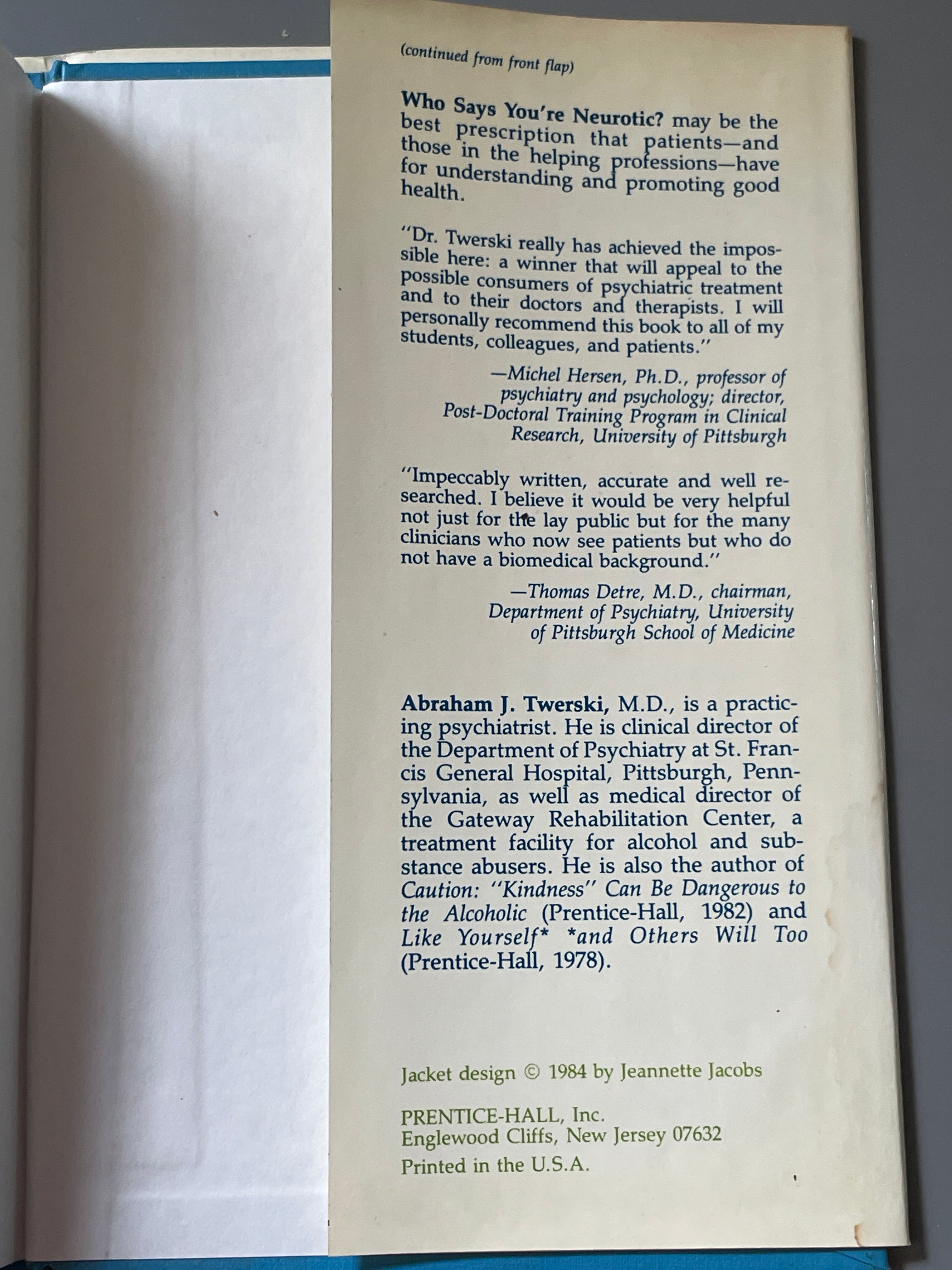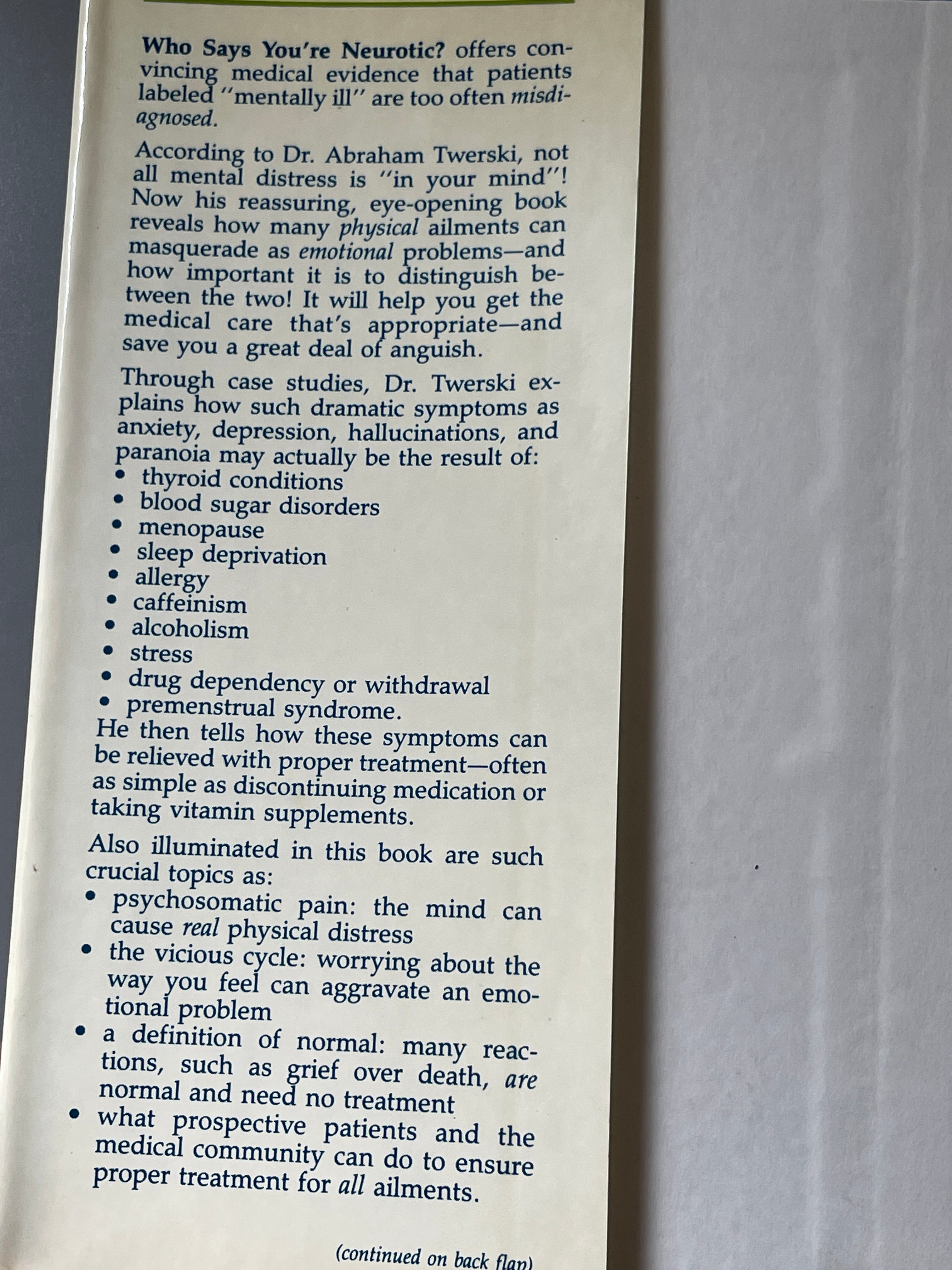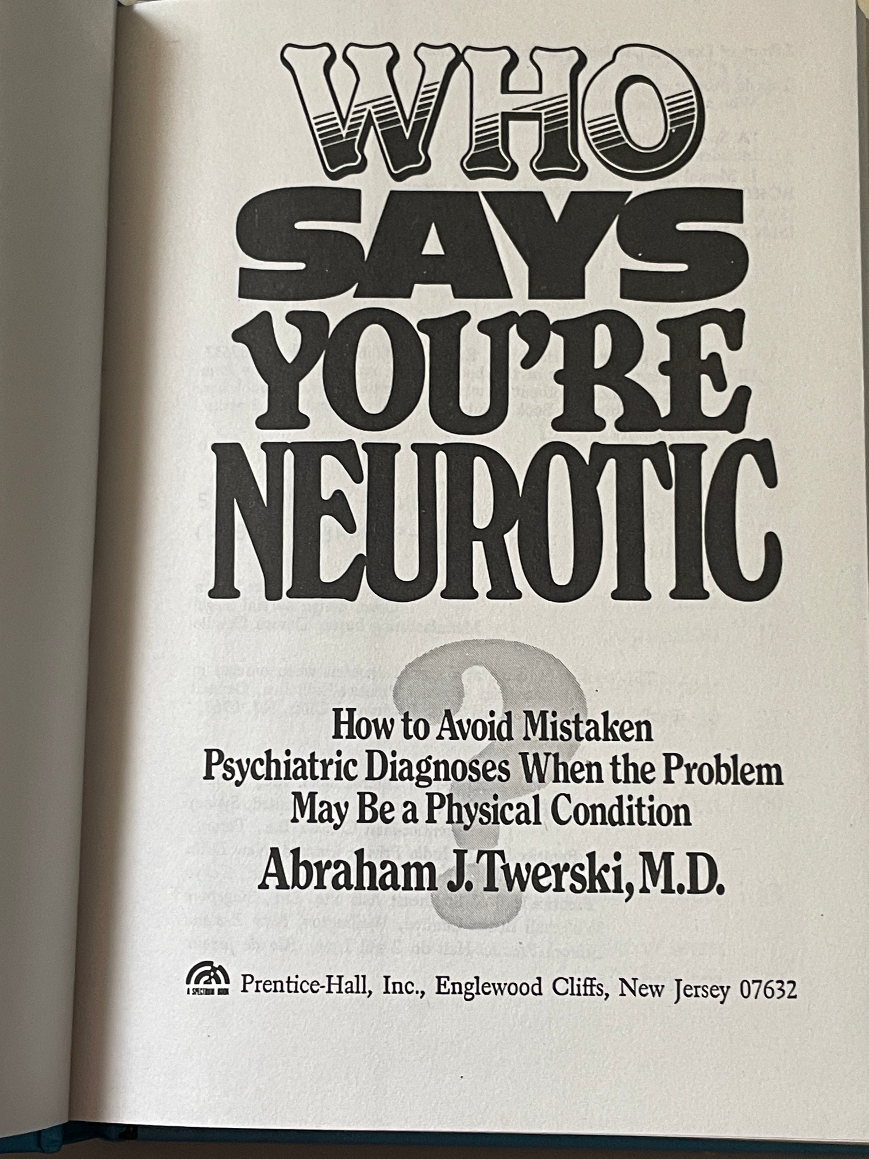 Who Says You're Neurotic? by Abraham J. Twerski, M.D. (1984) is backordered and will ship as soon as it is back in stock.