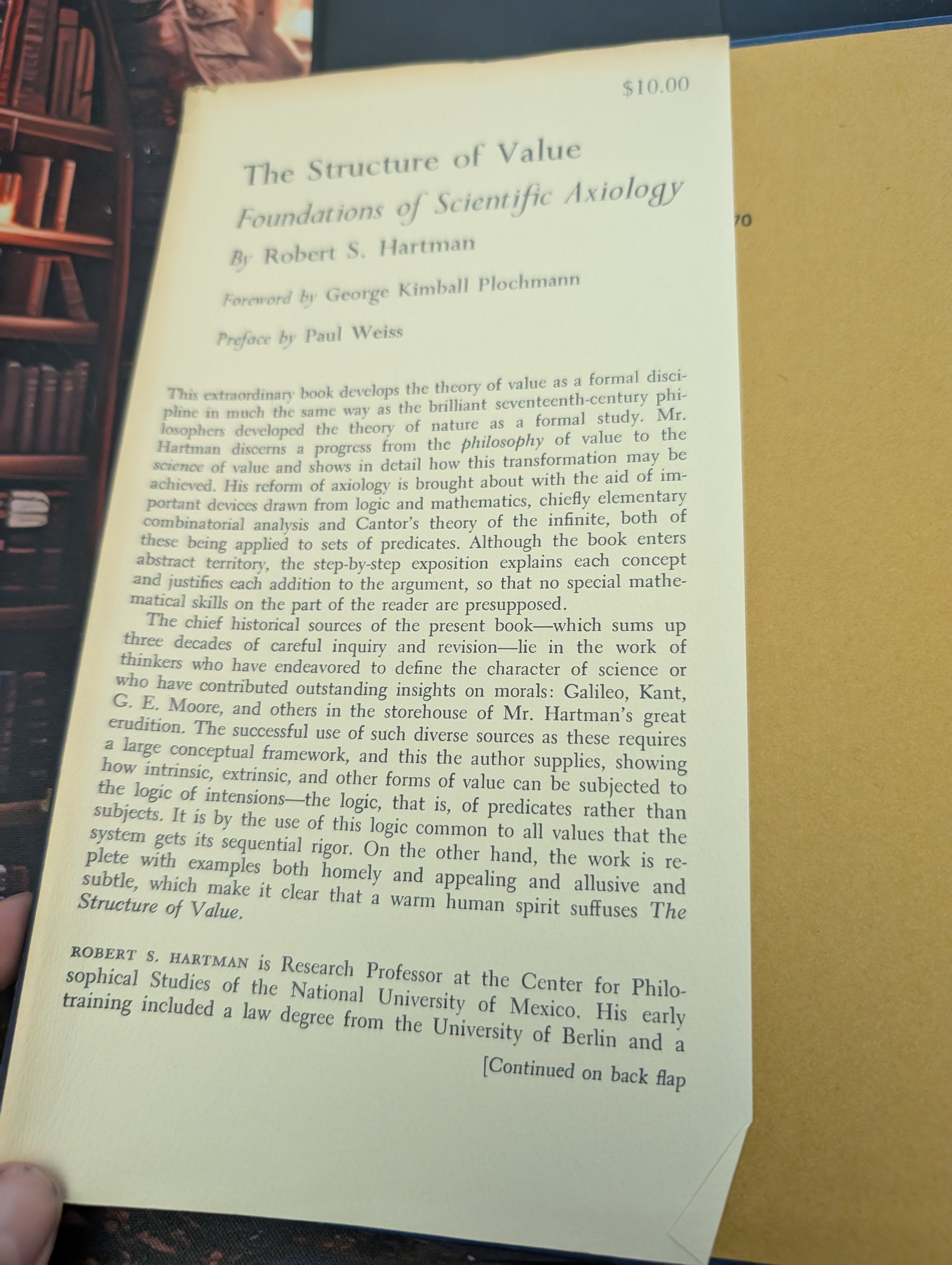 Hartman's revolutionary book introduces formal orderly thinking into value theory. It identifies three basic kinds of value, intrinsic goods (e.g. people as ends in themselves), extrinsic goods (e.g. things and actions as means to ends), and systemic goods (conceptual values). All good things share a common formal or structural they fulfill the ideal standards or "concepts" that we apply to them. Thus, this theory is called "formal axiology" Some values are richer in good-making property-fulfillment than others, so some desirable things are better than others and form patterned hierarchies of value. How we value is just as important as what we value, and evaluations, like values, share structures or formal patterns, as this book demonstrates. Hartman locates all of this solidly within the framework of historical value theory, but he moves successfully and creatively beyond philosophical tradition and toward the creation of a new value science.