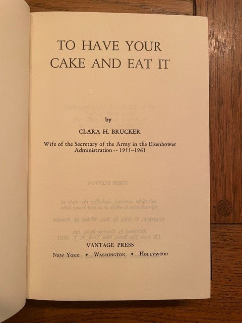 This is the autobiography of Clara Hantel Brucker, wife of Wilber M. Brucker (1930 Governor of Michigan and Secretary of the Army under Dwight D Eisenhower). The book covers the most exciting part of her life, including world travel, meeting famous and influential political leaders during the Cold War Era, the downfall of Joe McCarthy, launching the first US Satellite into orbit, the Nixon-Kennedy campaign, and performing the duties of running the US Army under President Eisenhower. There is a brief description of Clara’s early life and many significant events in Michigan of Wilber’s career as Governor, including his fight with the Purple Gang.