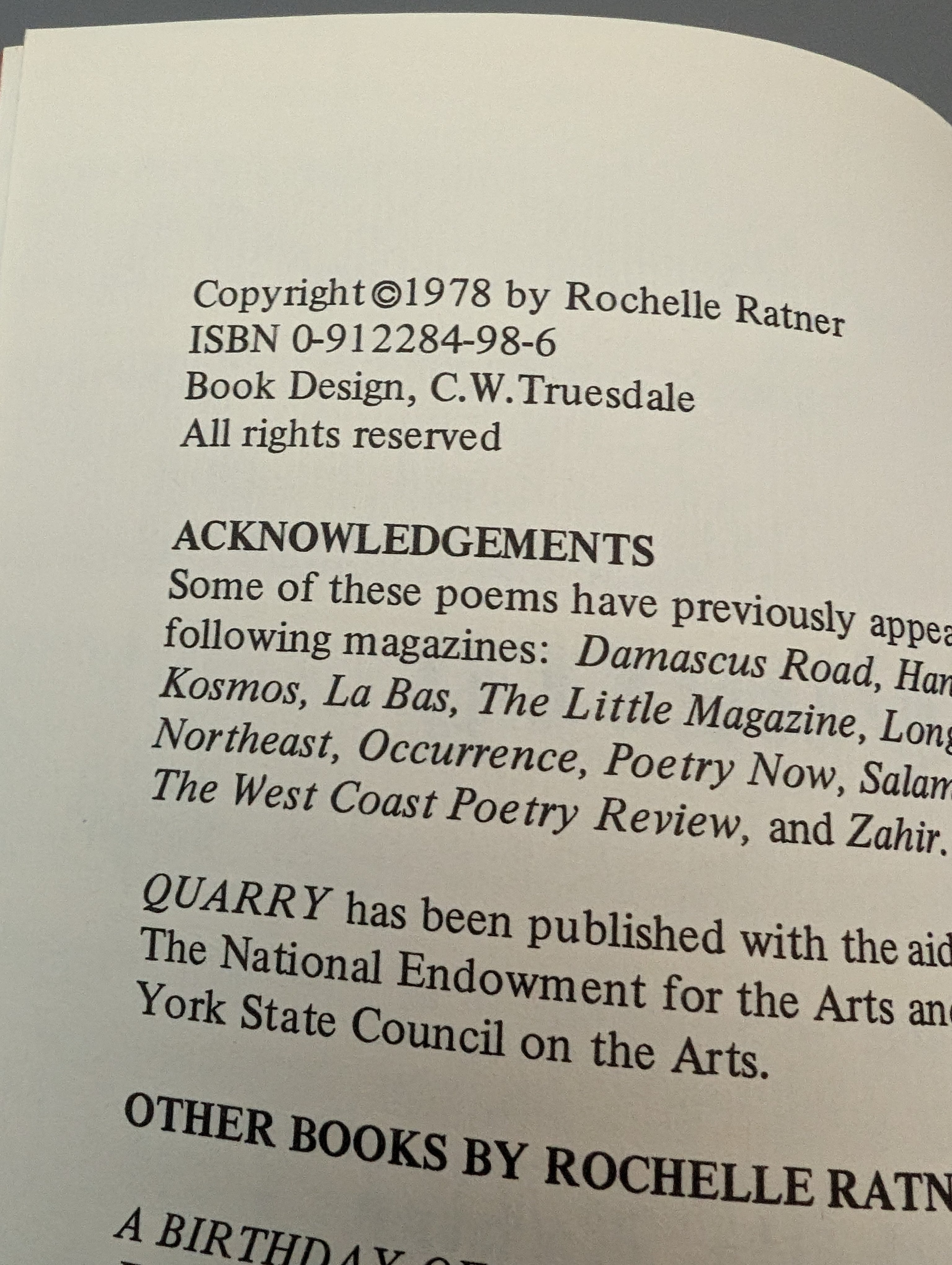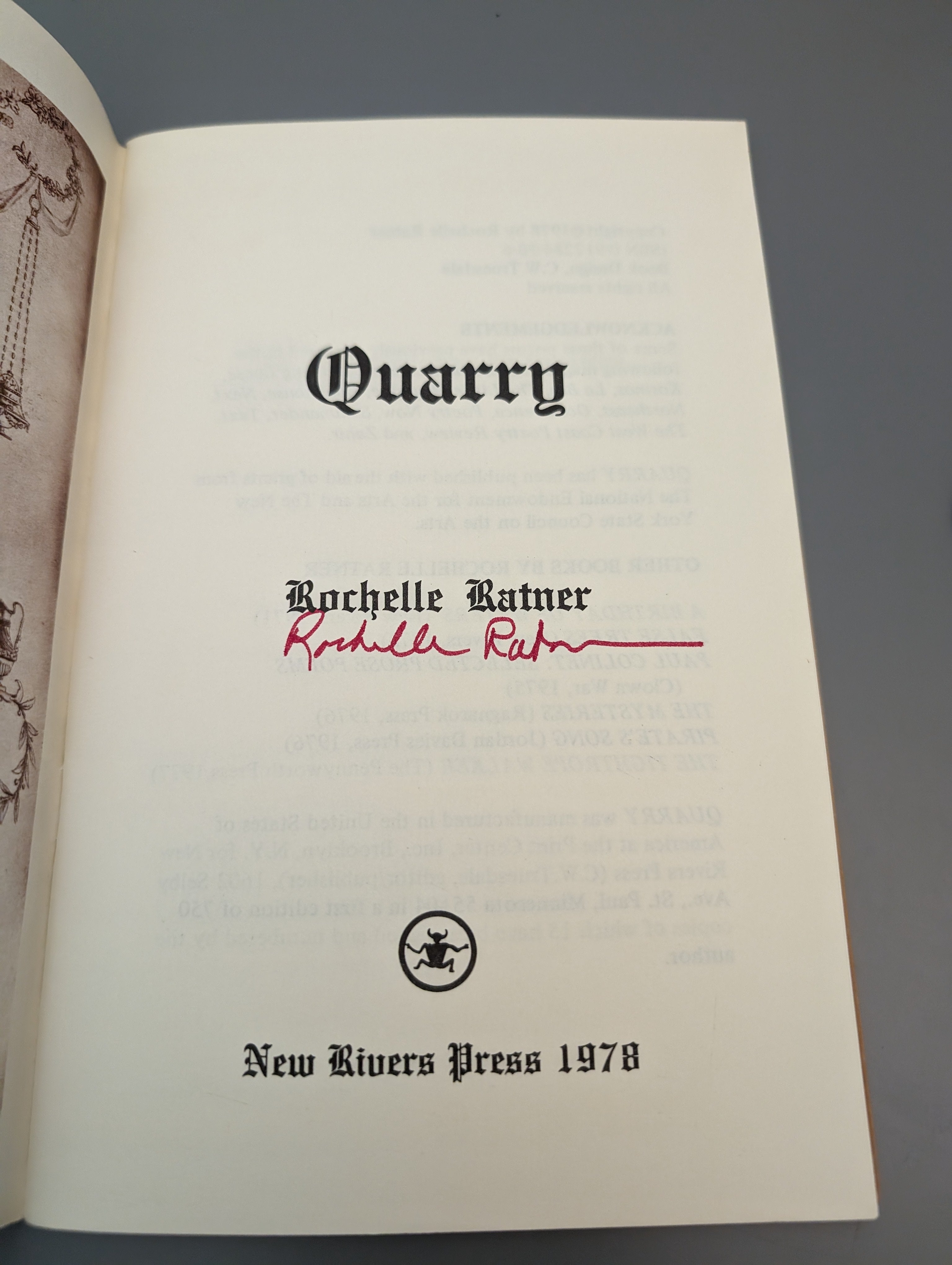 Quarry by Ratner, Rochelle 1978 Poetry SIGNED SEE PICS is backordered and will ship as soon as it is back in stock.