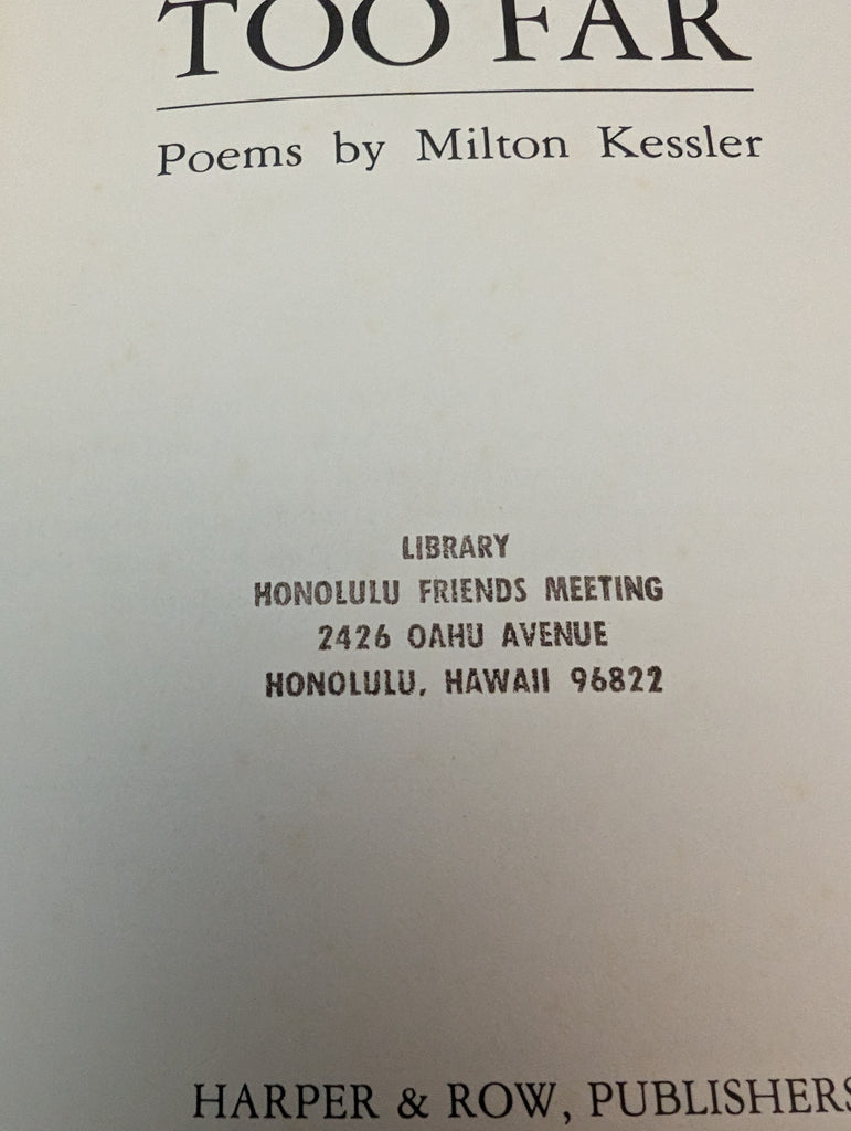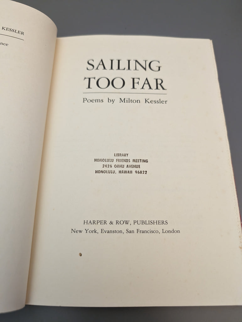Sailing Too Far: Poems by Kessler, Milton SIGNED 1973 FIRST EDITION SEE PICS is backordered and will ship as soon as it is back in stock.
