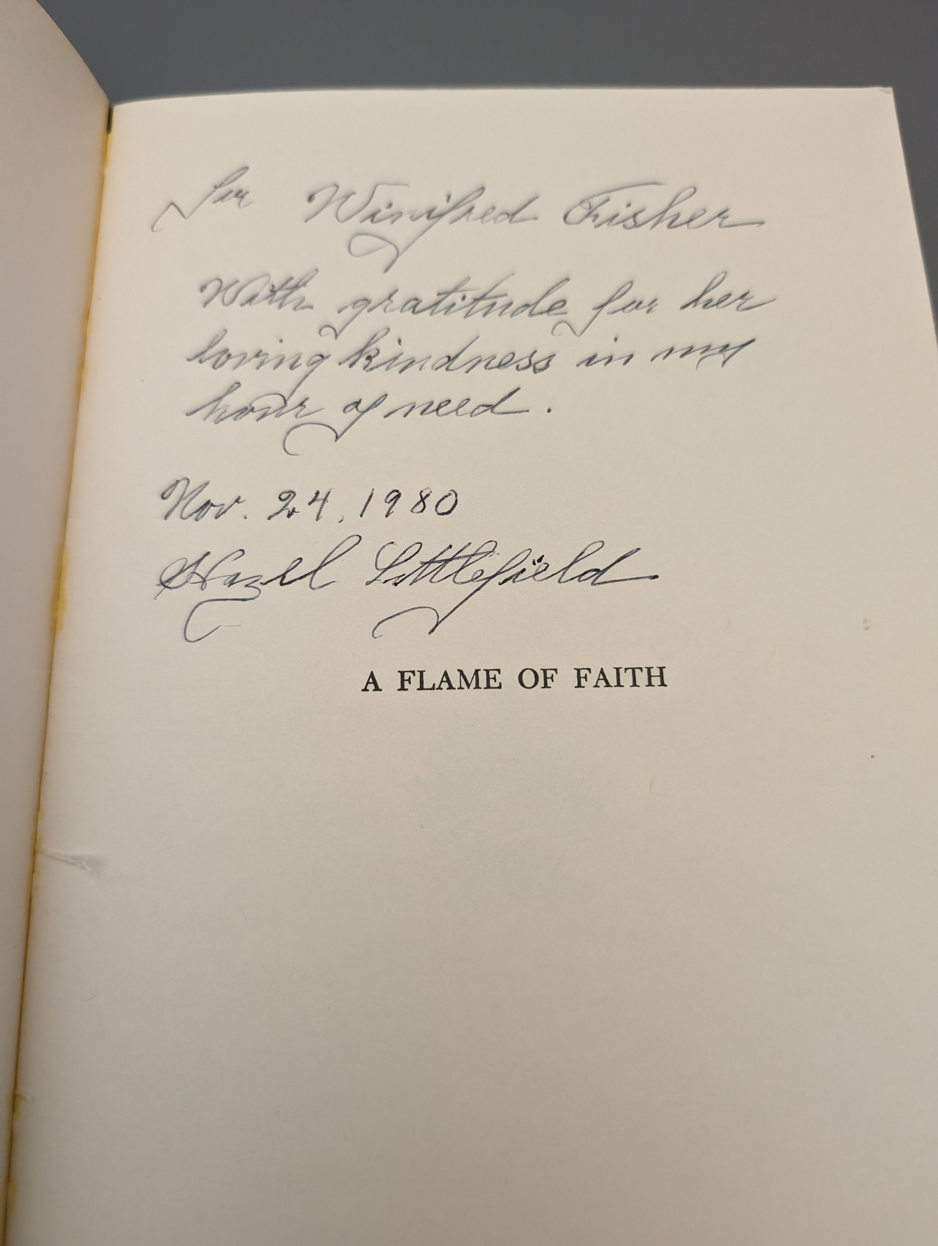 SIGNED! A Flame Of Faith Hazel Littlefield (1972) GREAT INSCRIPTION SEE PICS \