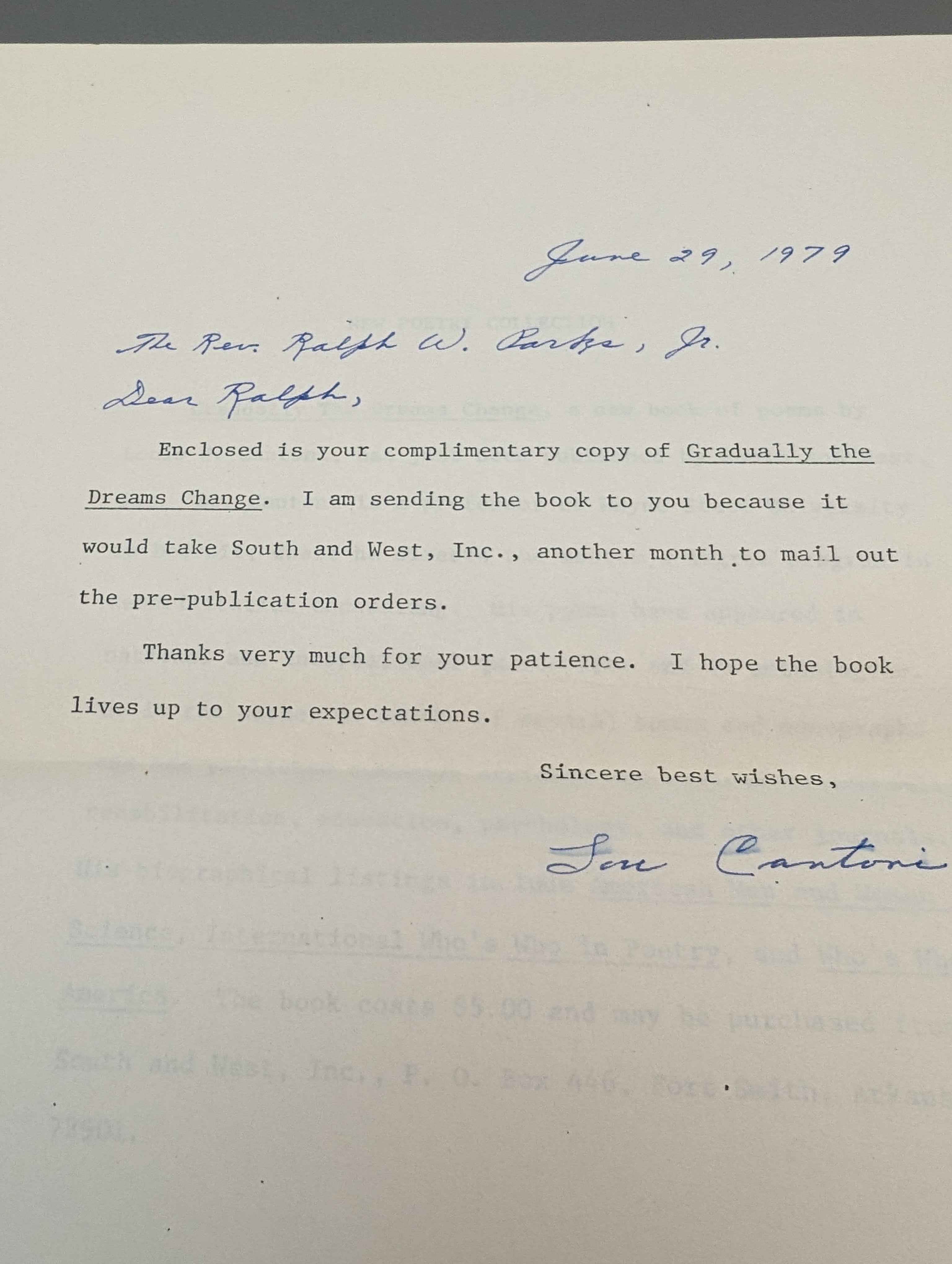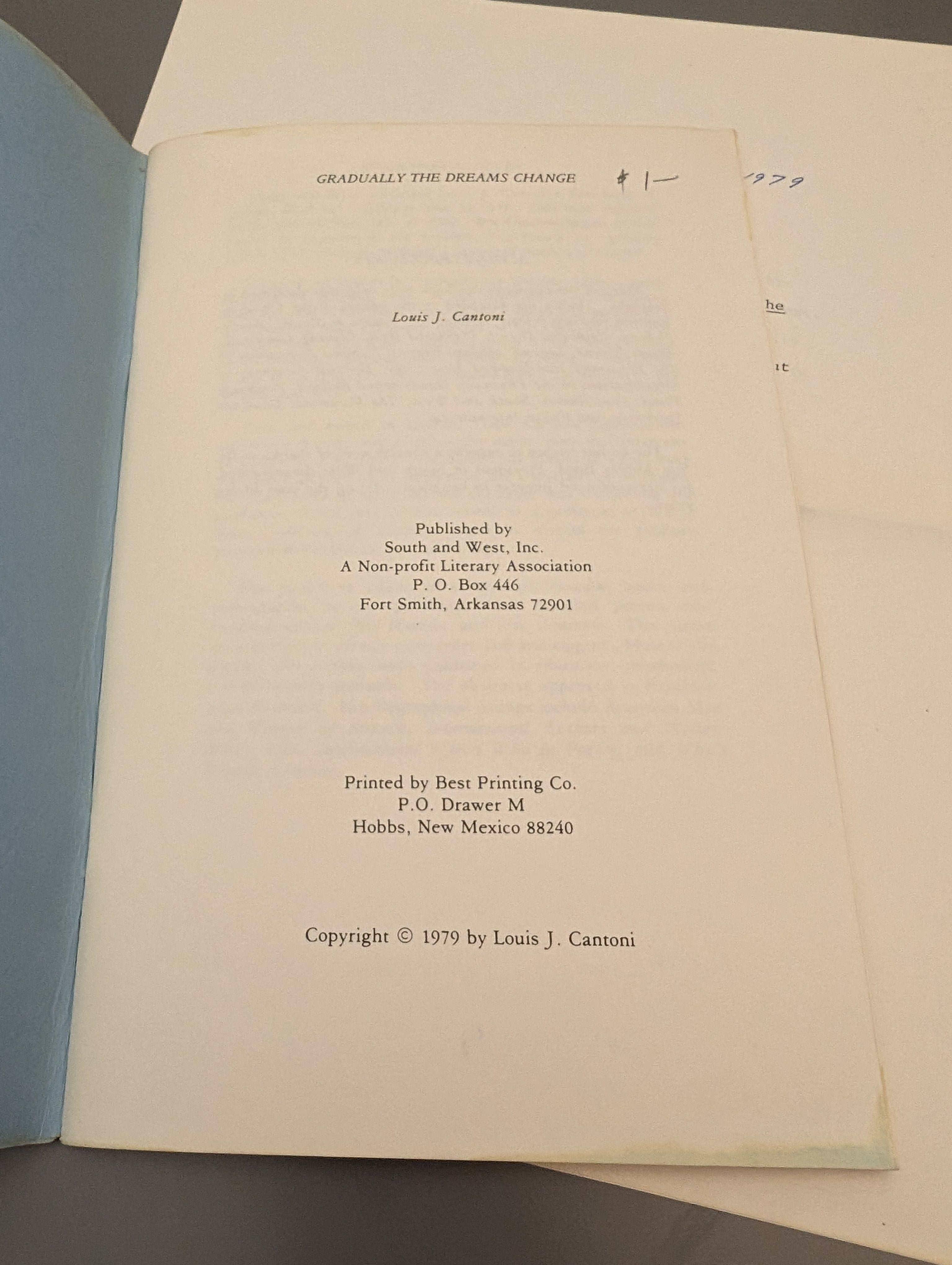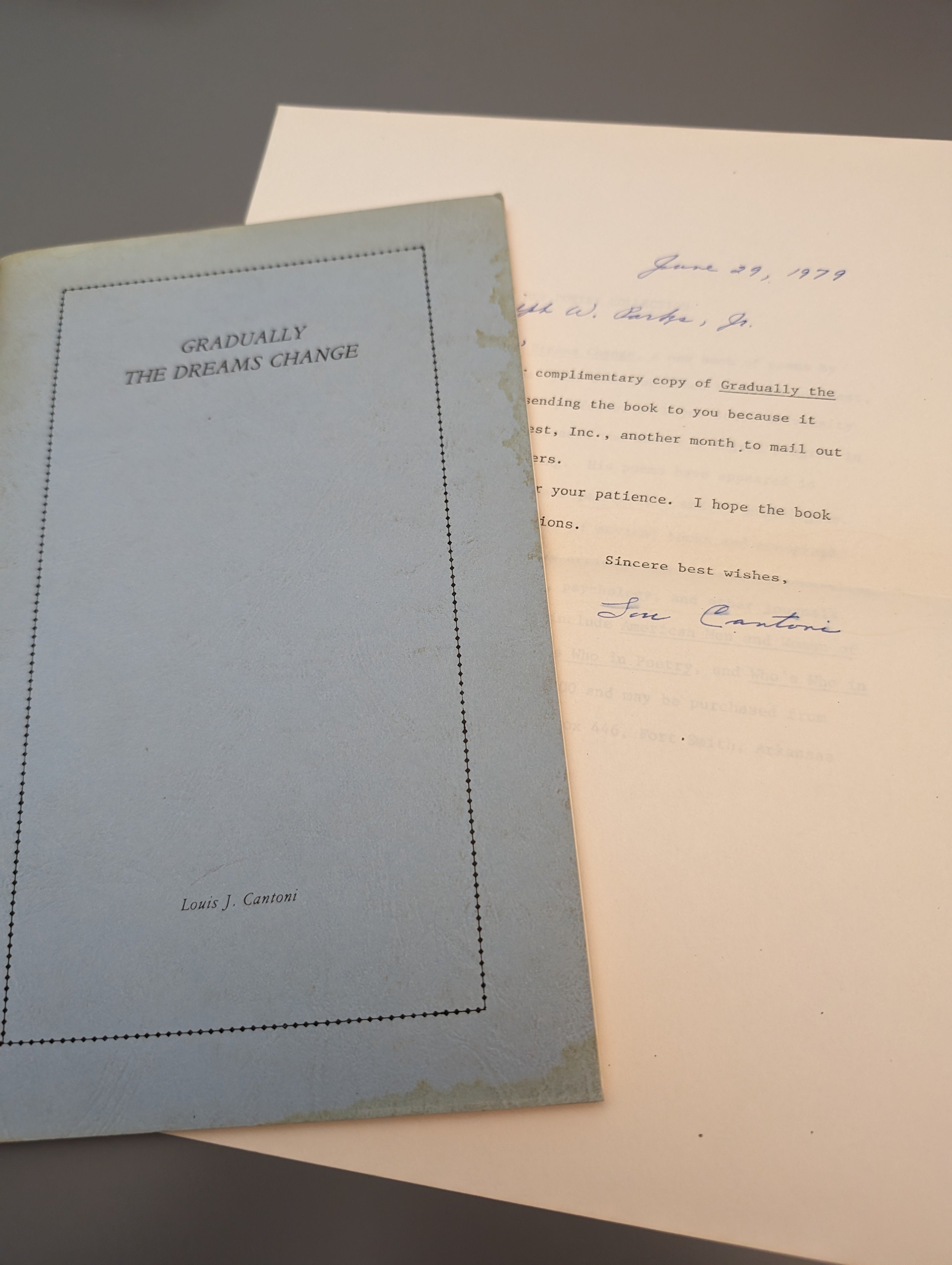SIGNED: Gradually the Dreams Change by Lous Cantoni (1979) SEE PICS is backordered and will ship as soon as it is back in stock.