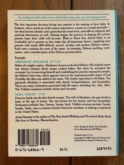 What to Name Your Jewish Baby by Anita Diamant (1989) is backordered and will ship as soon as it is back in stock.