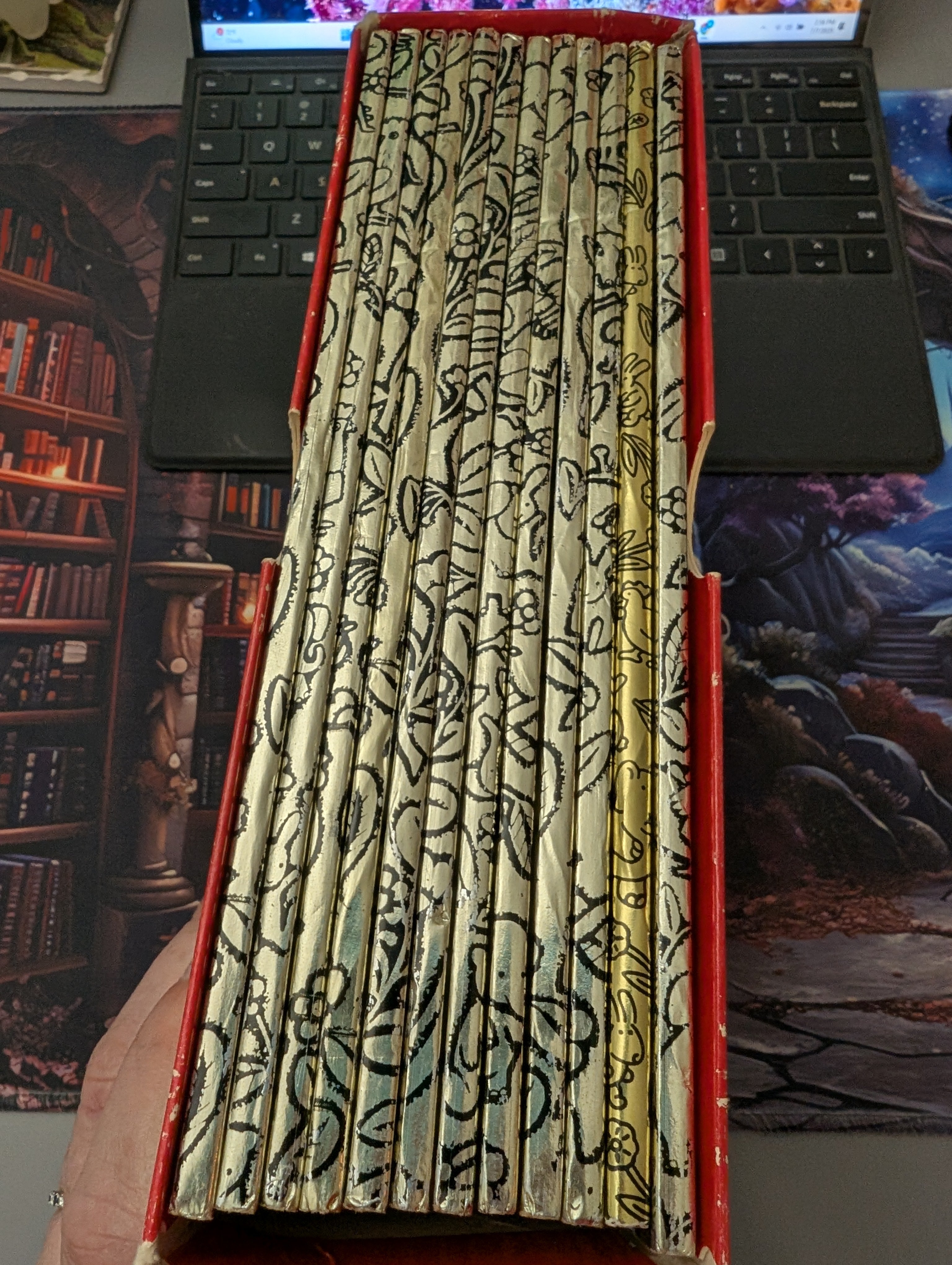 Slip case and 11 of the 12 books in Very Good condition. Missing "The Littlest Christmas Elf" but includes all others. All books in Very Good condition with minimal wear. Slip case is in Good condition with significant rubbing and edge wear. See pics.
