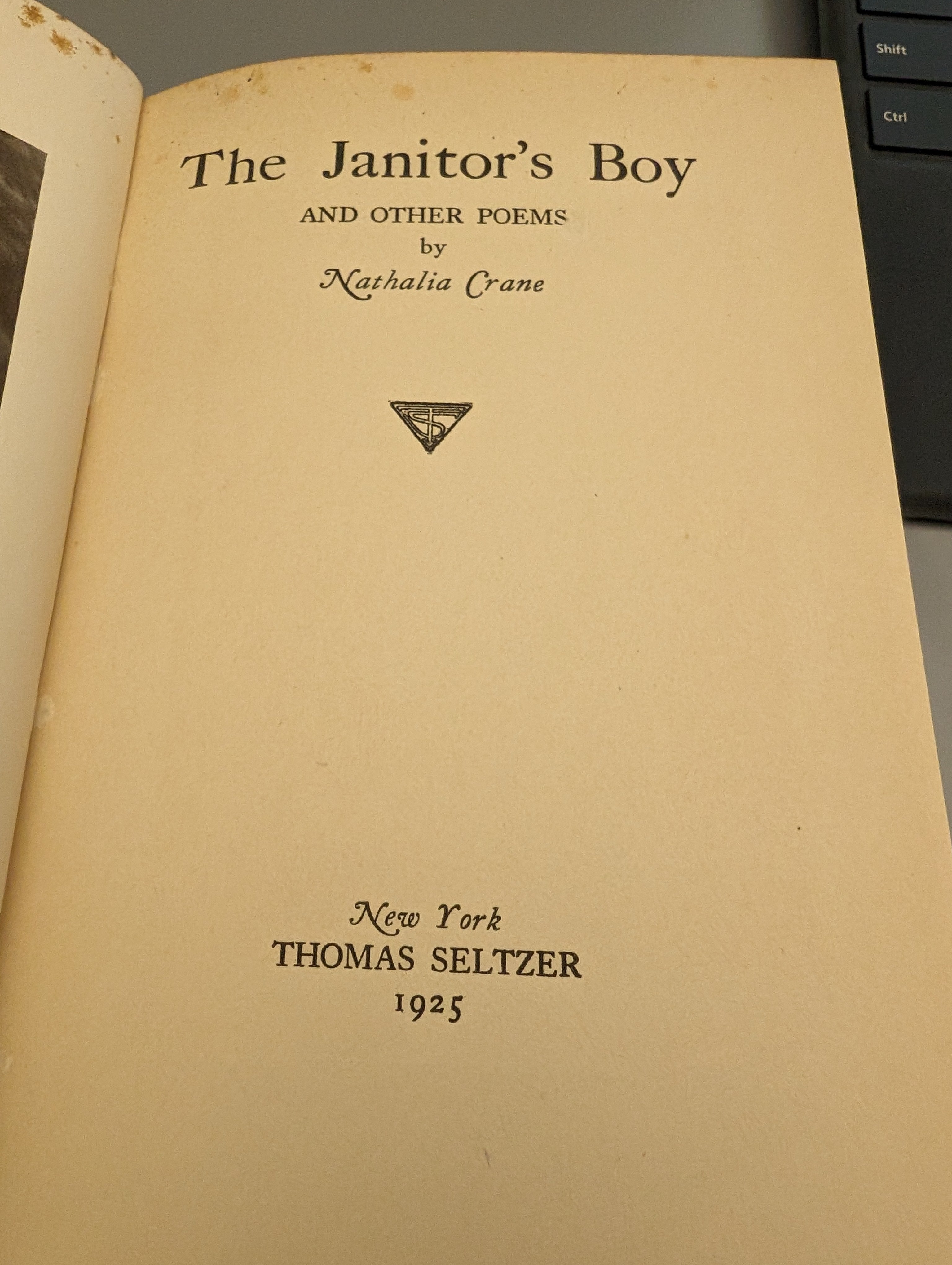 The Janitor's Boy and Other Poems by Nathalia Crane, 1925 5th Printing is backordered and will ship as soon as it is back in stock.