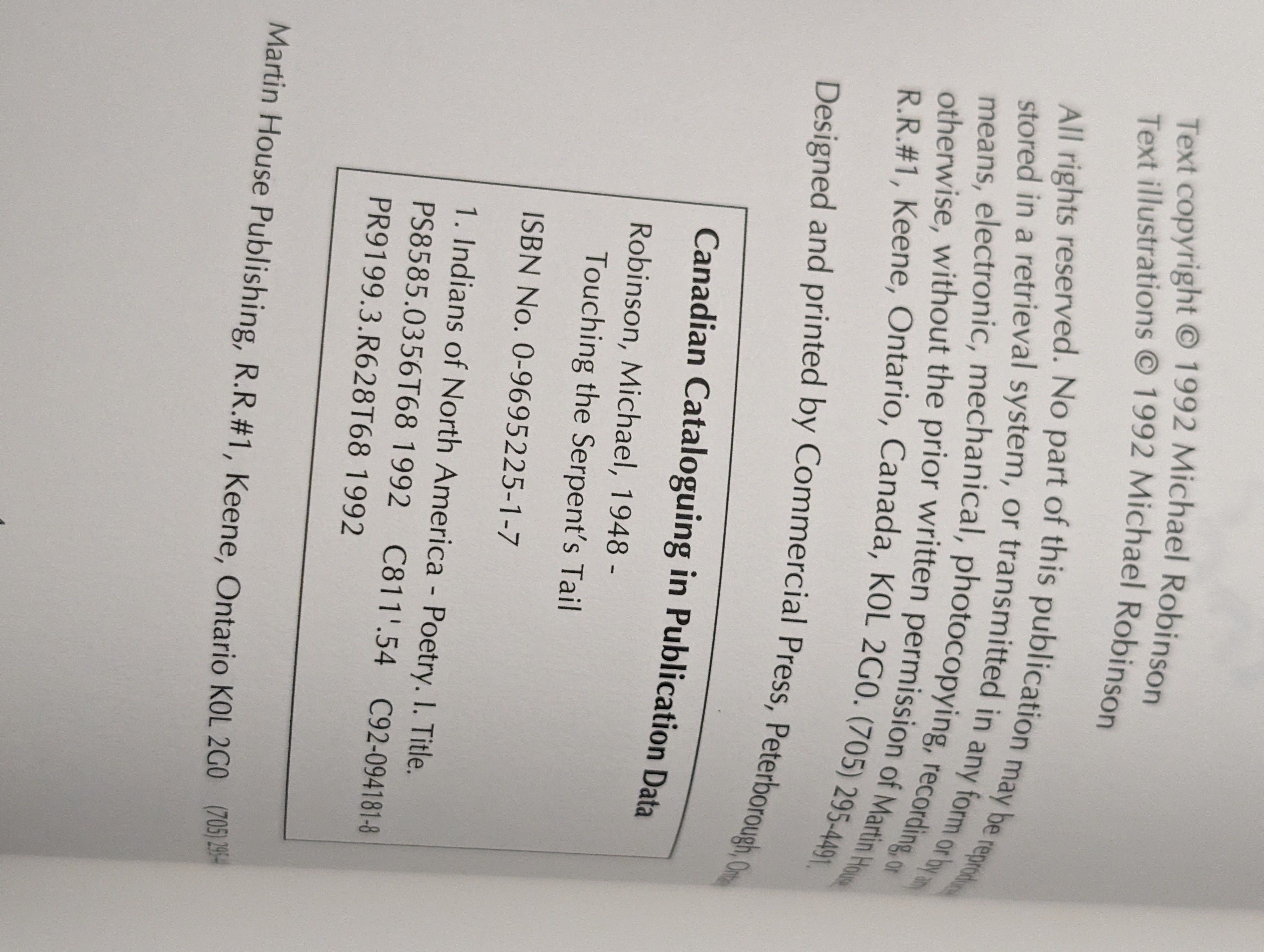 Touching the Serpent's Tail by Robinson, Michael (1992) Poetry VERY GOOD SEE PICS is backordered and will ship as soon as it is back in stock.