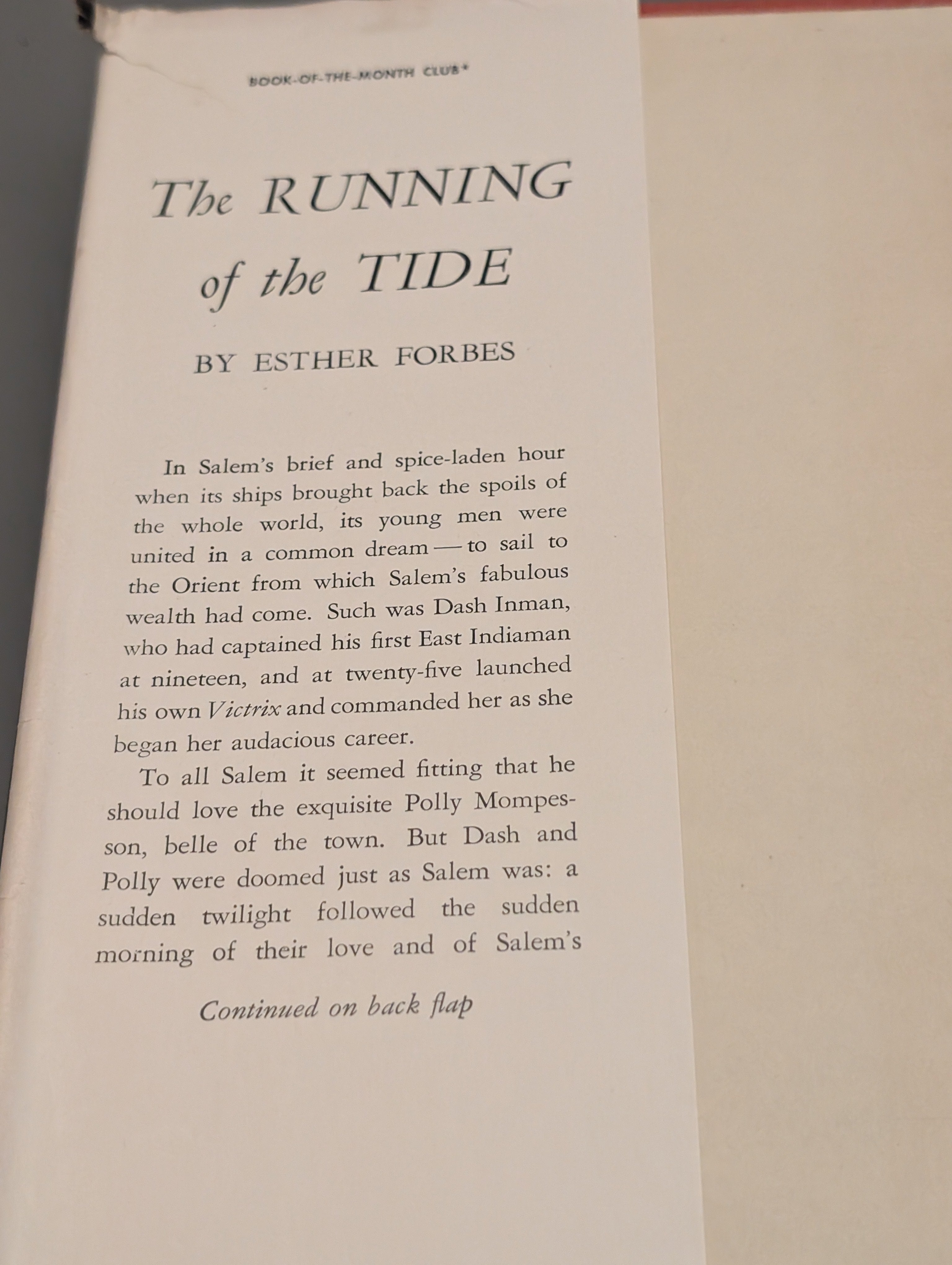 The Running of the Tide by Esther Forbes (1948) SEE PICS is backordered and will ship as soon as it is back in stock.
