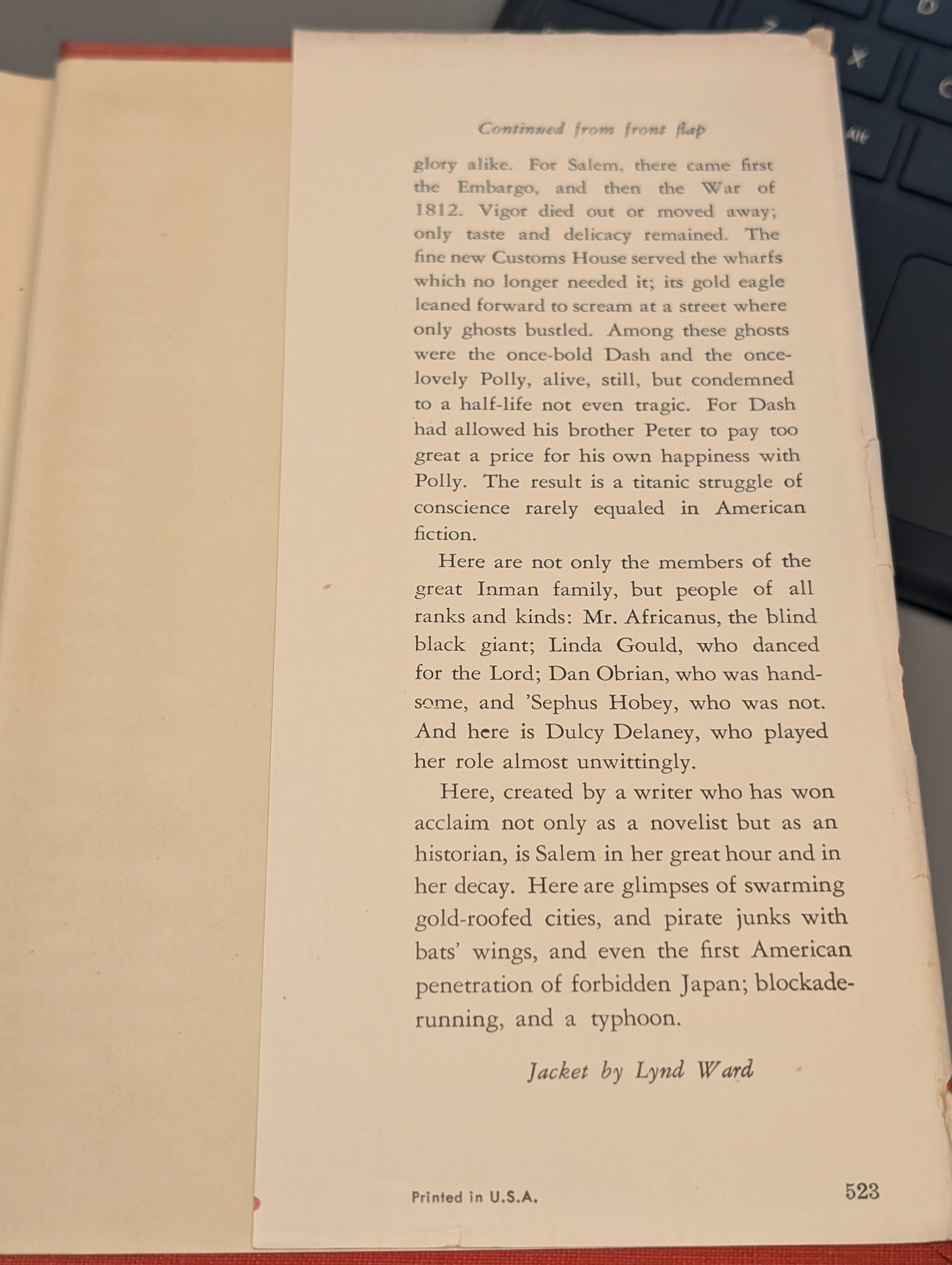 Dust jacket in Poor condition, missing entire back; front and both flaps are still included. Pages are clean and straight, lightly tanned. Book of the month club edition. See pics.