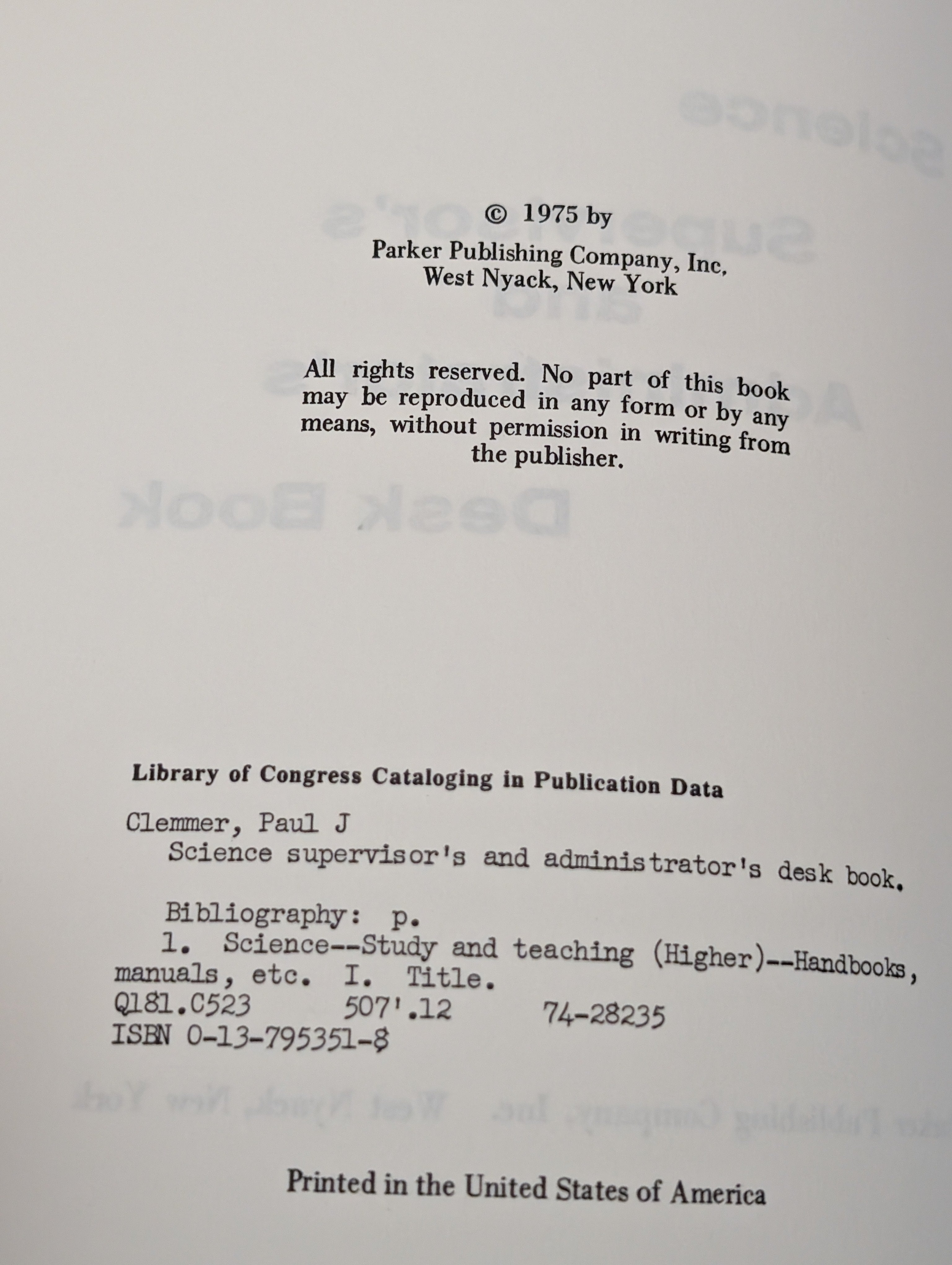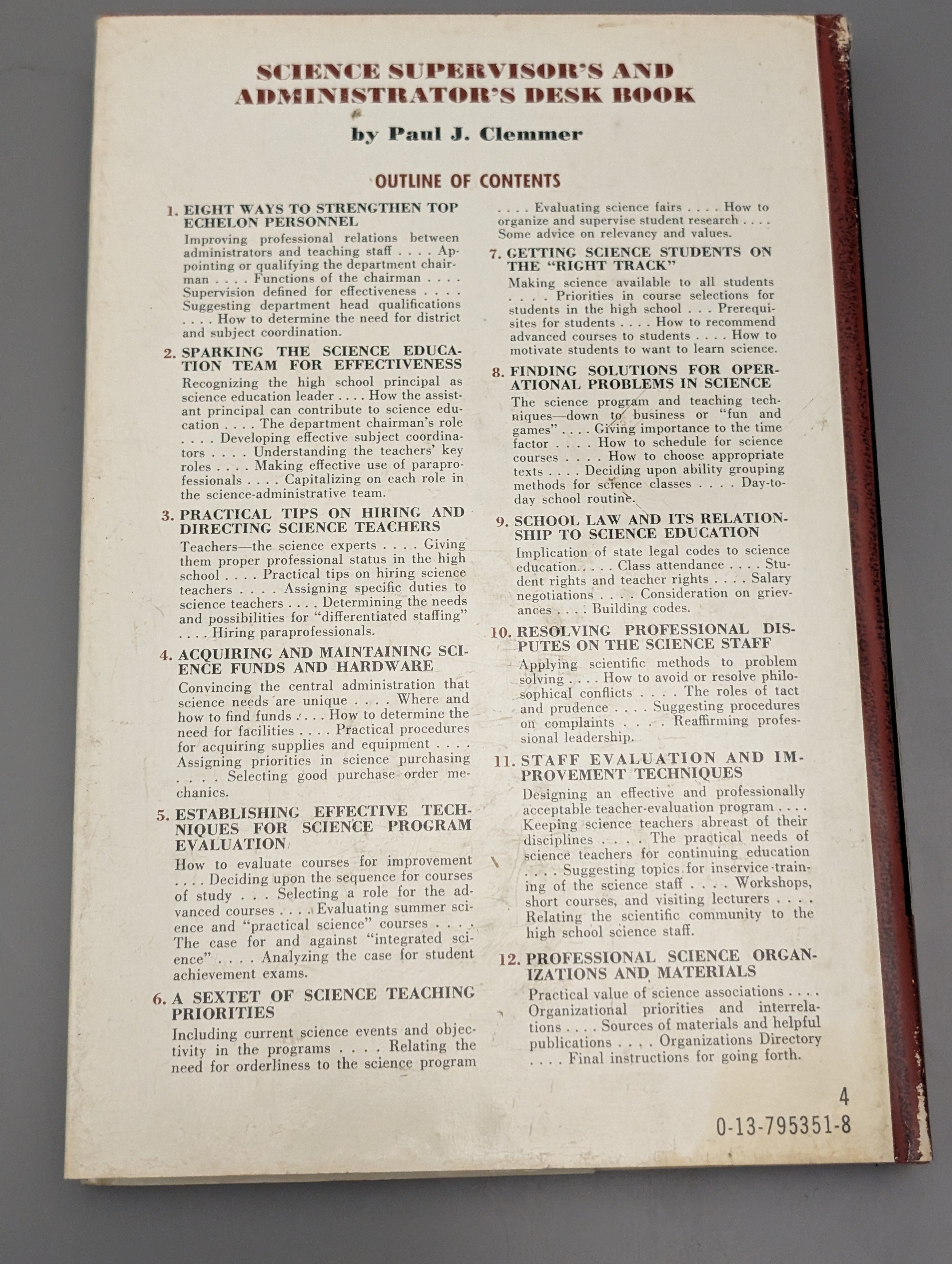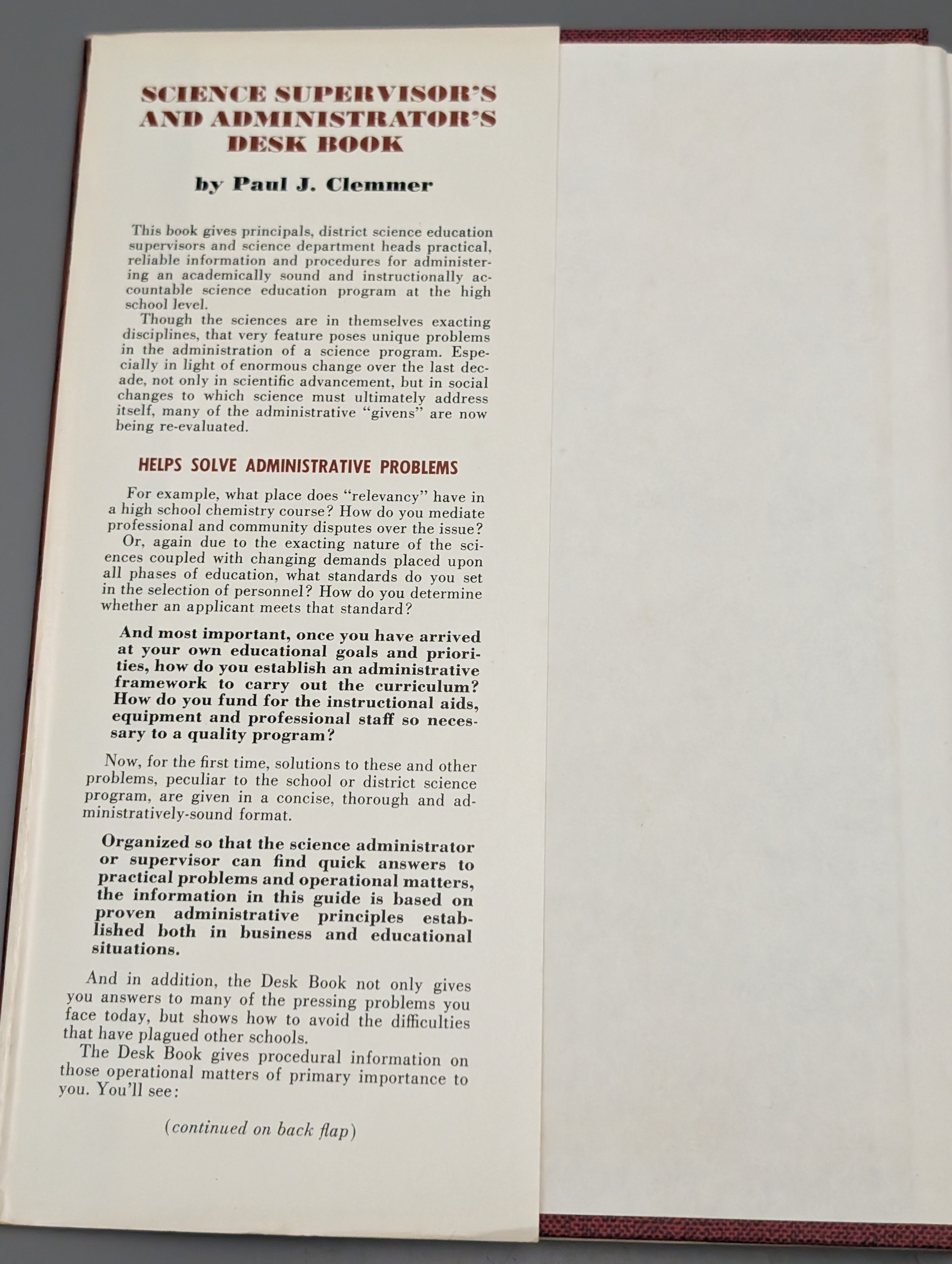 Science supervisor's and administrator's desk book by Paul J Clemmer (1975) is backordered and will ship as soon as it is back in stock.