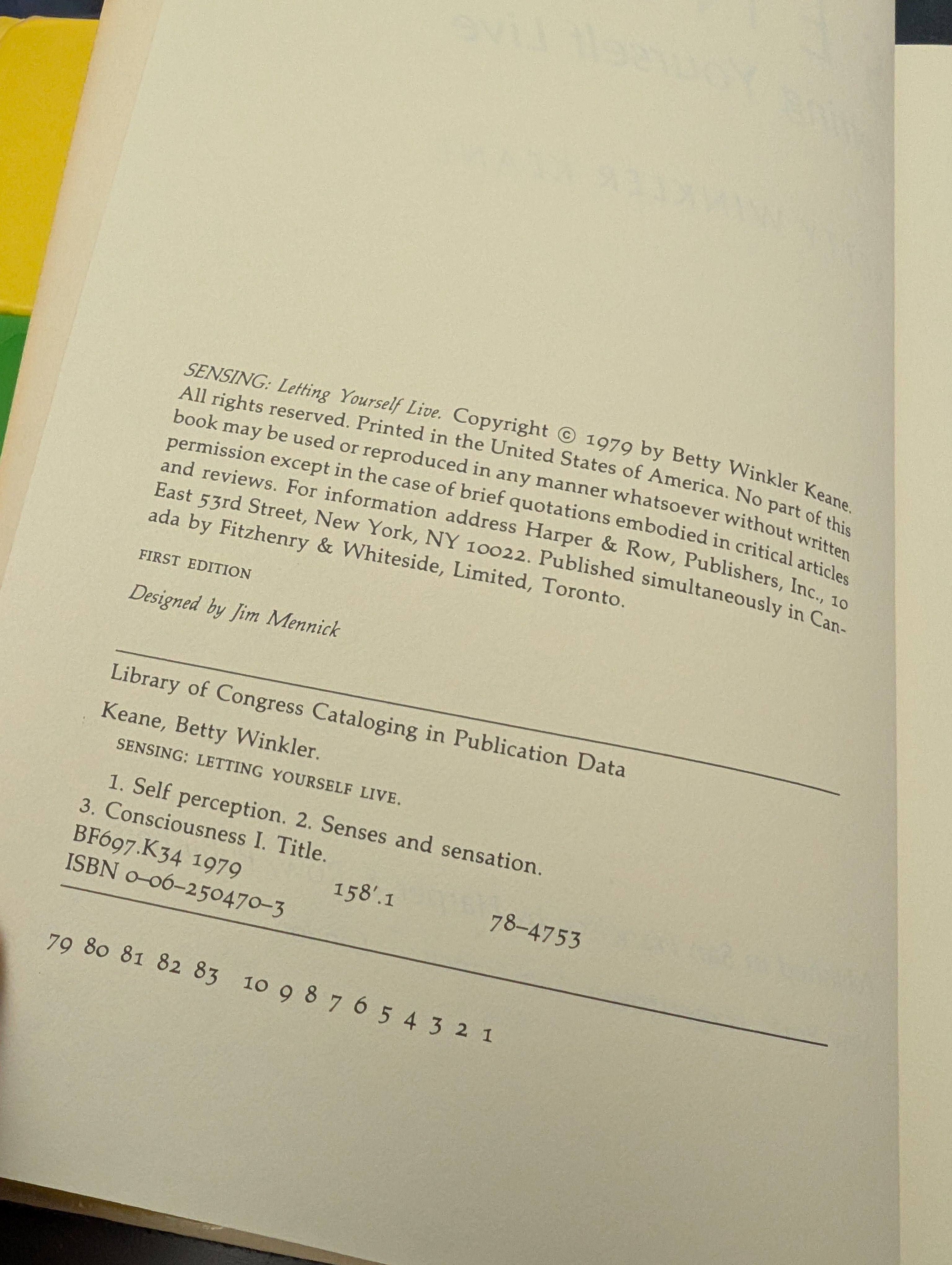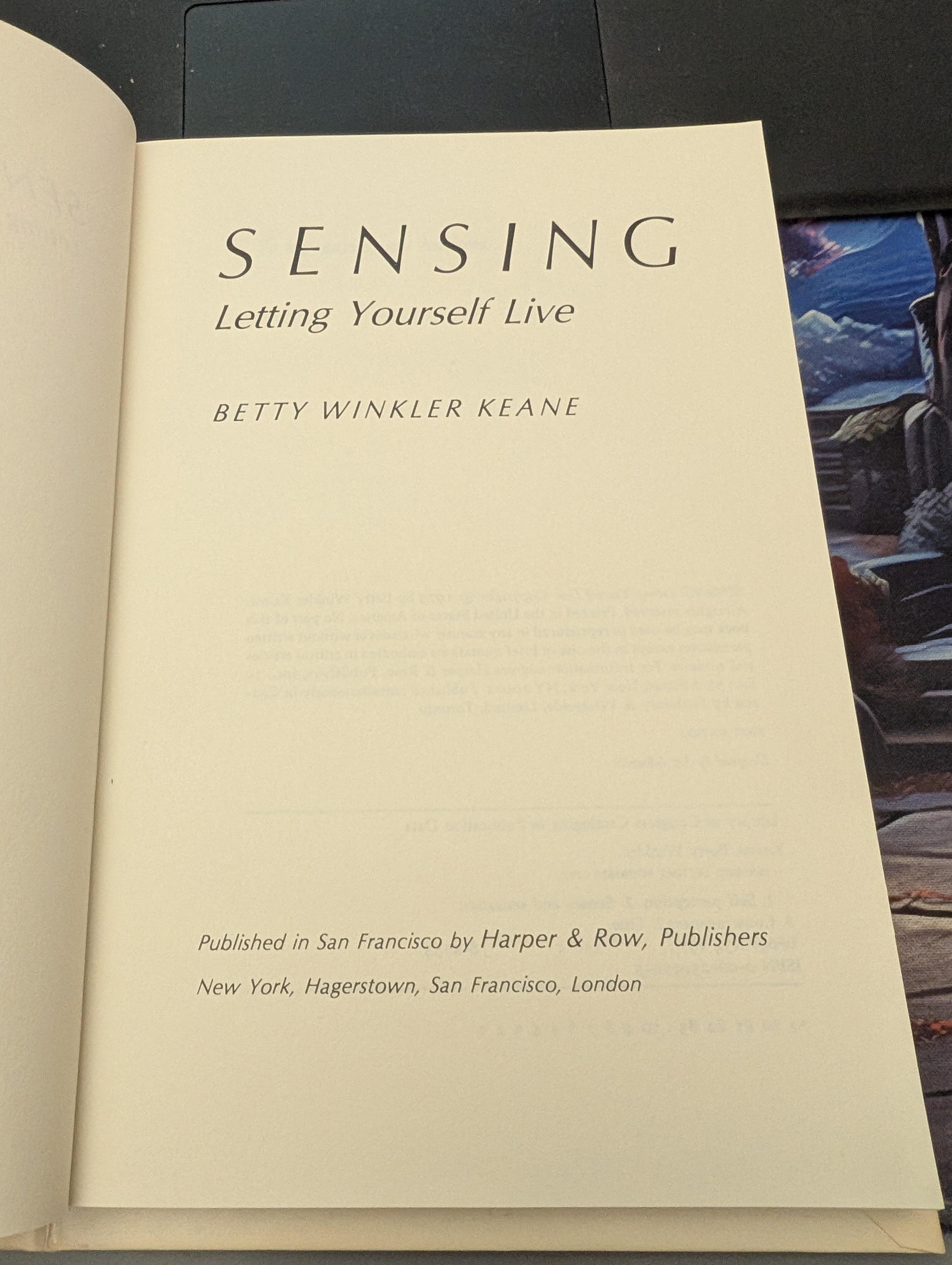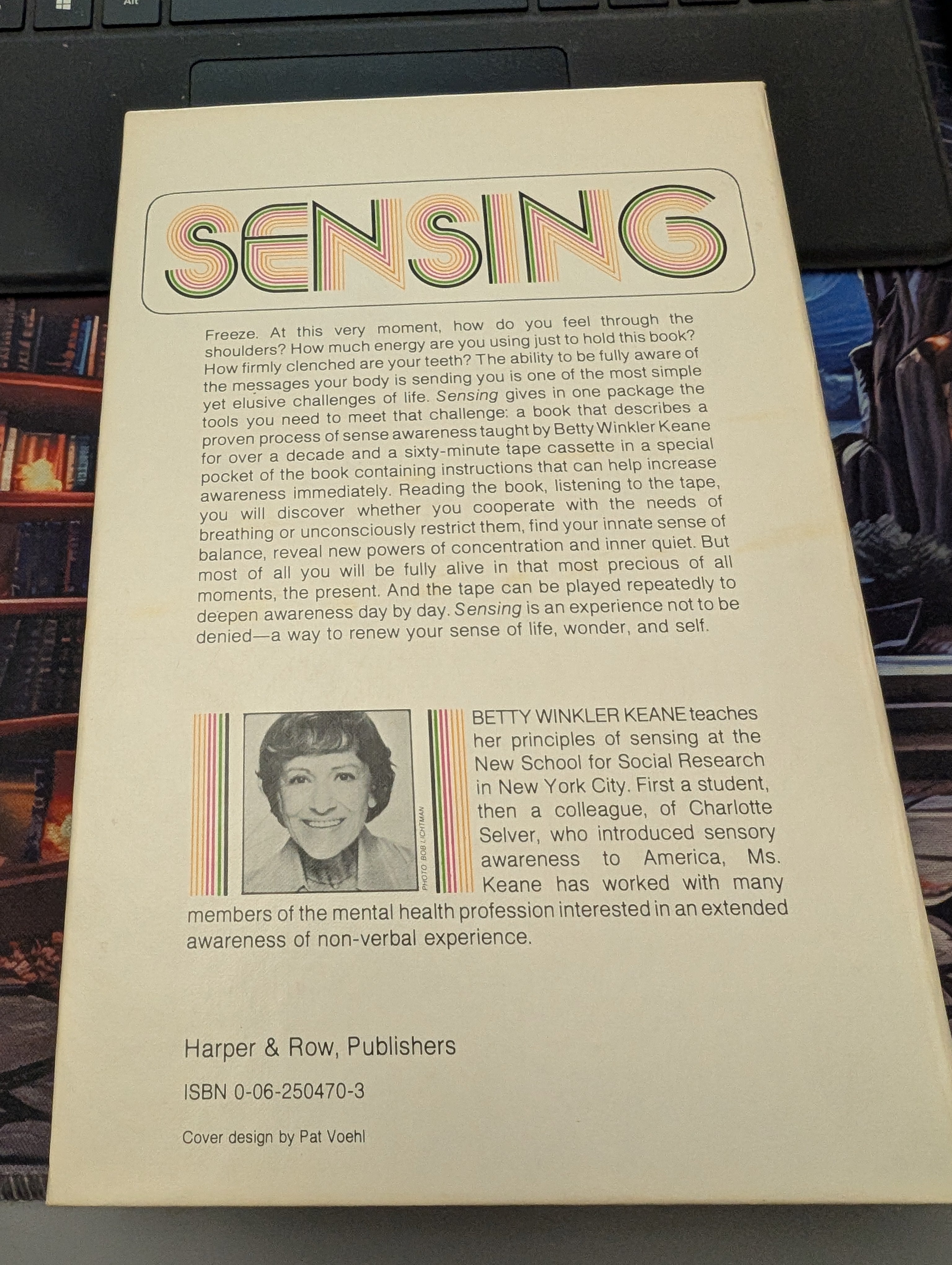 Freeze. At this very moment, how do you feel through the shoulders? How much energy are you using just to hold this book? How firmly clenched are your teeth? The ability to be fully aware of the messages your body is sending you is one of the most simple yet elusive challenges of life. SENSING gives in one package the tools you need to meet that challenge: a book that describes a proven process of sense awareness taught by Betty Winkler Keane for over a decade and a sixty minute tape cassette in a special pocket of the book containing instructions that can help increase awareness immediately. Reading the book, listening to the tape, you will discover whether you cooperate with the needs of breathing or unconsciously restrict them, find your innate sense of balance, reveal new powers of concentration and inner quiet. But most of all you will be fully alive in that most precious of all moments, the present. And the tape can be played repeatedly to deepen awareness day by day. SENSING is an experience not to be denied - a way to renew your sense of life, wonder, and self.