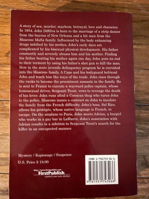 A story of sex, murder, mayhem, betrayal, love and character. In 1954, John DiSilva is born to the marriage of a strip dancer from the bayous of New Orleans and a hit man from the Mascone Mafia family. Influenced by the body enhancing drugs imbibed by his mother, Johns early days are complicated by his bisexual physical development. His father constantly and severely abuses him and his mother. Finding his father beating his mother again one day, John puts an end to their torment by using his fathers shot gun to kill the man. Now in the state juvenile delinquency program he is recruited into the Mascone family. A Capo and his bodyguard befriend John and teach him the ways of the trade. John rises through the ranks to become the preeminent assassin in the family. He is sent to France to execute a wayward police captain, whose homosexual driver, Sergeant Trout, vows to revenge the death of his lover. John runs afoul a Corsican thug who turns John to the police. Mascone issues a contract on John to insulate the family from the French difficulty. Johns boss, Sal Rico, allows his protégée, whose native language is French, to escape. On the airplane to Paris, John meets Adrian, a bargirl who works in a gay bar in LaHarve. John s association with Adrian results in a solution to Sergeant Trouts search for the killer in an unexpected manner.