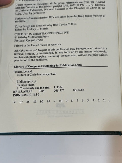 Culture in Christian Perspective: A Door to Understanding and Enjoying the Arts (Critical Concern Book) by Leland Ryken (1986)