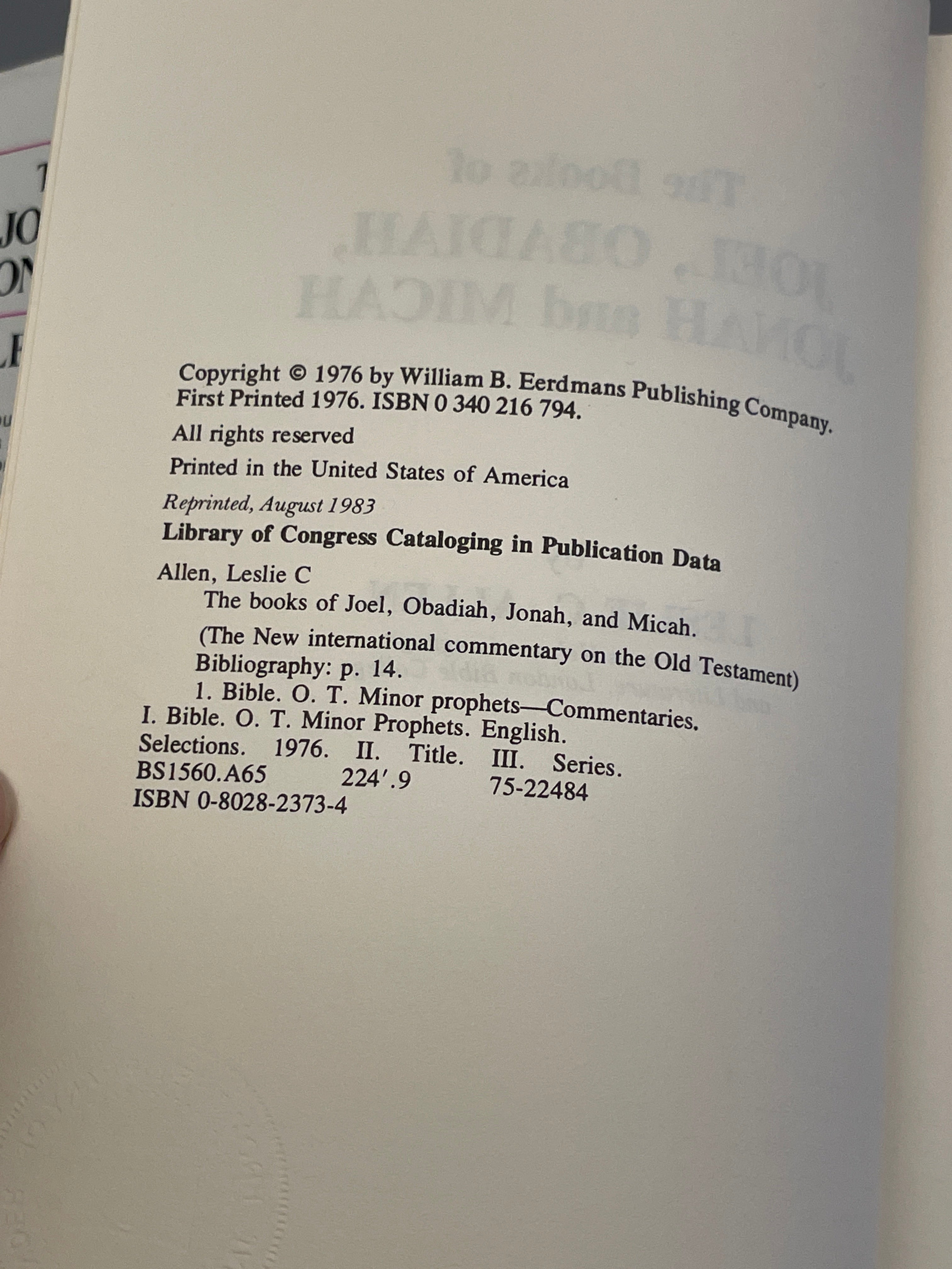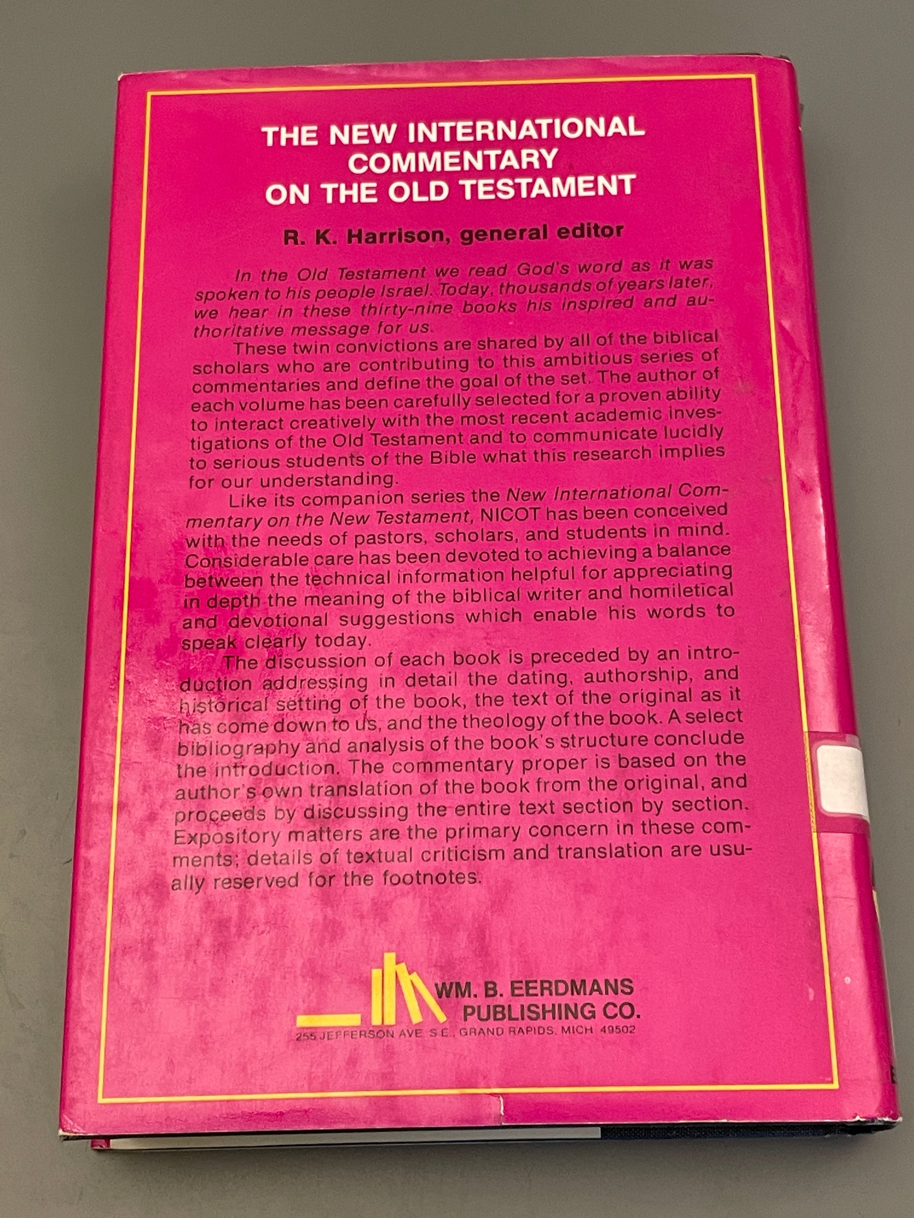 "The discussion of each book in this series is proceded by an introduction, addressing in detail the dating, authorship, the historical setting of the book, the text of the original as it has come down to us, the theology of the book, a select bibliography, and an analysis of the book"