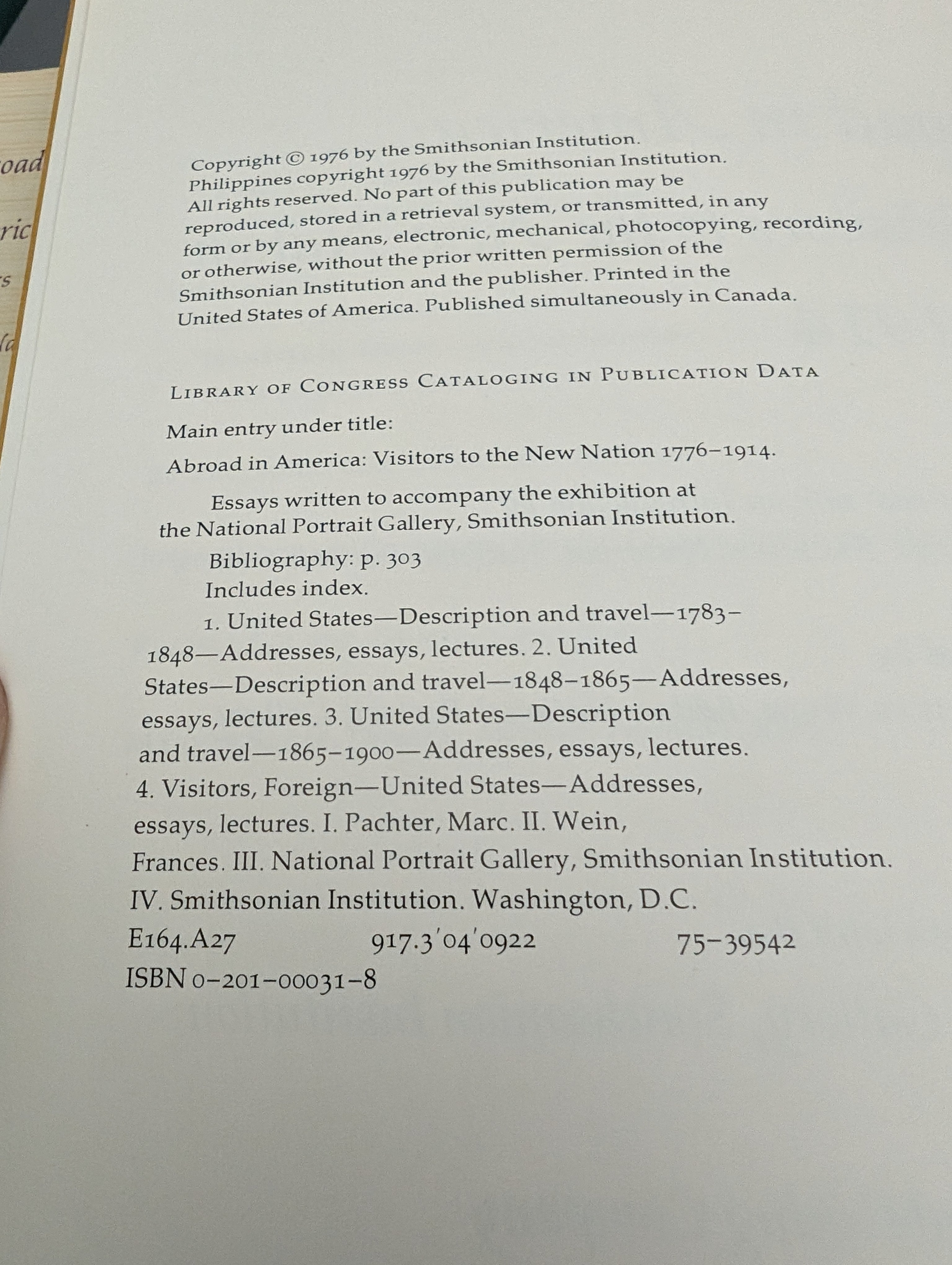Abroad in America : Visitors to the New Nation, 1776-1914 by Addison Wesley, 1976