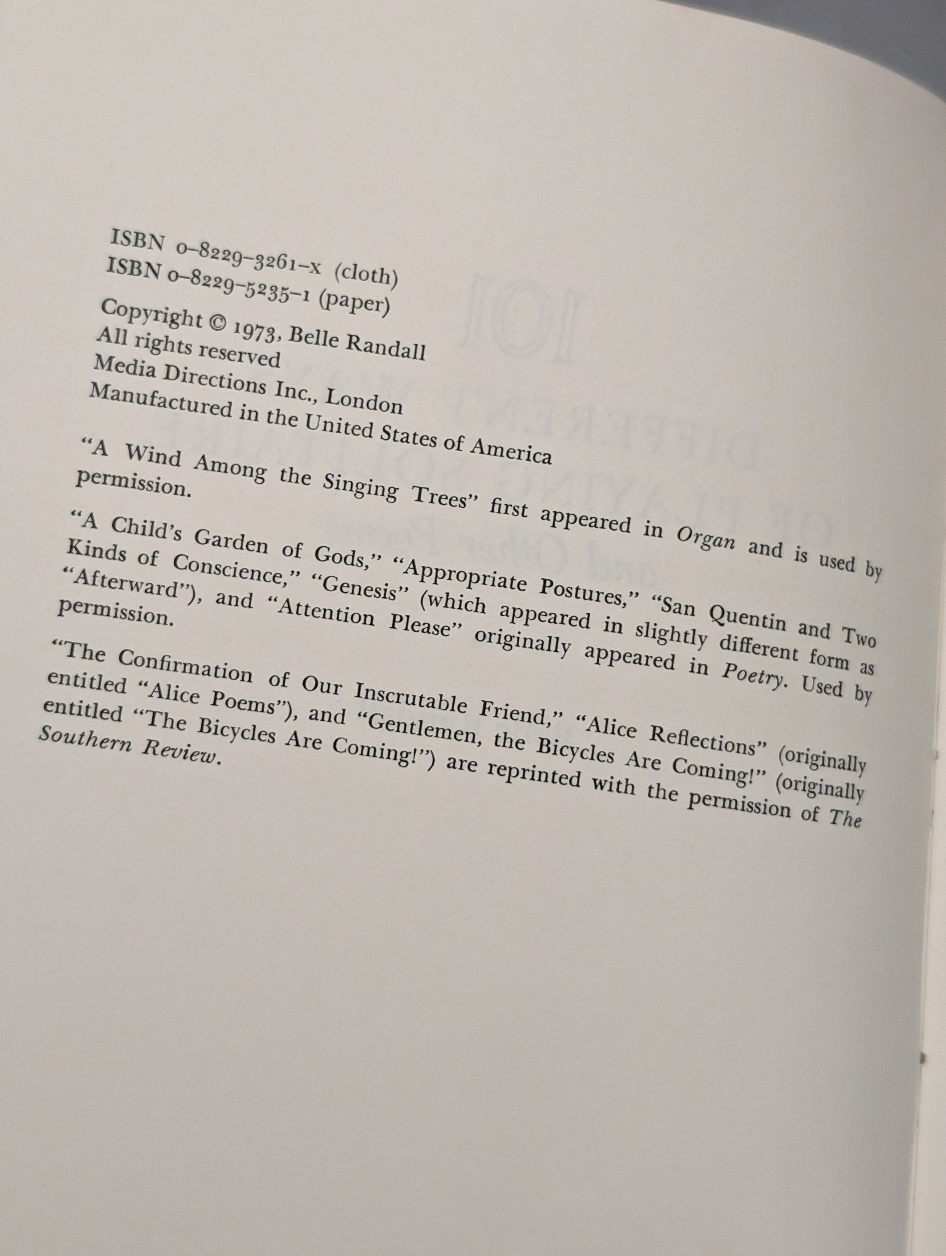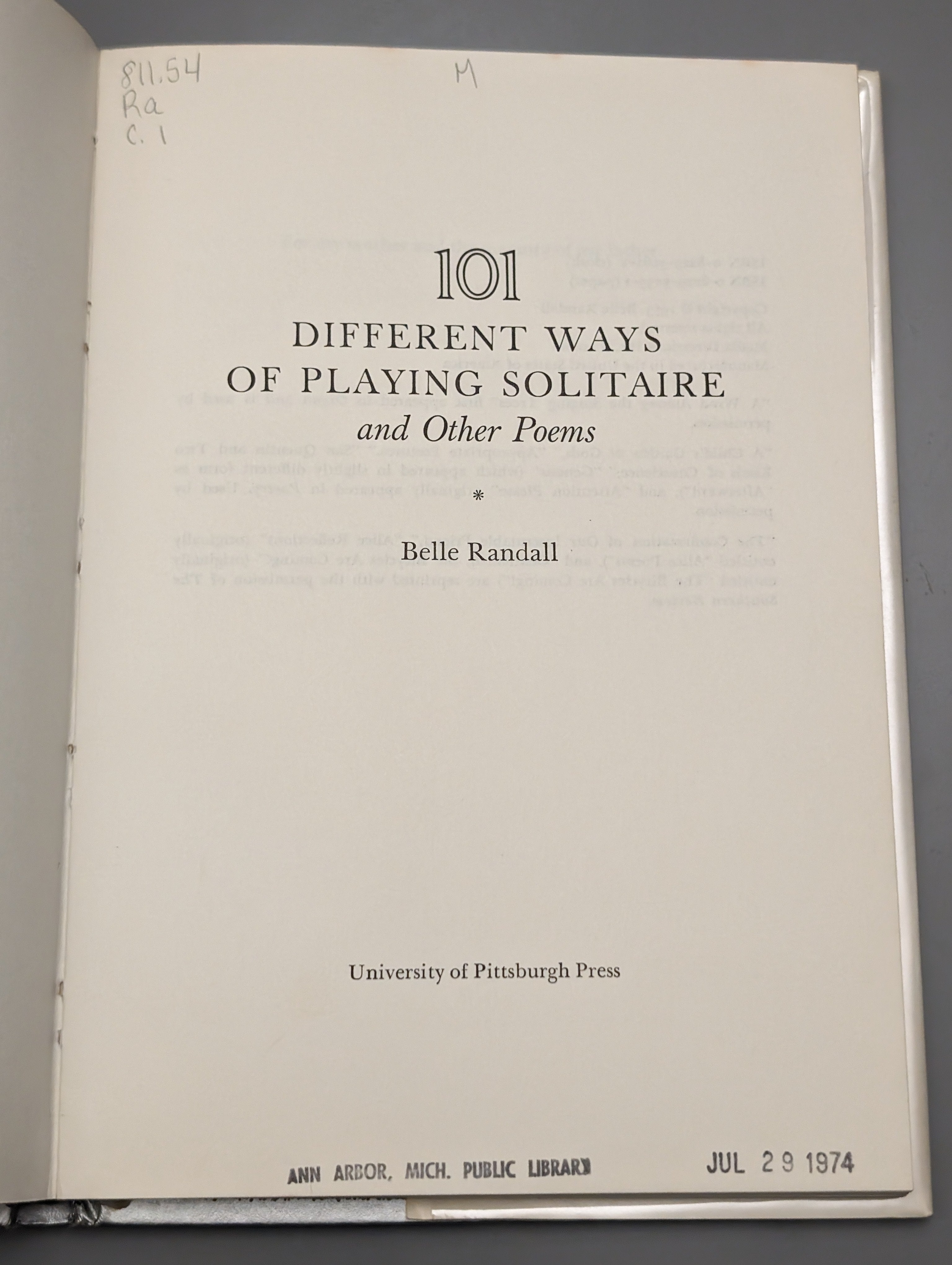 Belle Randall / 101 Different Ways of Playing Solitaire and Other Poems 1973 EX-LIBRARY is backordered and will ship as soon as it is back in stock.
