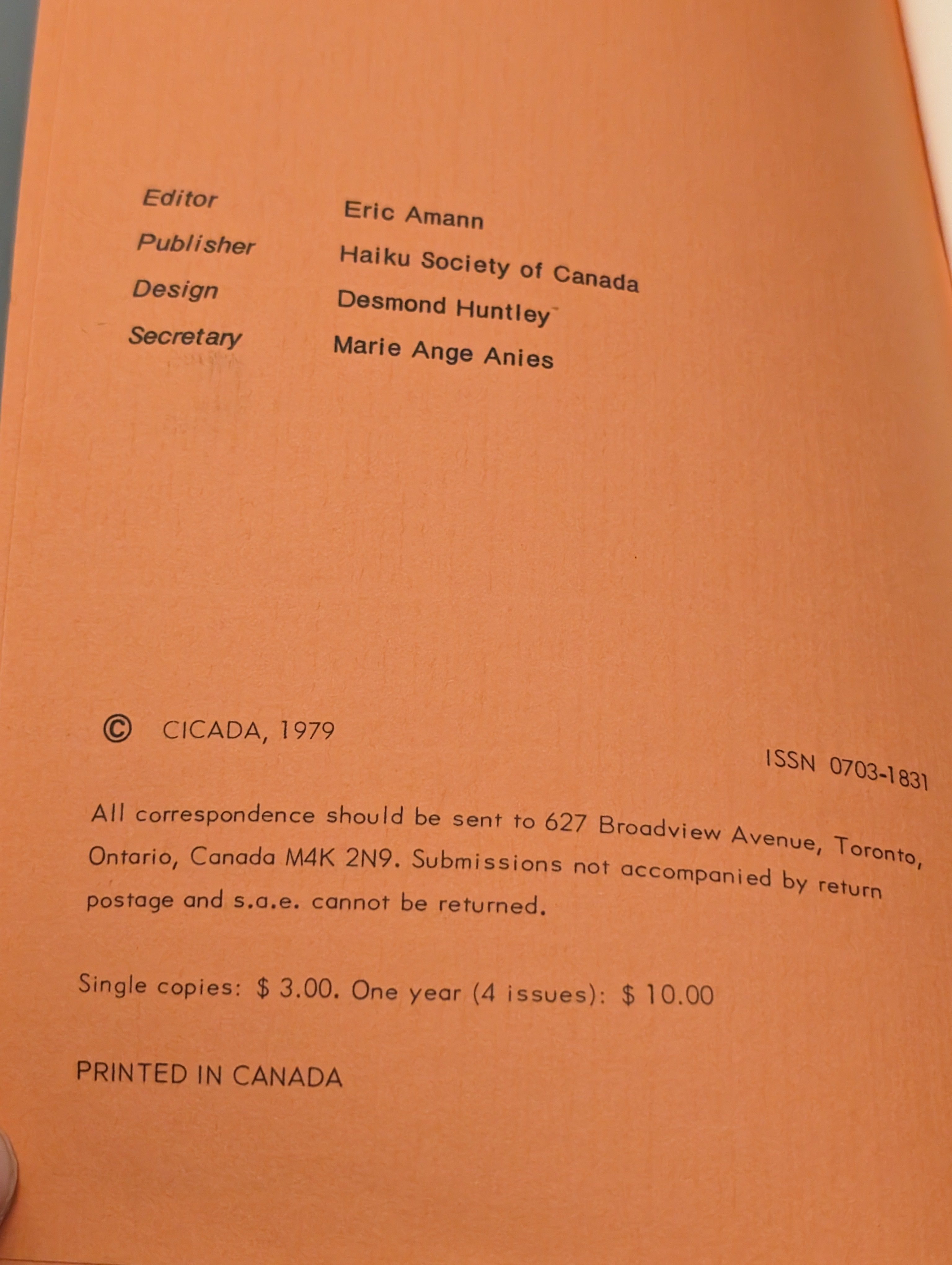 Cicada Volume 3, Number 3, Eric Armann Haiku Society of Canada 1979 SCARCE SEE PICS is backordered and will ship as soon as it is back in stock.