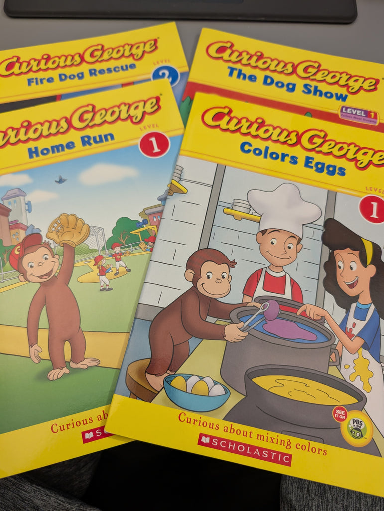 Curious George Early Readers LOT OF 4: Colors Eggs, Home Run, Dog Show, Fire Dog Rescue is backordered and will ship as soon as it is back in stock.