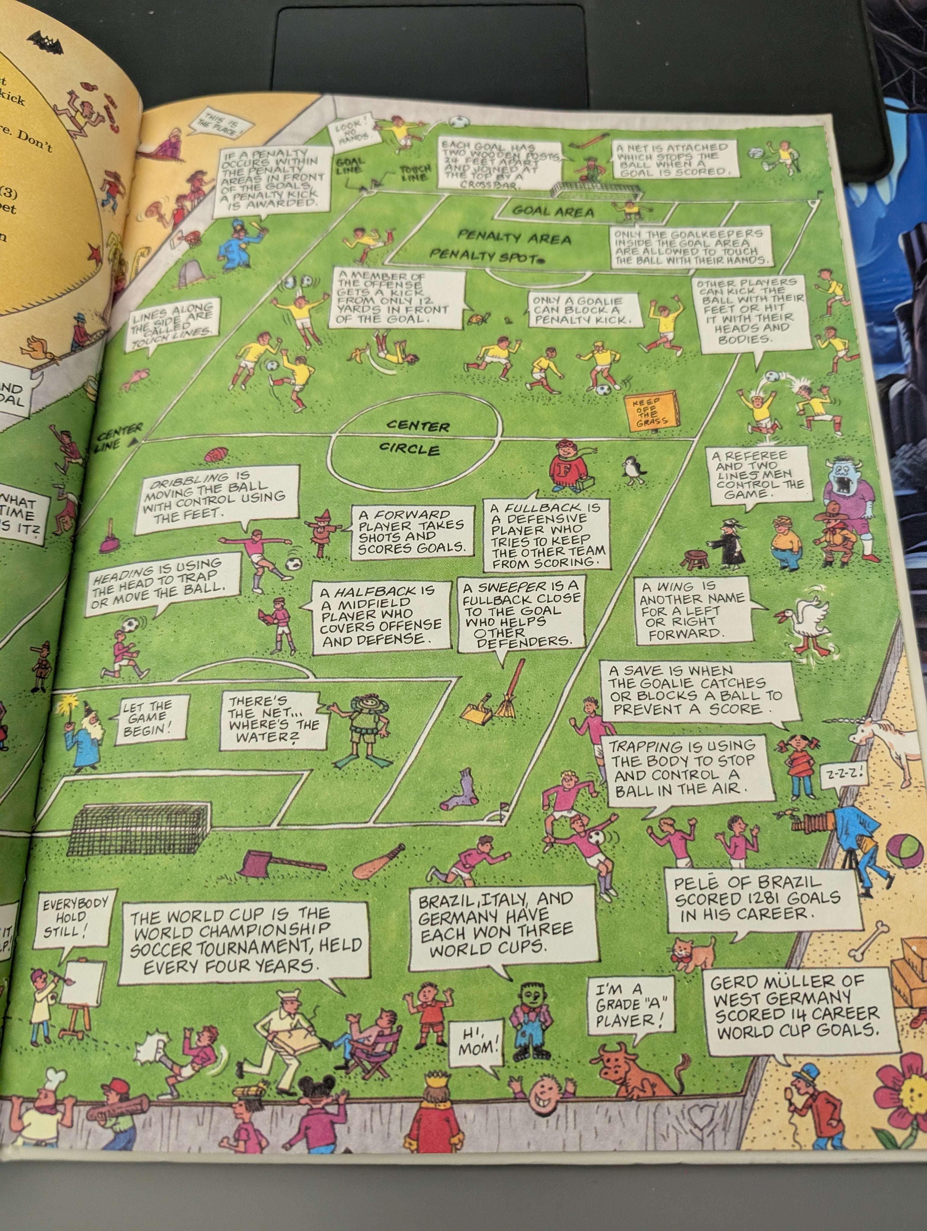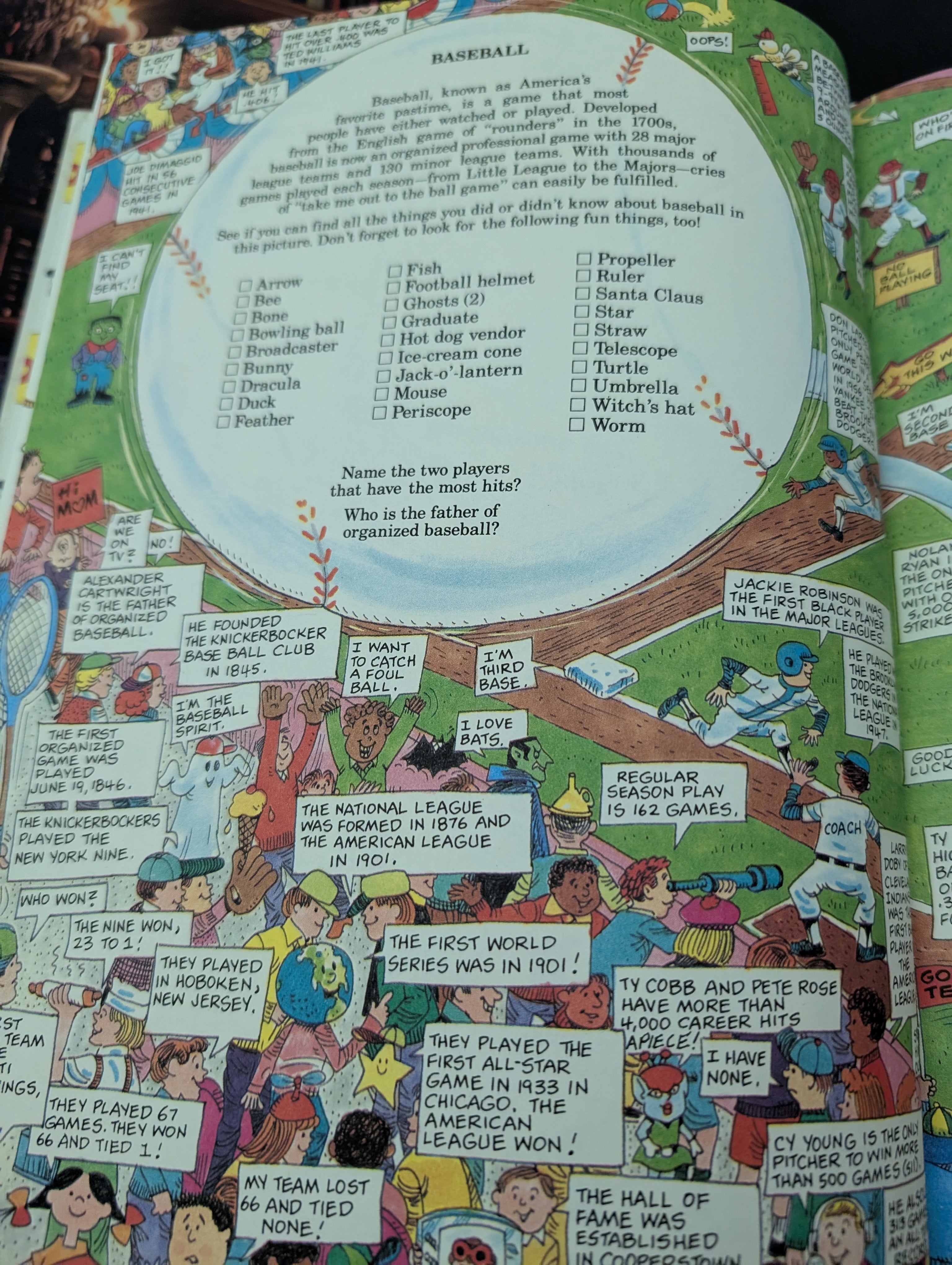 Young readers can learn about soccer, swimming, basketball, gymnastics, baseball, bowling, football, ice hockey, tennis, the martial arts, track and field, and volleyball while searching for the people and objects hidden in the illustrations