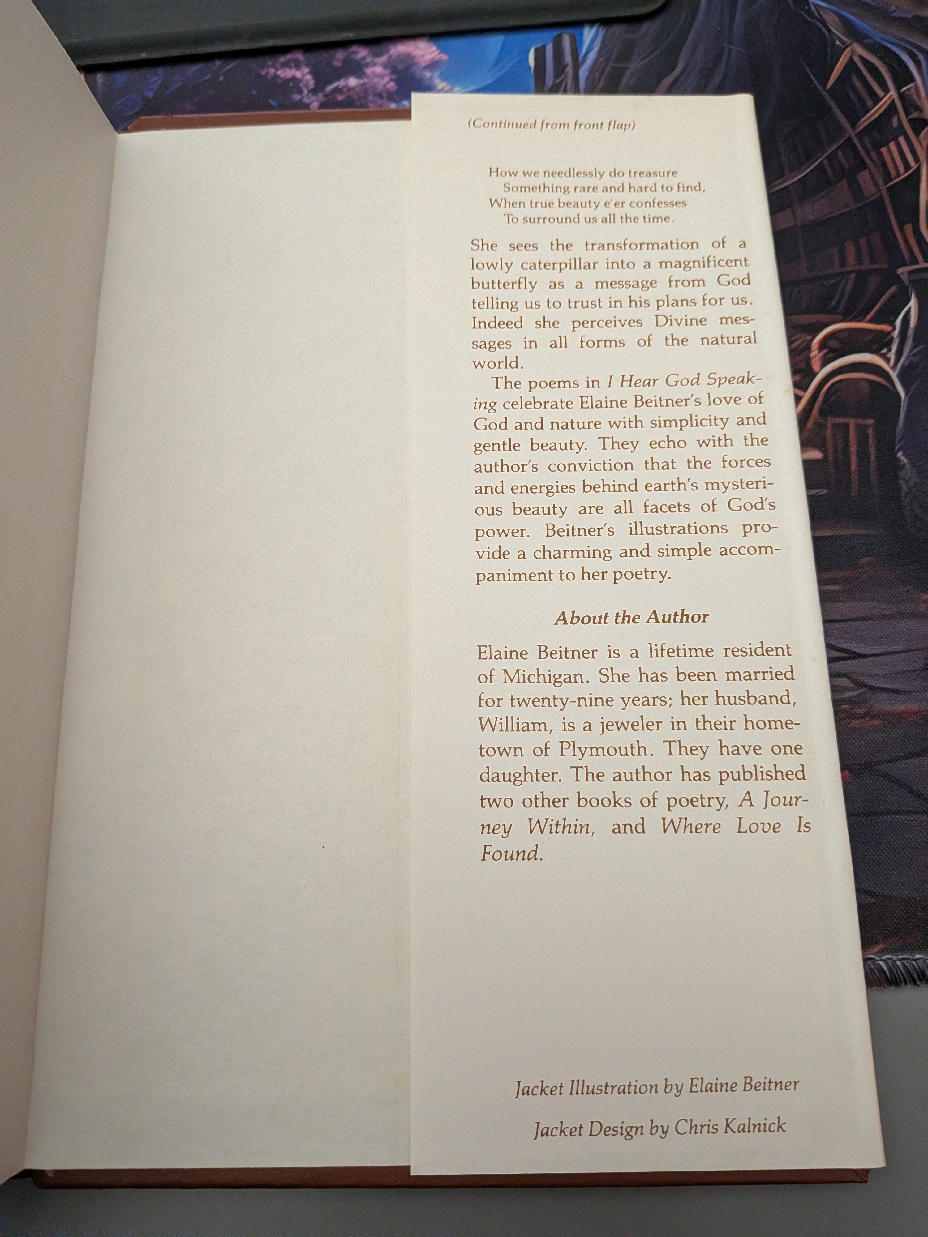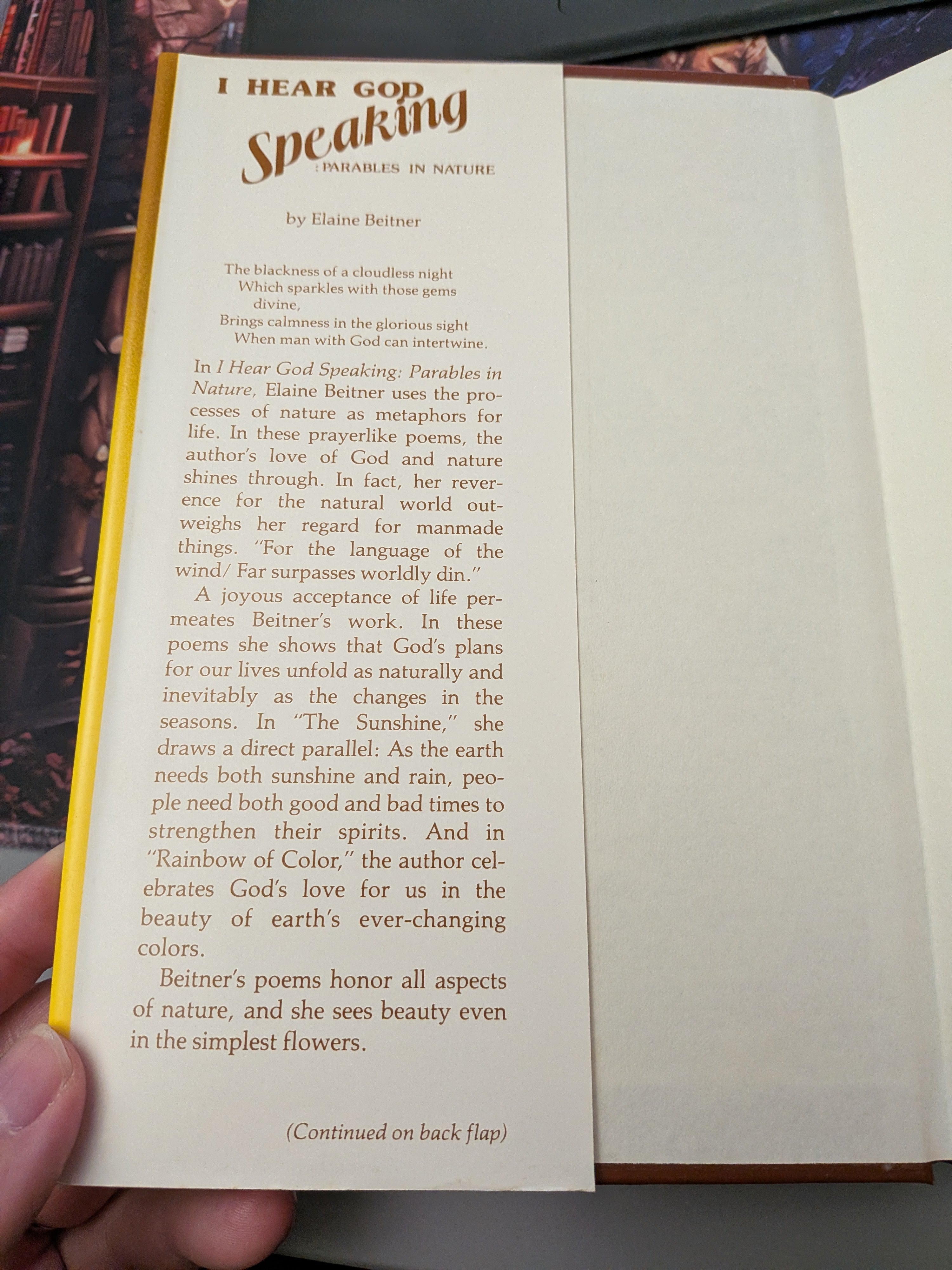I Hear God Speaking: Parables in Nature by Elaine Beitner (1984) HCDJ VERY GOOD Rare is backordered and will ship as soon as it is back in stock.