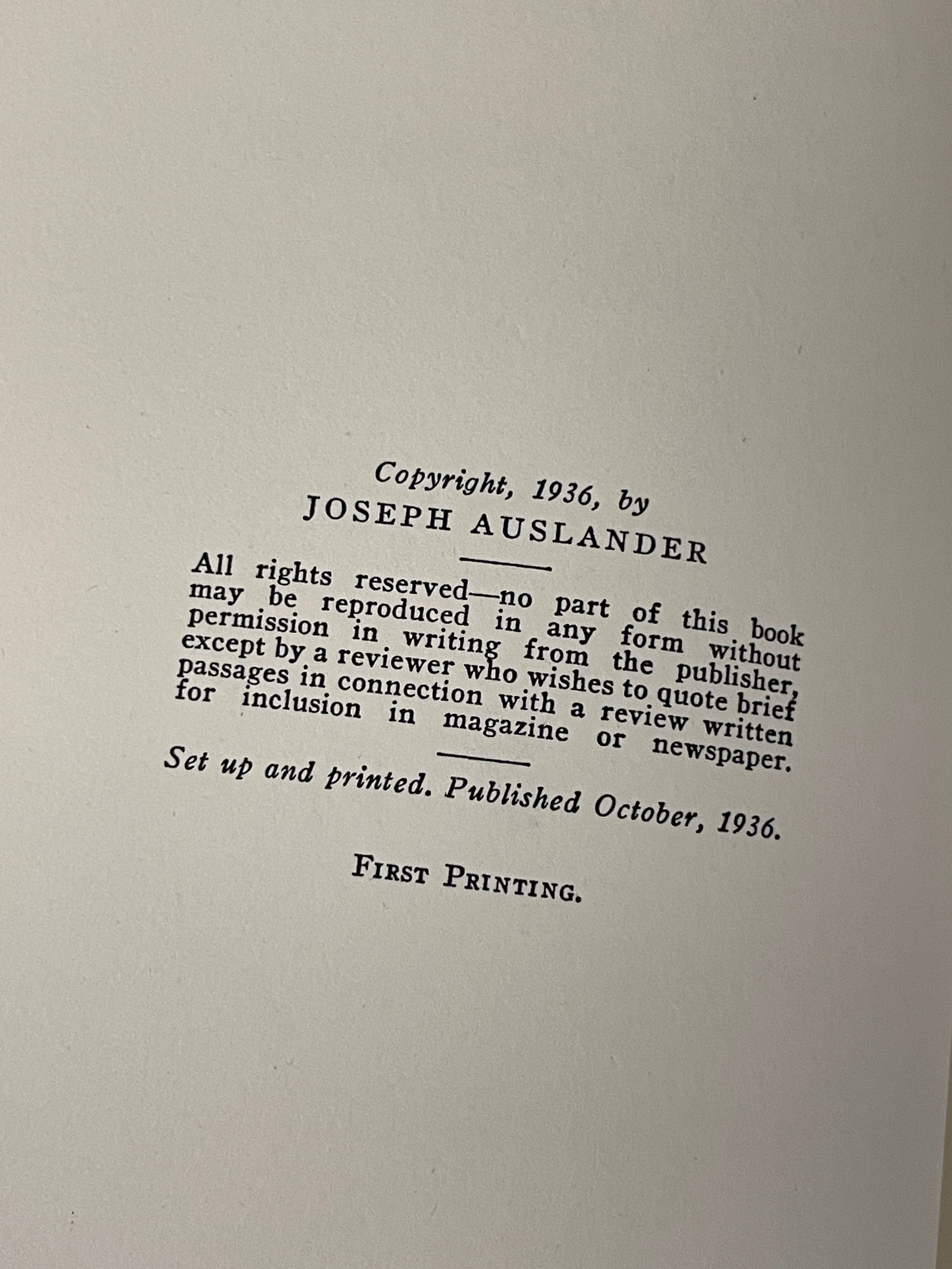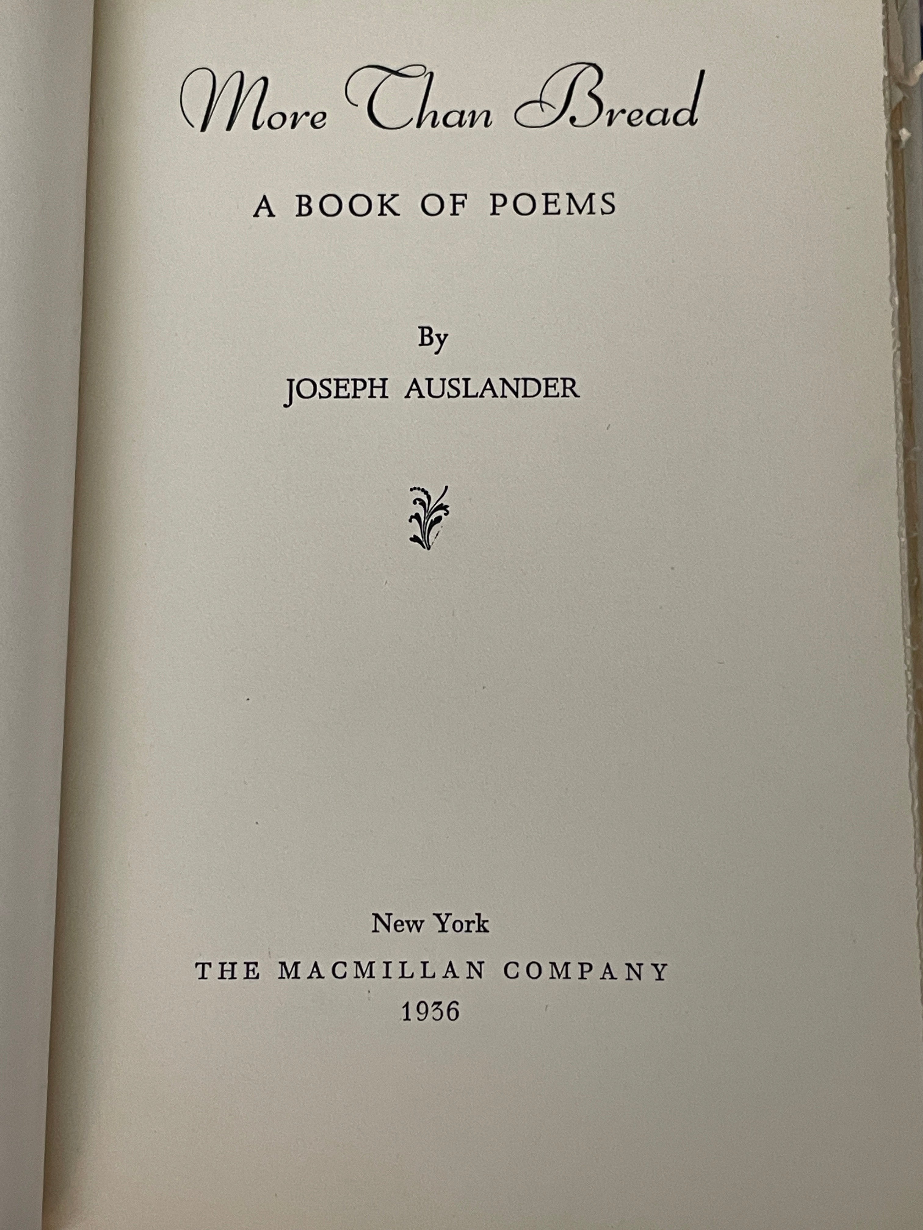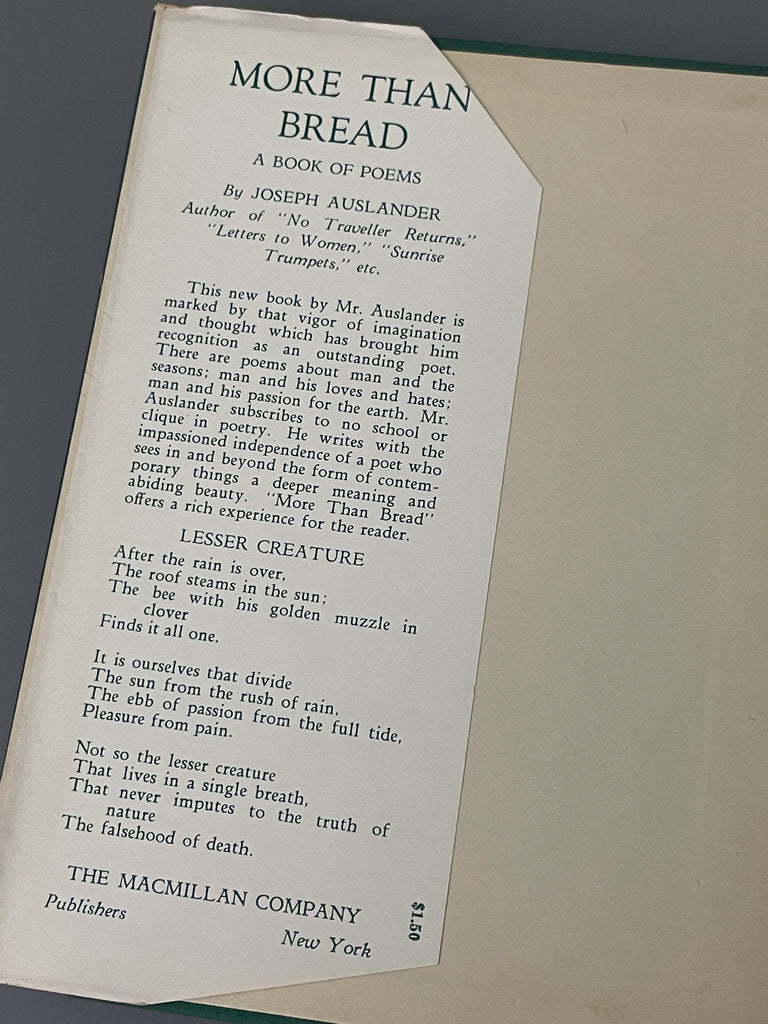 Joseph Auslander MORE THAN BREAD A Book of Poems Macmillan Co. 1936 1stEd is backordered and will ship as soon as it is back in stock.